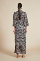 - Three-quarter sleeves and shirt collar add refined coverage and tailored detail