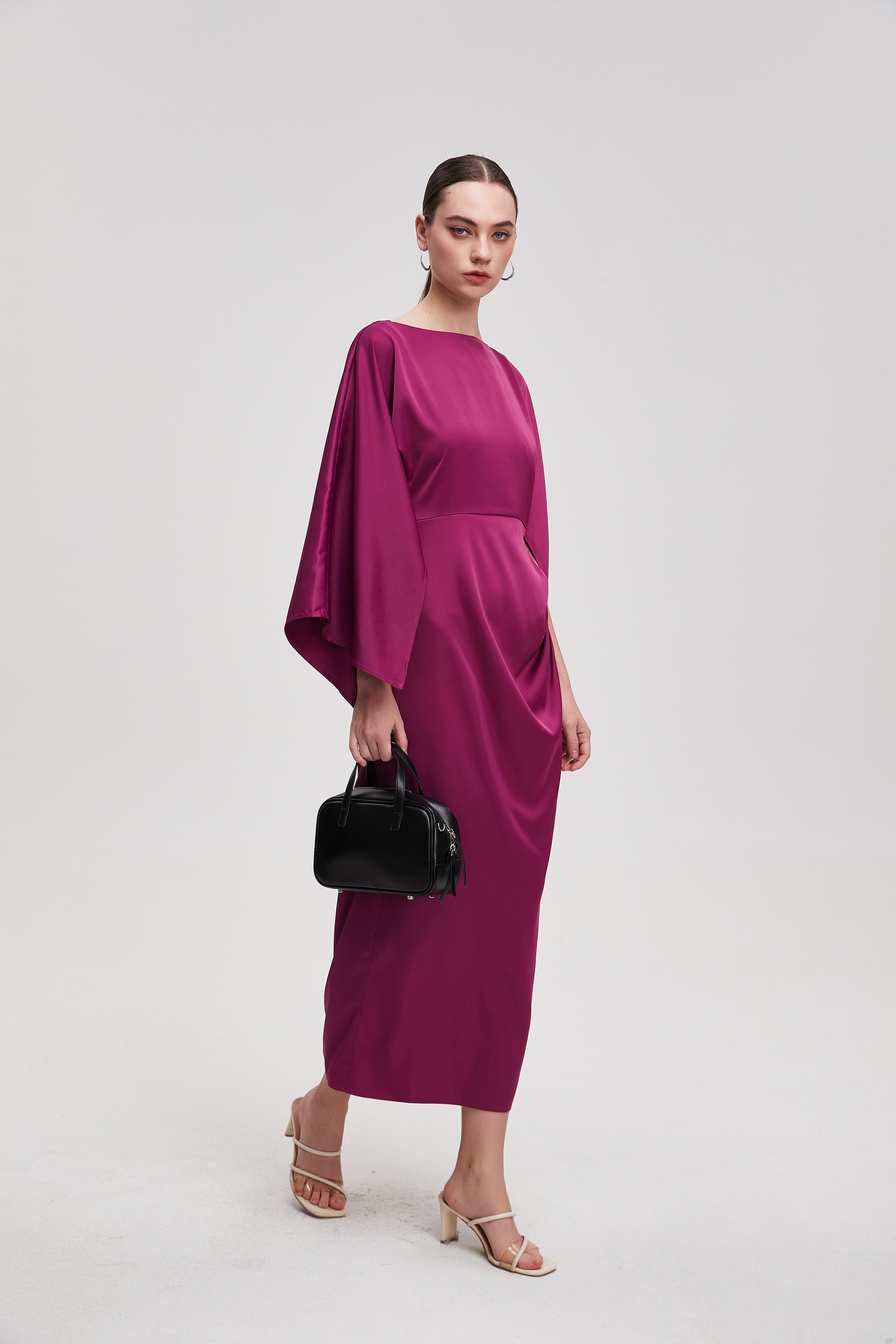 The fabric selected for this piece ensures a smooth touch against the skin while maintaining its shape throughout the day. It offers excellent breathability, preventing overheating during crowded events. The construction resists wrinkling, making it a practical choice for travel or long hours. Its structure supports the design's flow, ensuring the silhouette remains crisp and defined with every wear.