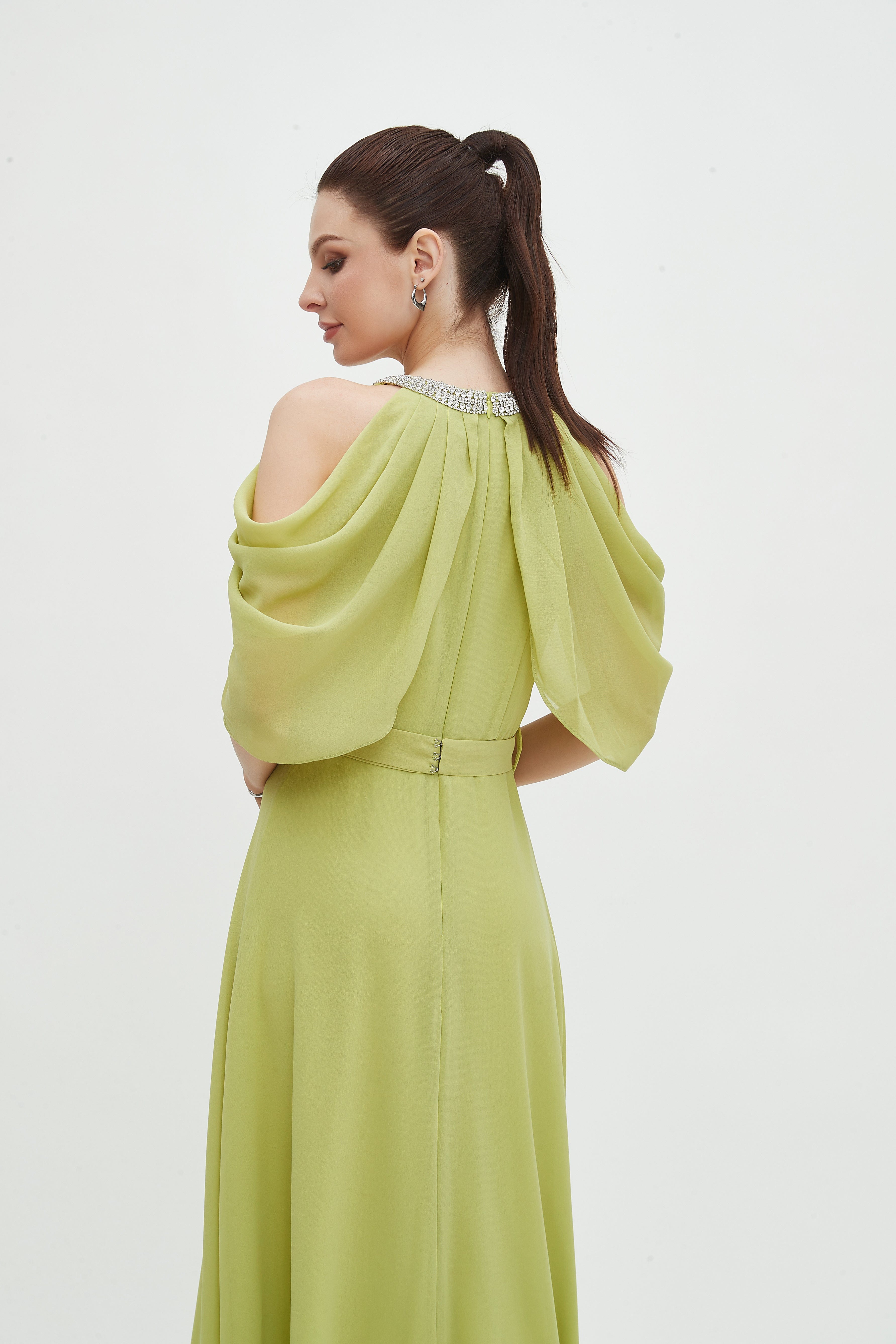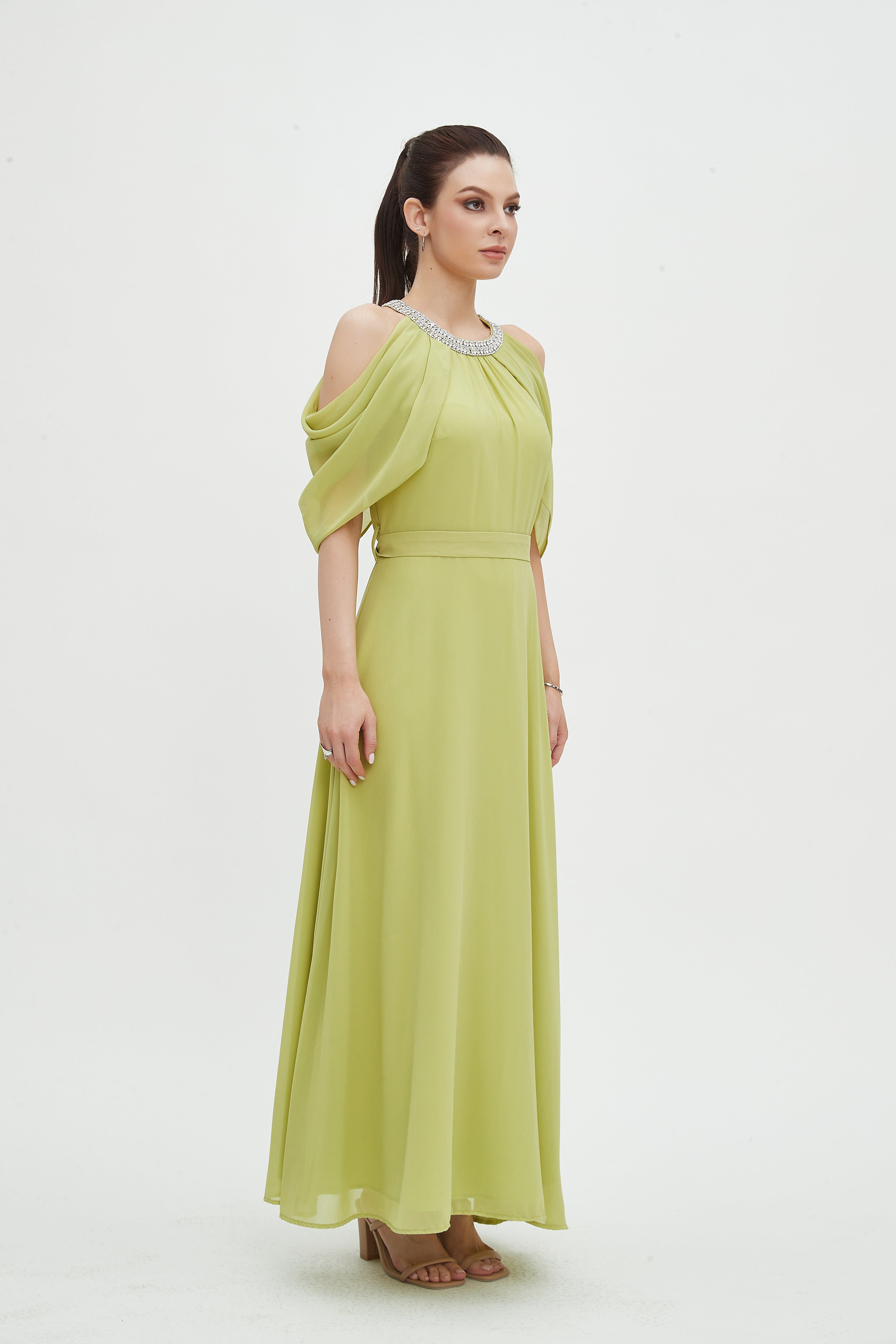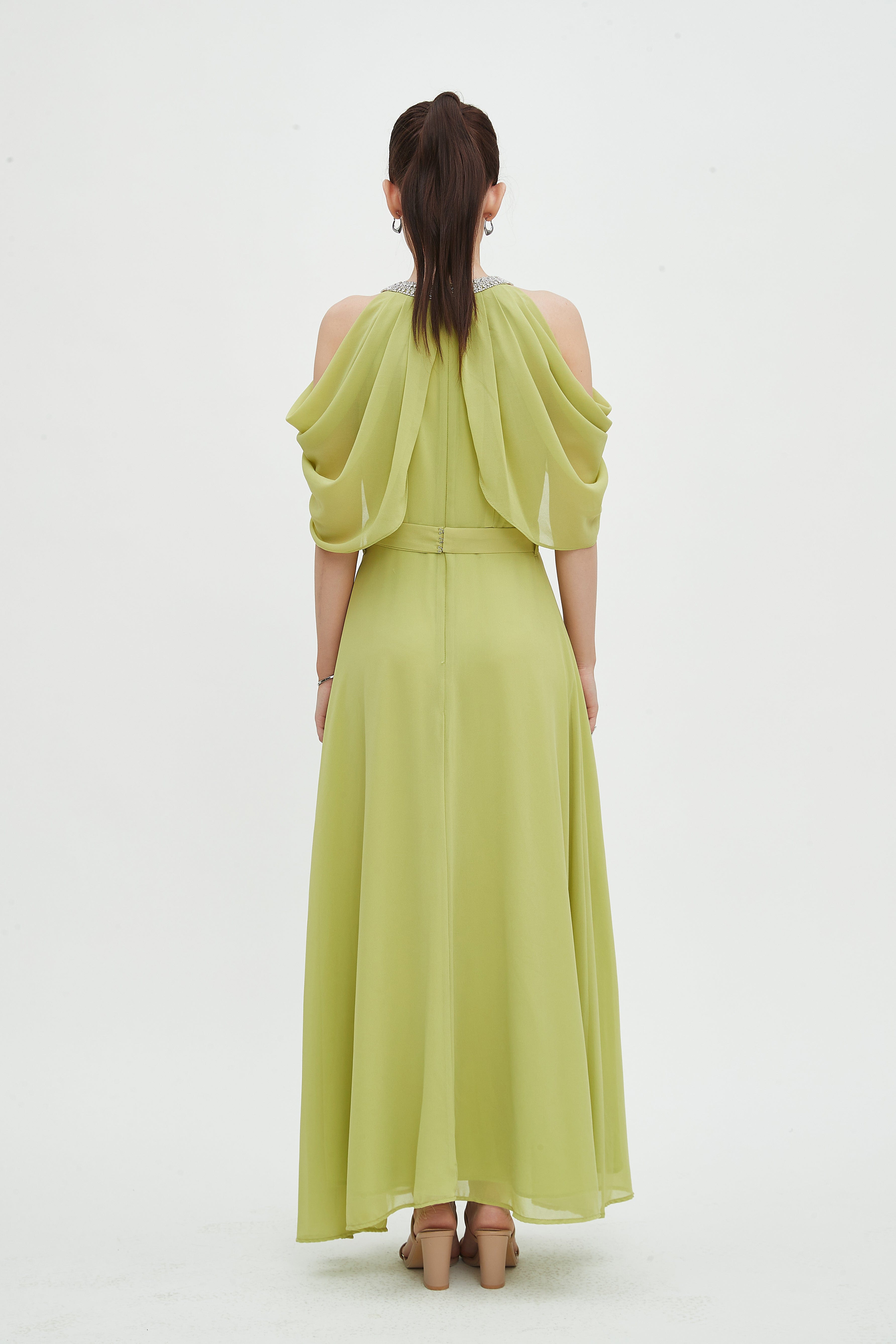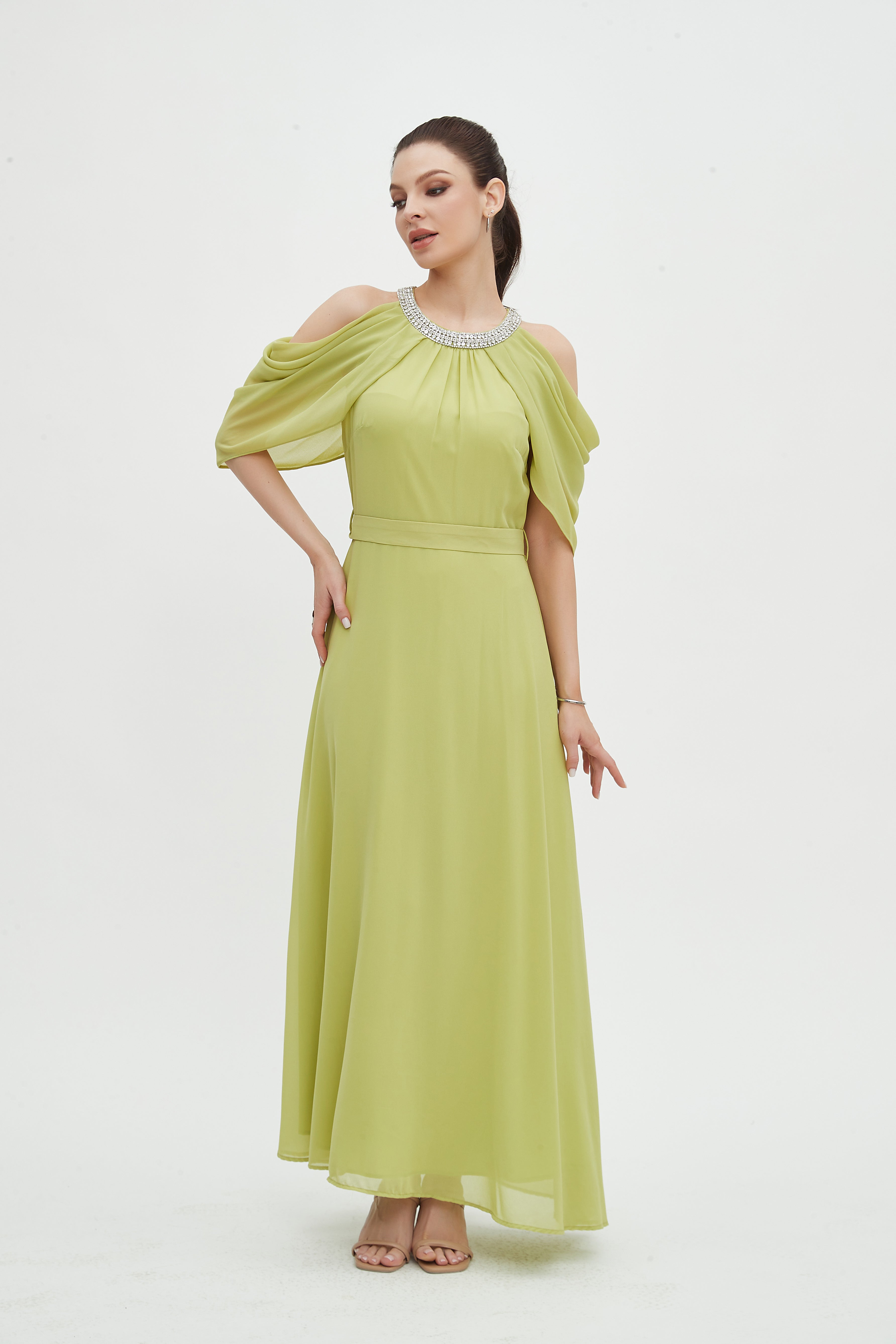 - Elegant maxi length for elongating lines and versatile evening or daytime styling