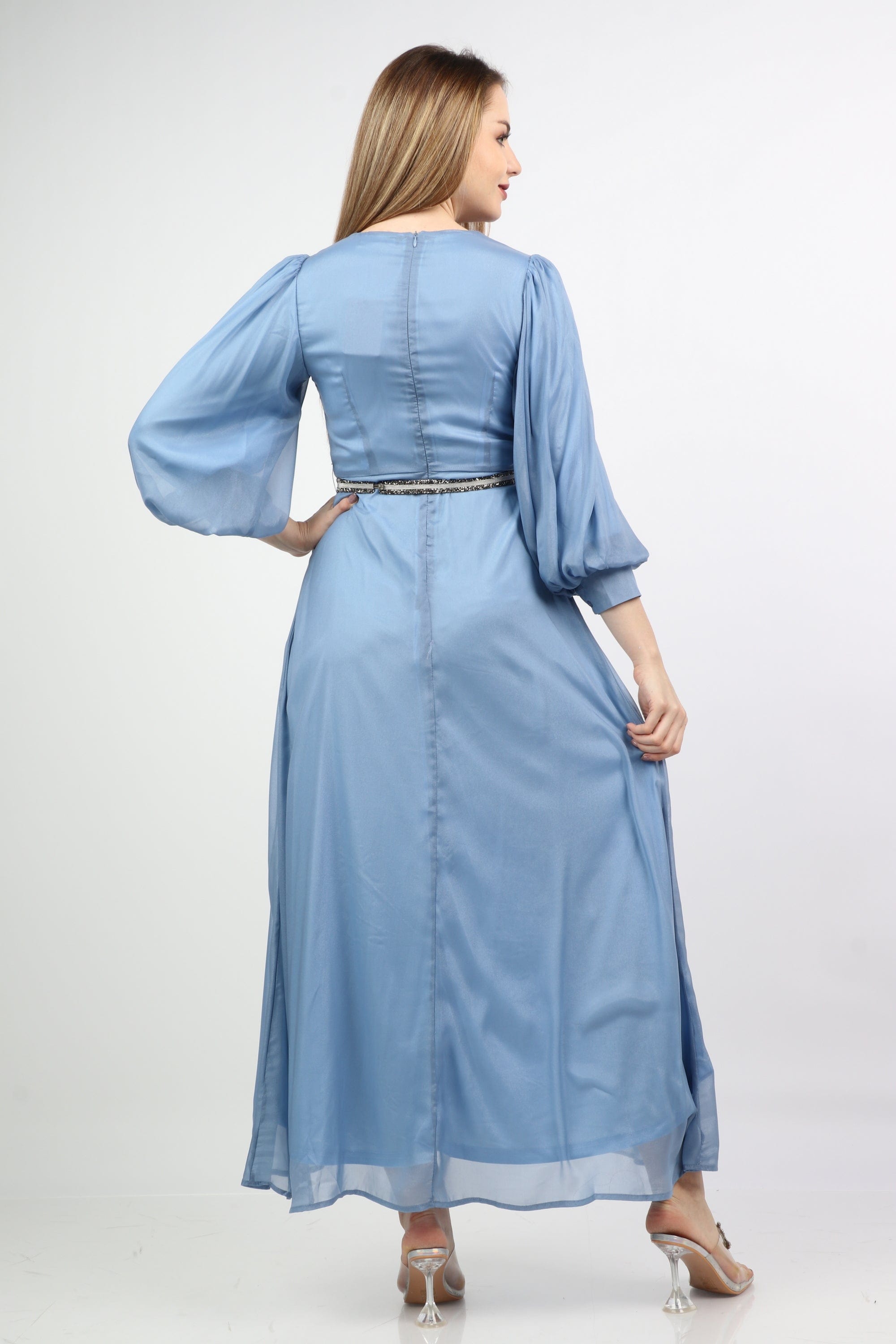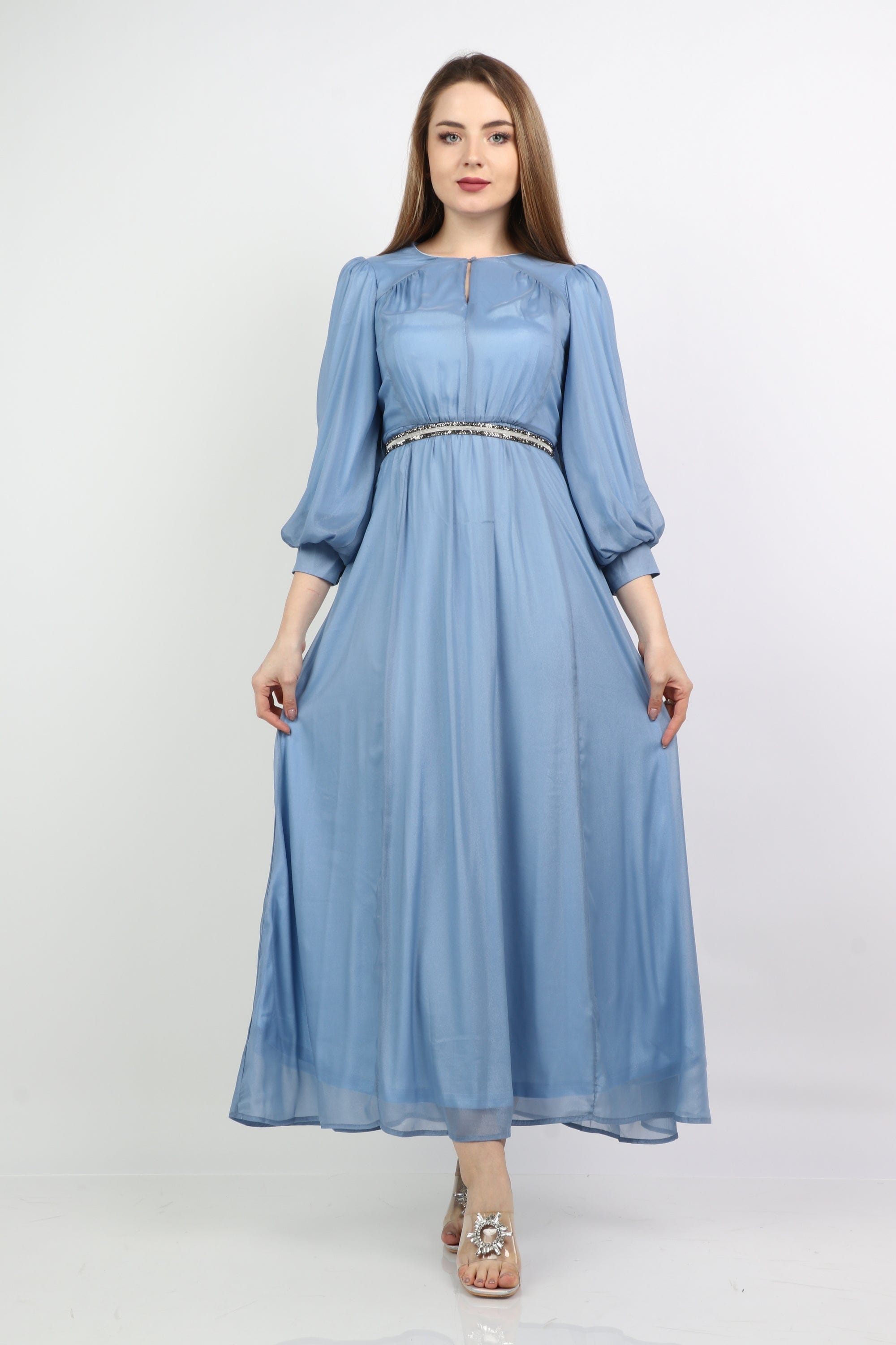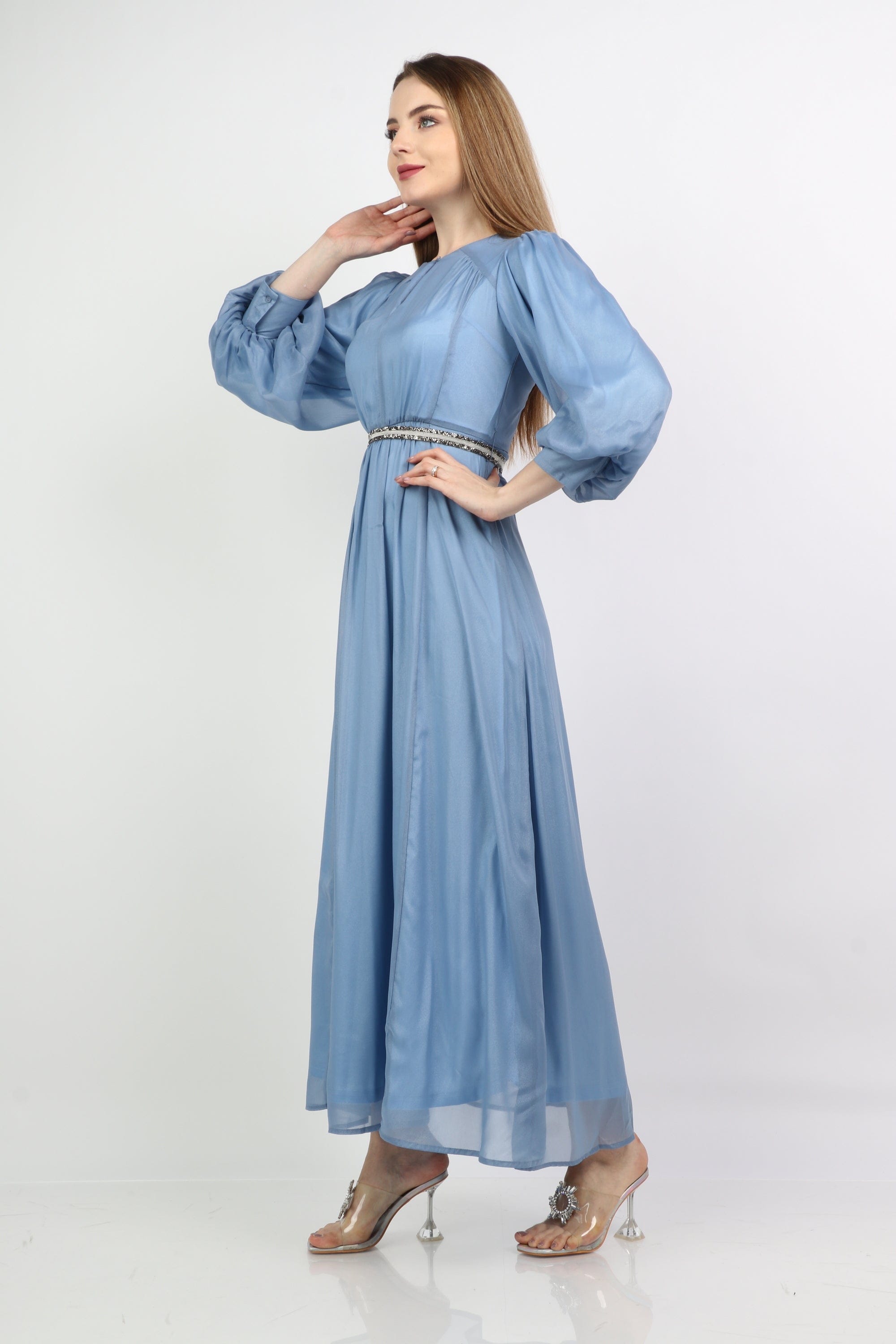 Turn heads in the Blue Solid Maxi Puffed-Sleeve Dress — an effortlessly elegant statement for evening events or refined daytime occasions. Cut in a flattering A-line silhouette, the flowing maxi length creates graceful movement while the belted waist defines the shape for a feminine, regular fit. Crafted from 100% polyester, this solid blue dress is naturally wrinkle-resistant and holds its structure for a polished look; the design is unlined for a lightweight, breathable feel. Long puffed sleeves add romantic volume and coverage, and a discreet zippered closure ensures a smooth profile. Pocketless for a sleeker skirt line, this dress pairs classic tailoring with modern detail — perfect for weddings, gallery openings or dinner dates. Shop the Nichii blue maxi at Fashion SA and add this versatile, easy-care piece to your wardrobe today.
