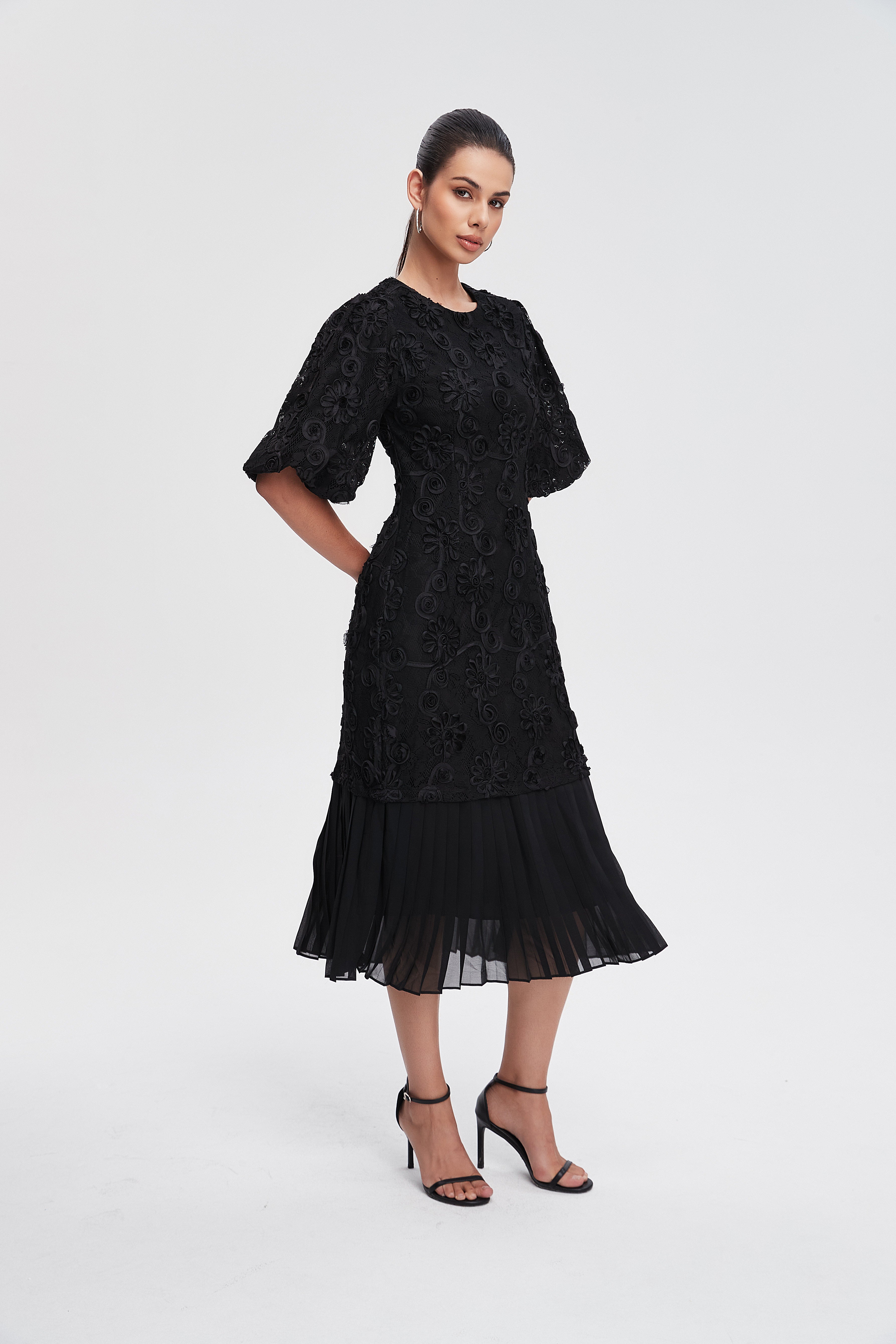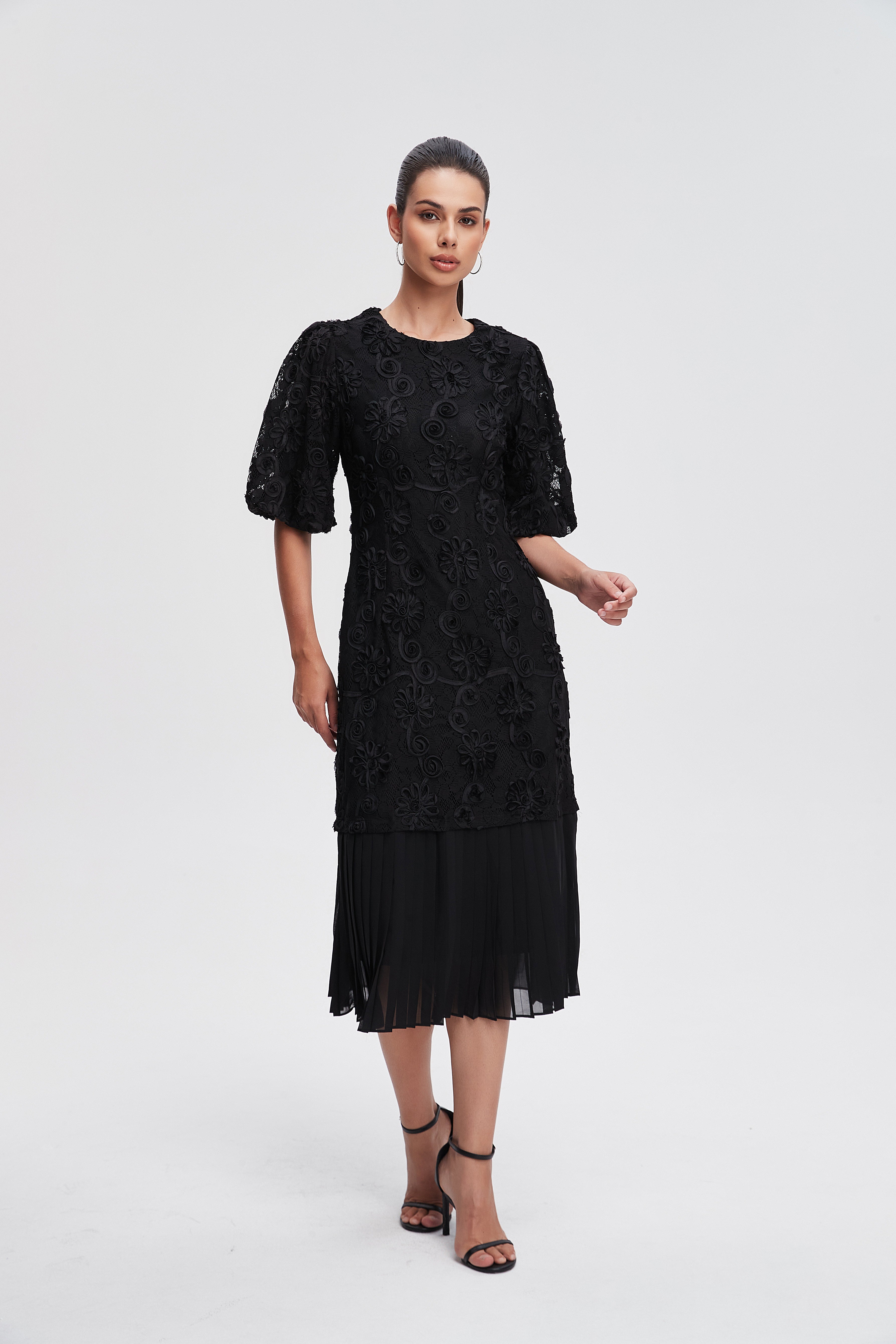 Discover the charm of effortless style with the Pleated Midi Dress with Short Sleeves. This enchanting dress features a flattering midi length and soft pleats that gracefully flow with every step. Crafted from lightweight fabric, it offers comfort and breathability, making it perfect for any occasion, from brunch with friends to an evening out. The short sleeves add a touch of elegance, while the versatile design allows for easy pairing with your favorite accessories. Product Number: lc241623q203