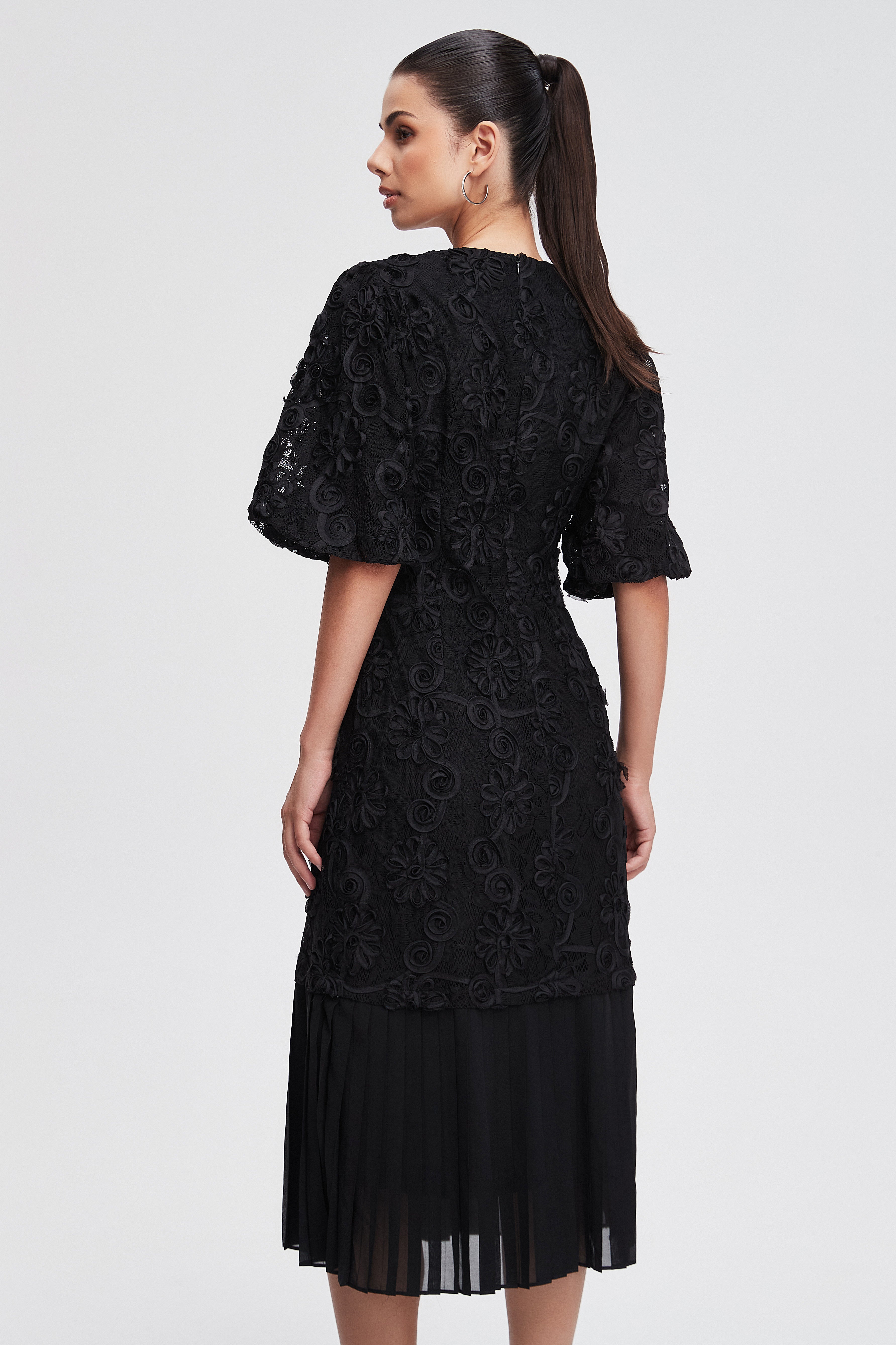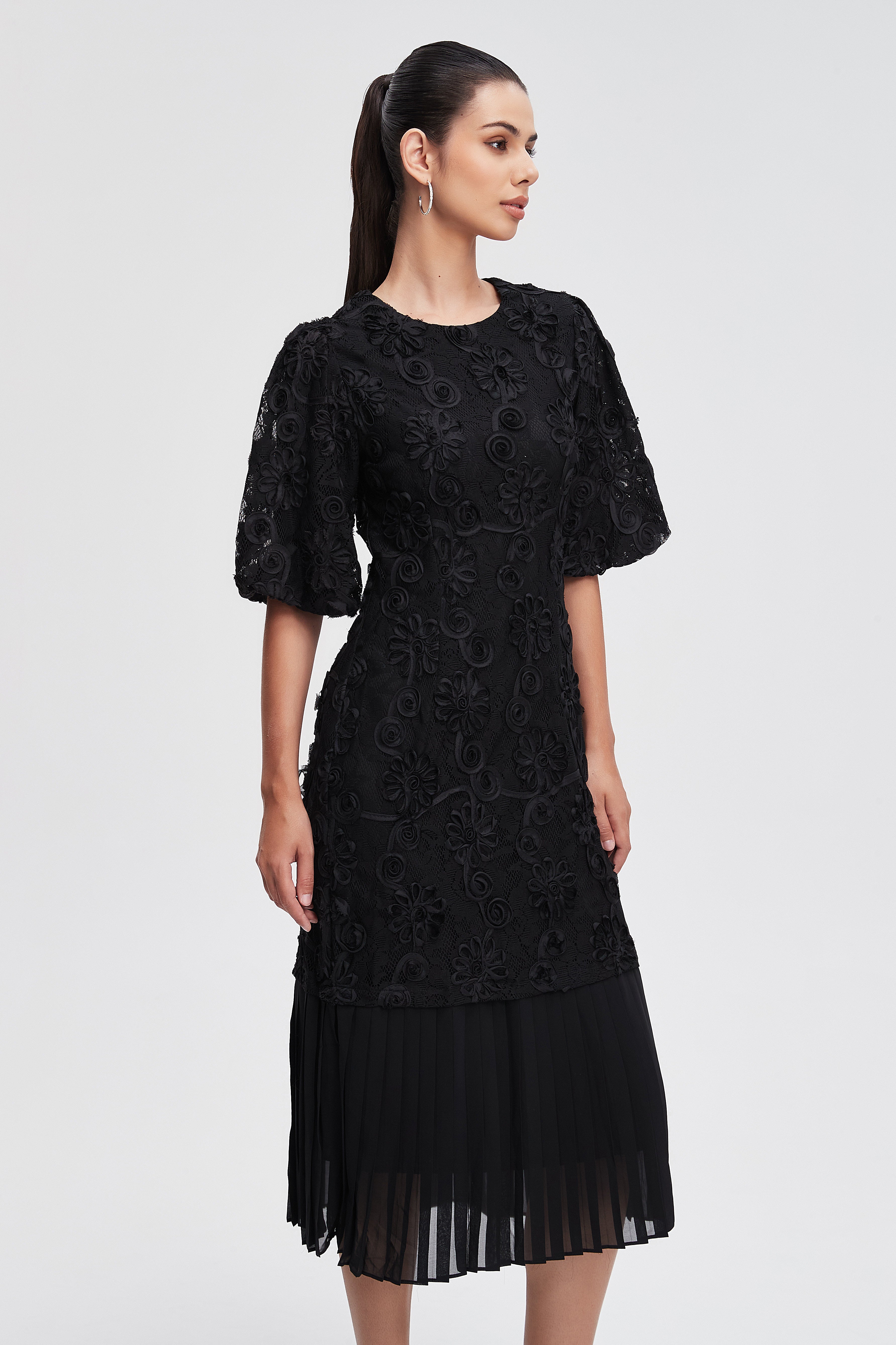 Pleated Midi Dress with Short Sleeves for