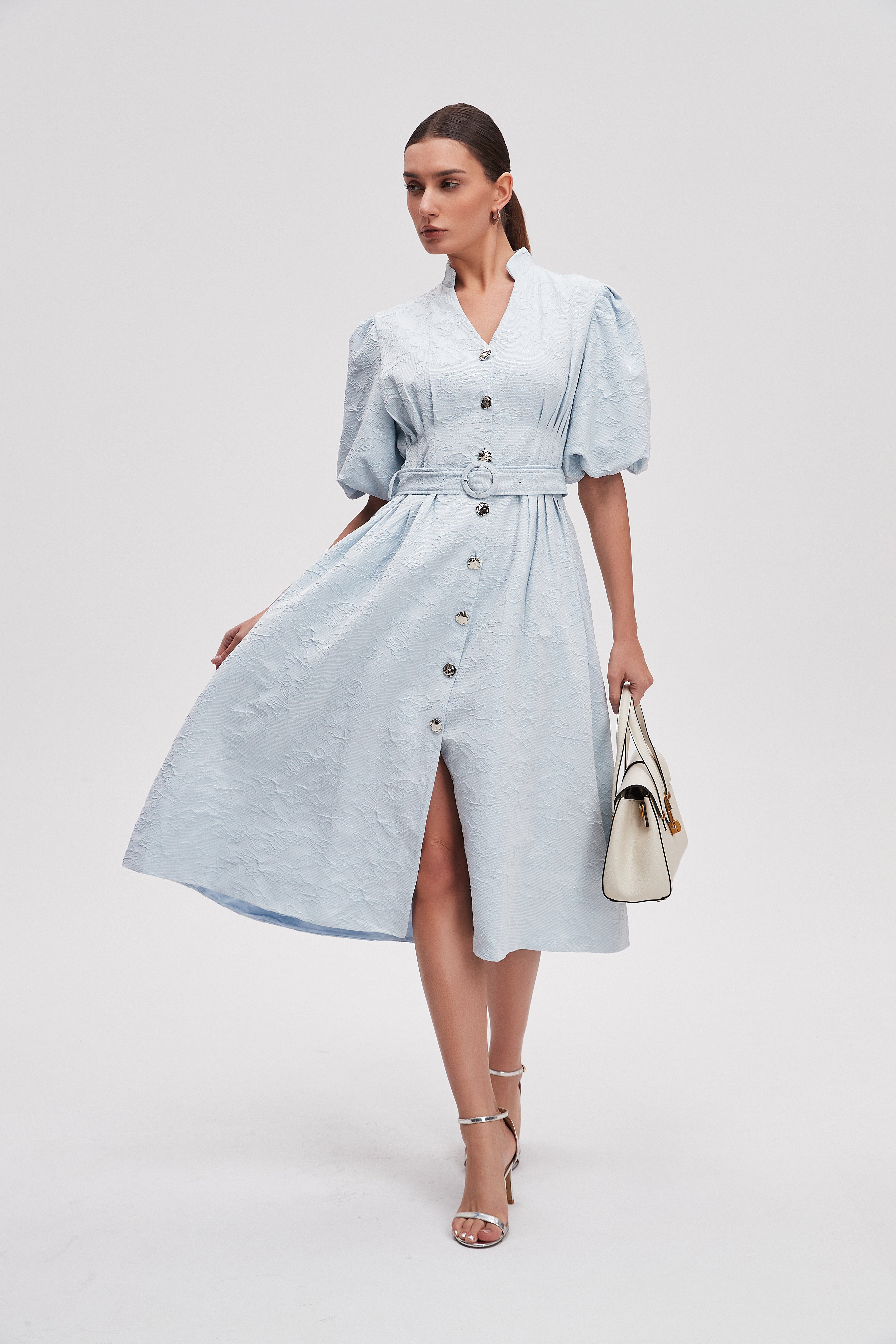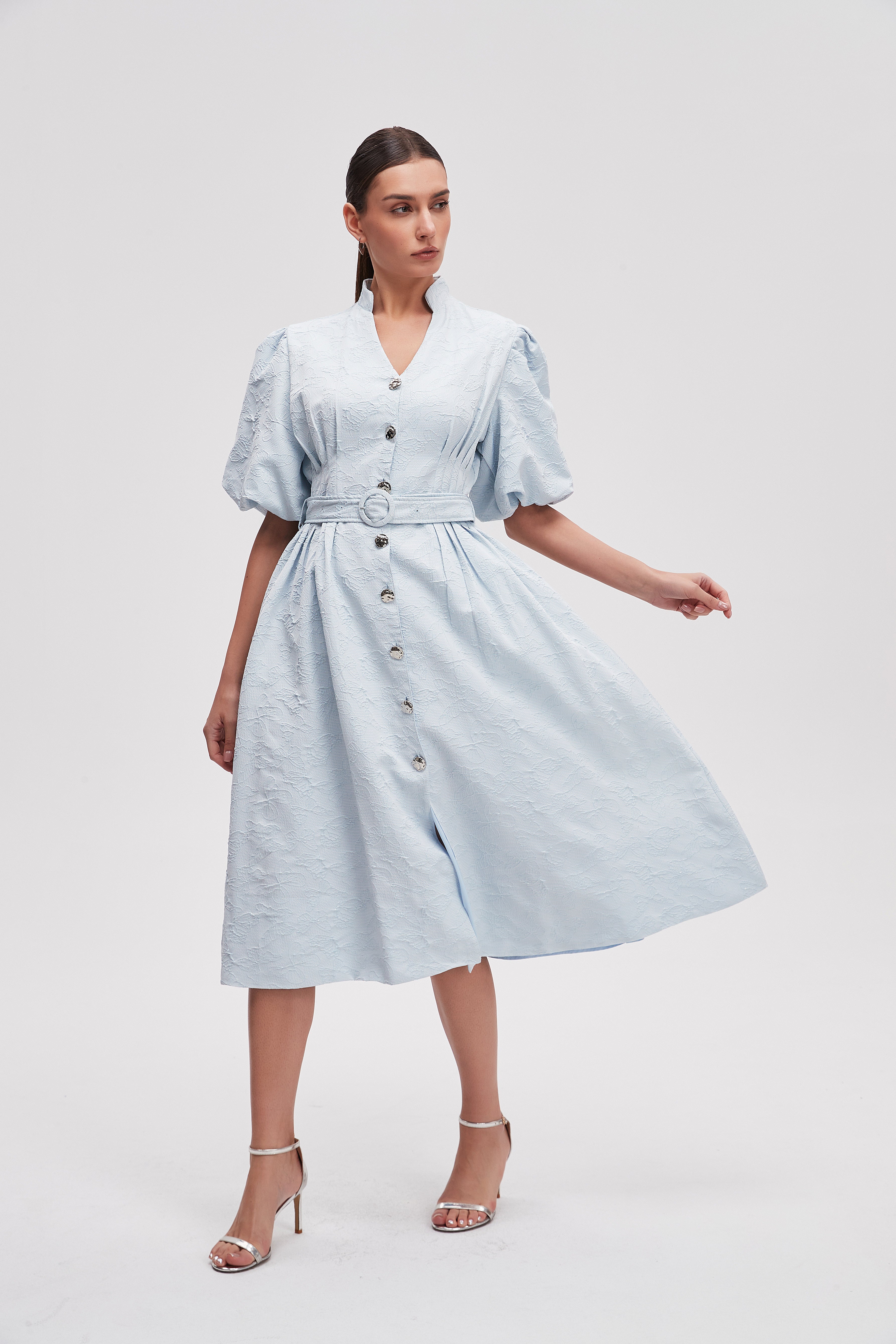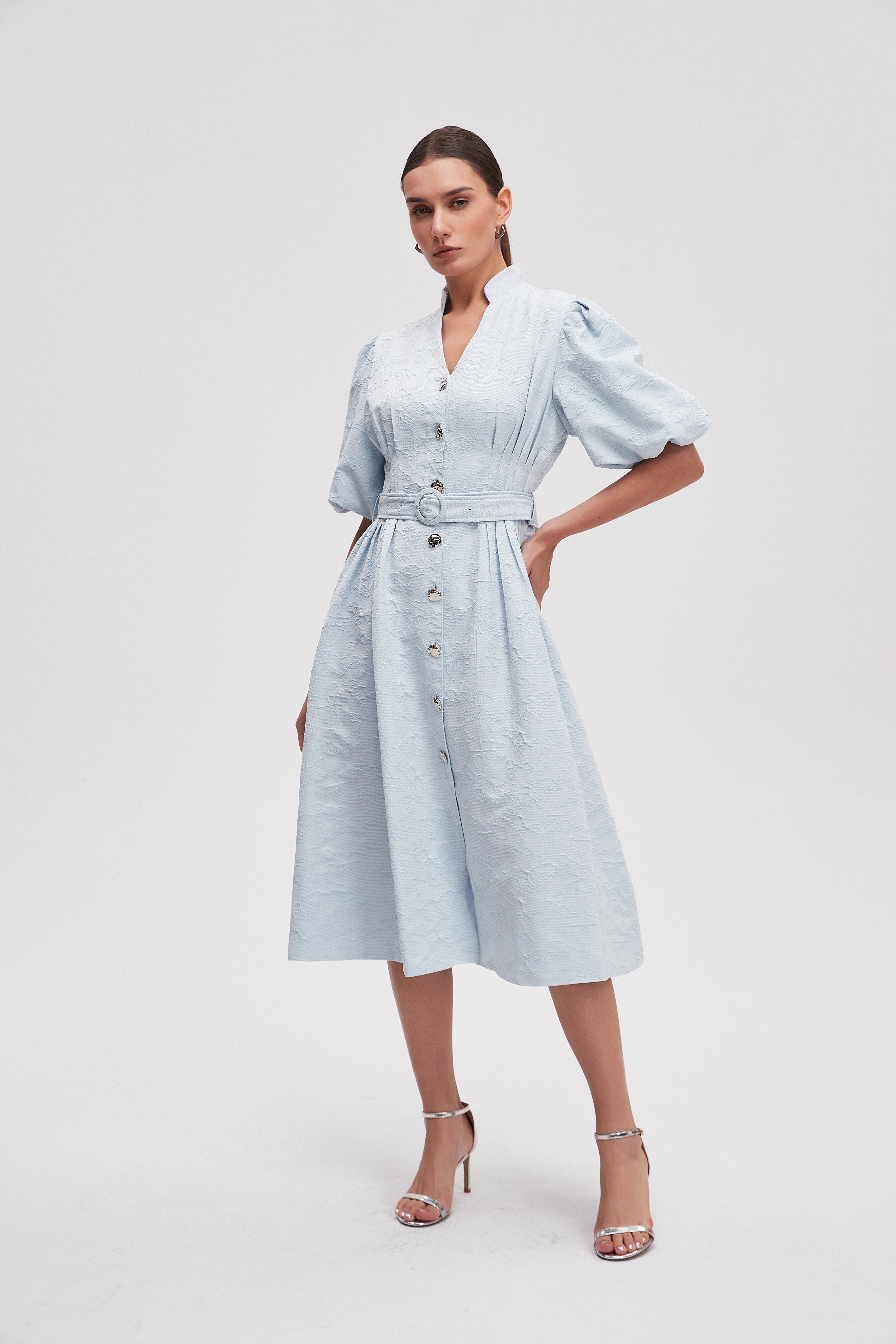 Discover a fashion delight that seamlessly blends comfort and style with the Solid Midi Short Sleeves Dress and Belt. This dress is a vital piece in your wardrobe tapestry, featuring a vibrant color that enhances your natural beauty. The short sleeves make it perfect for warm days, while the midi length offers an intricate balance between casual and chic. Moreover, the included belt allows you to define your silhouette effortlessly. Product Number: lv0493s261mx