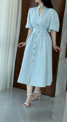 Solid Midi Short Sleeves Dress and Belt