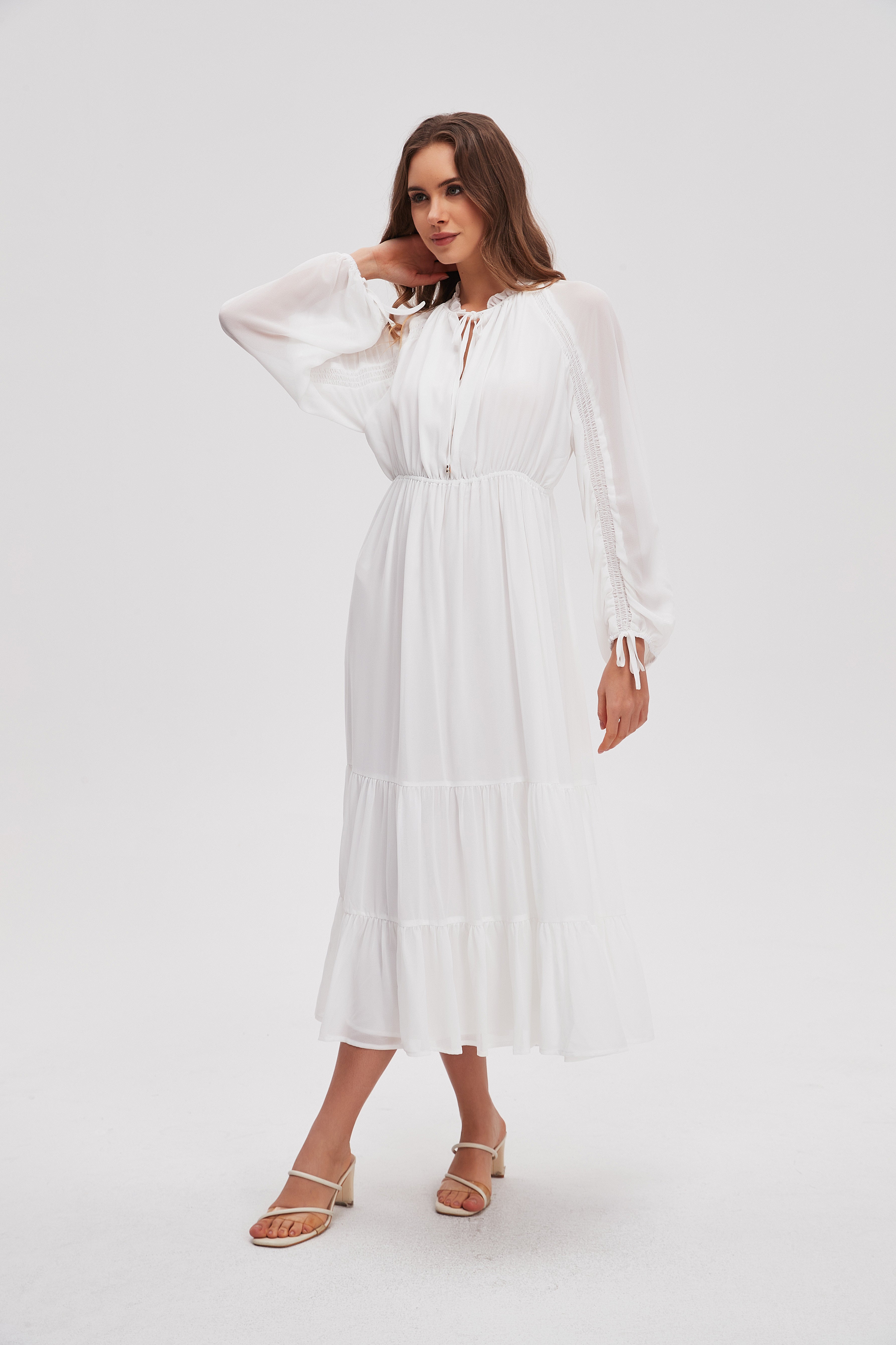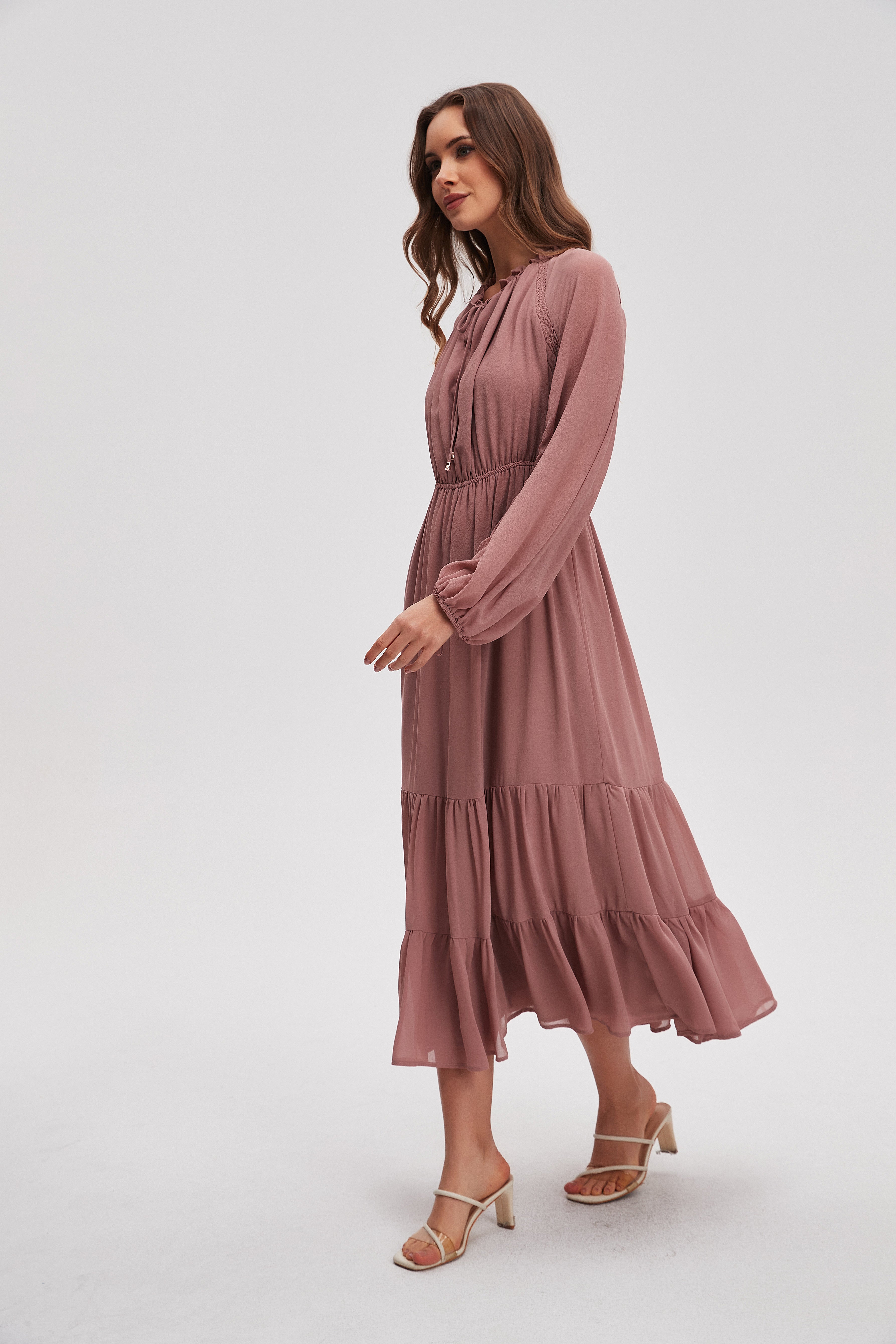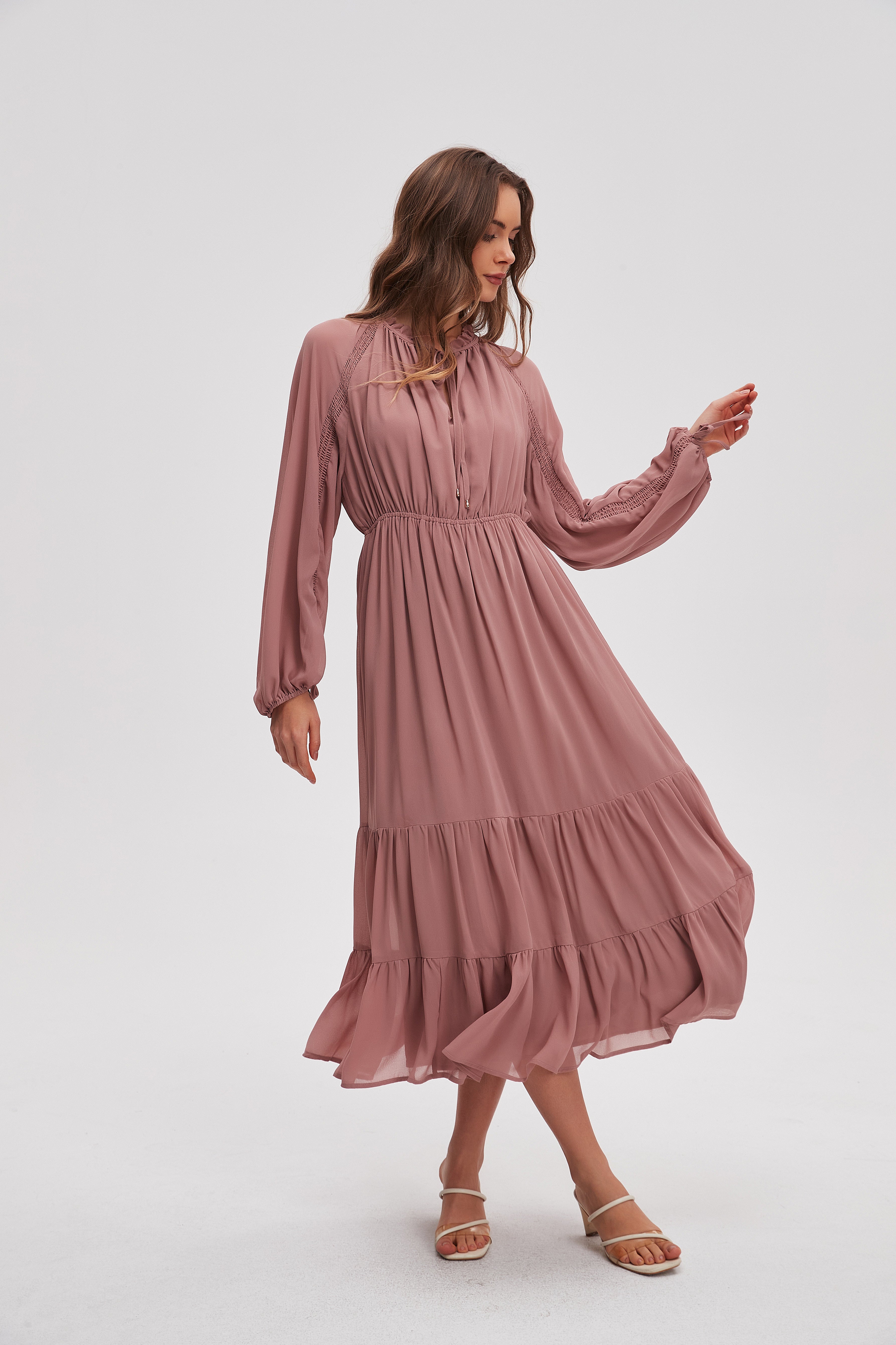 Solid Midi Dress with Long Sleeves