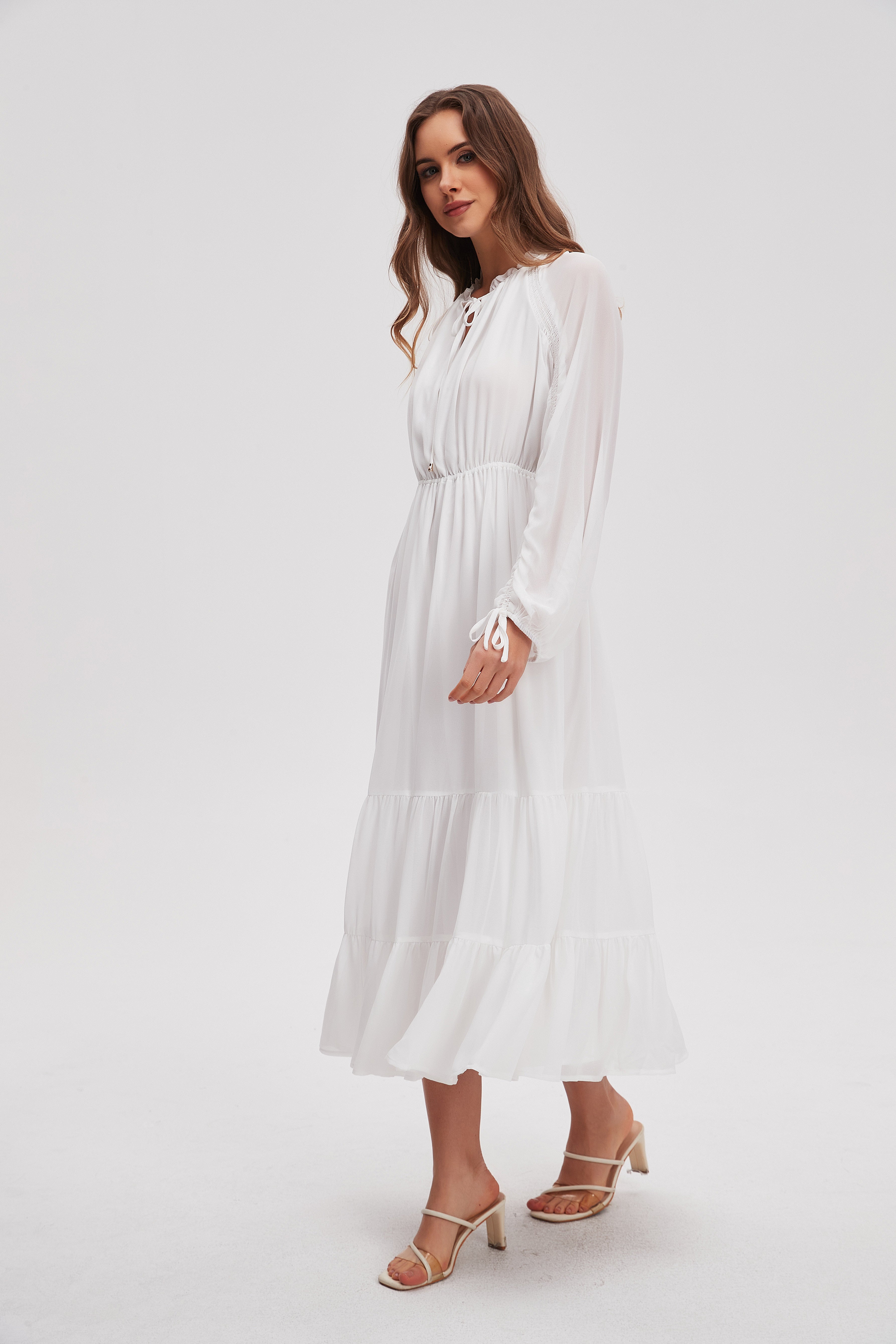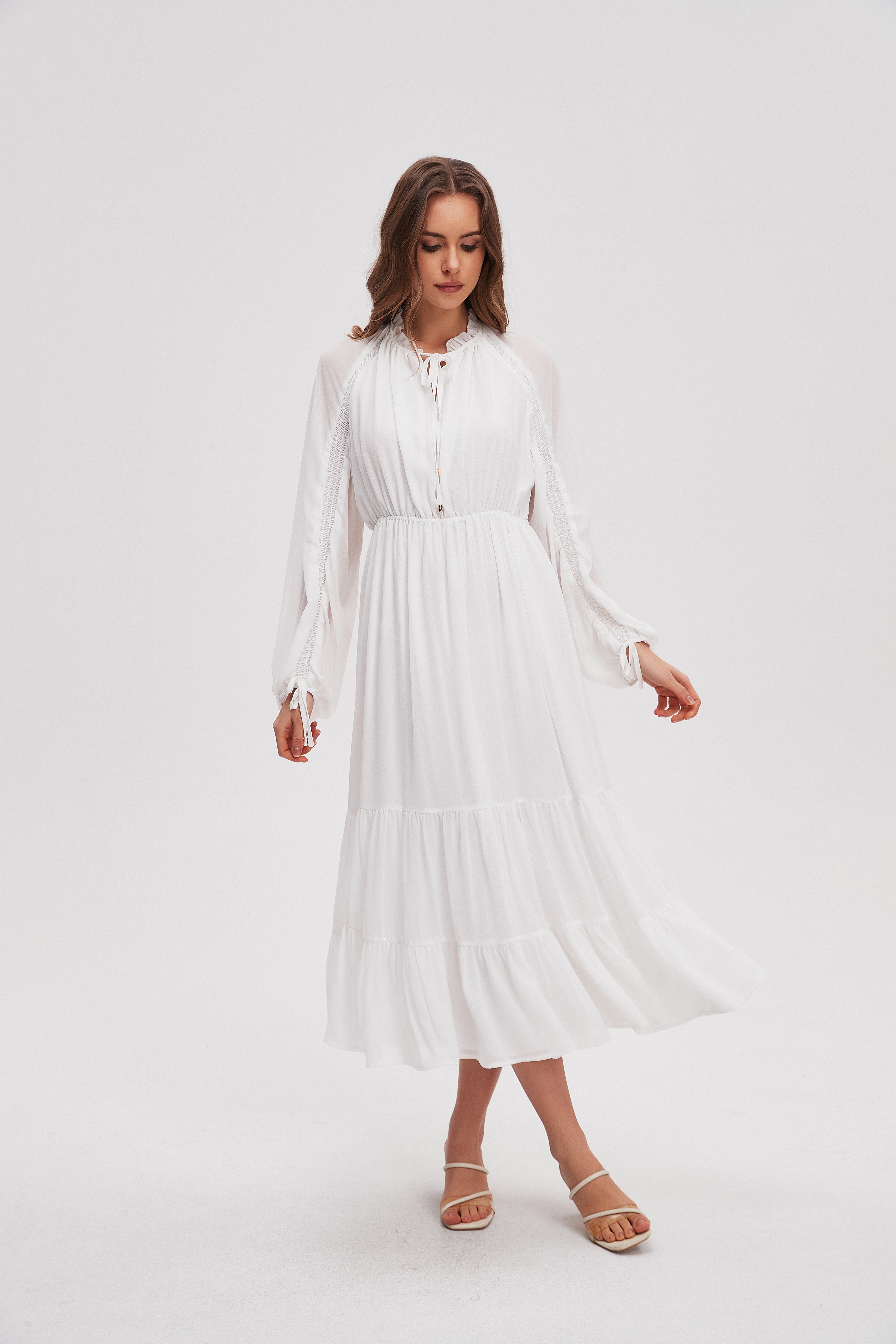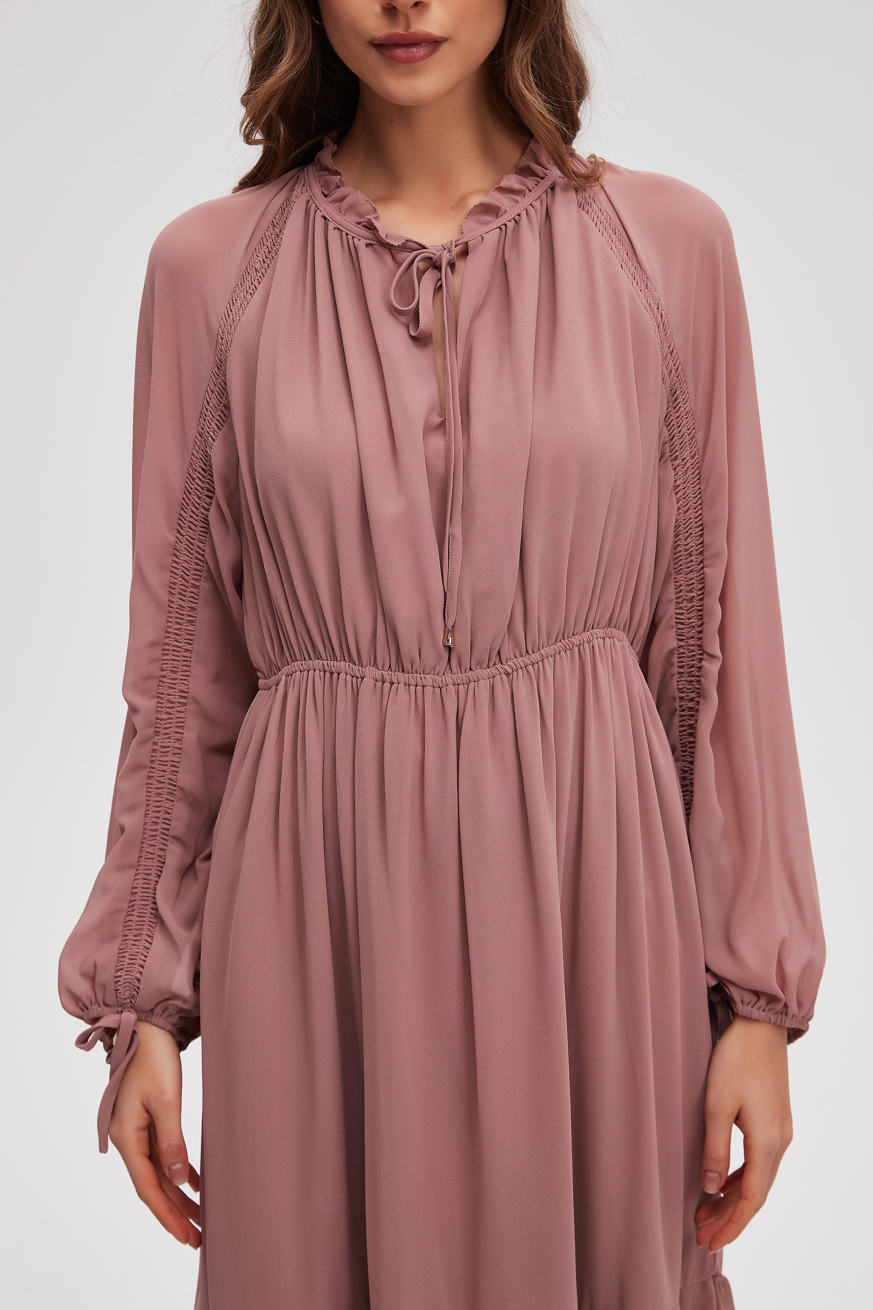 Solid Midi Dress with Long Sleeves
