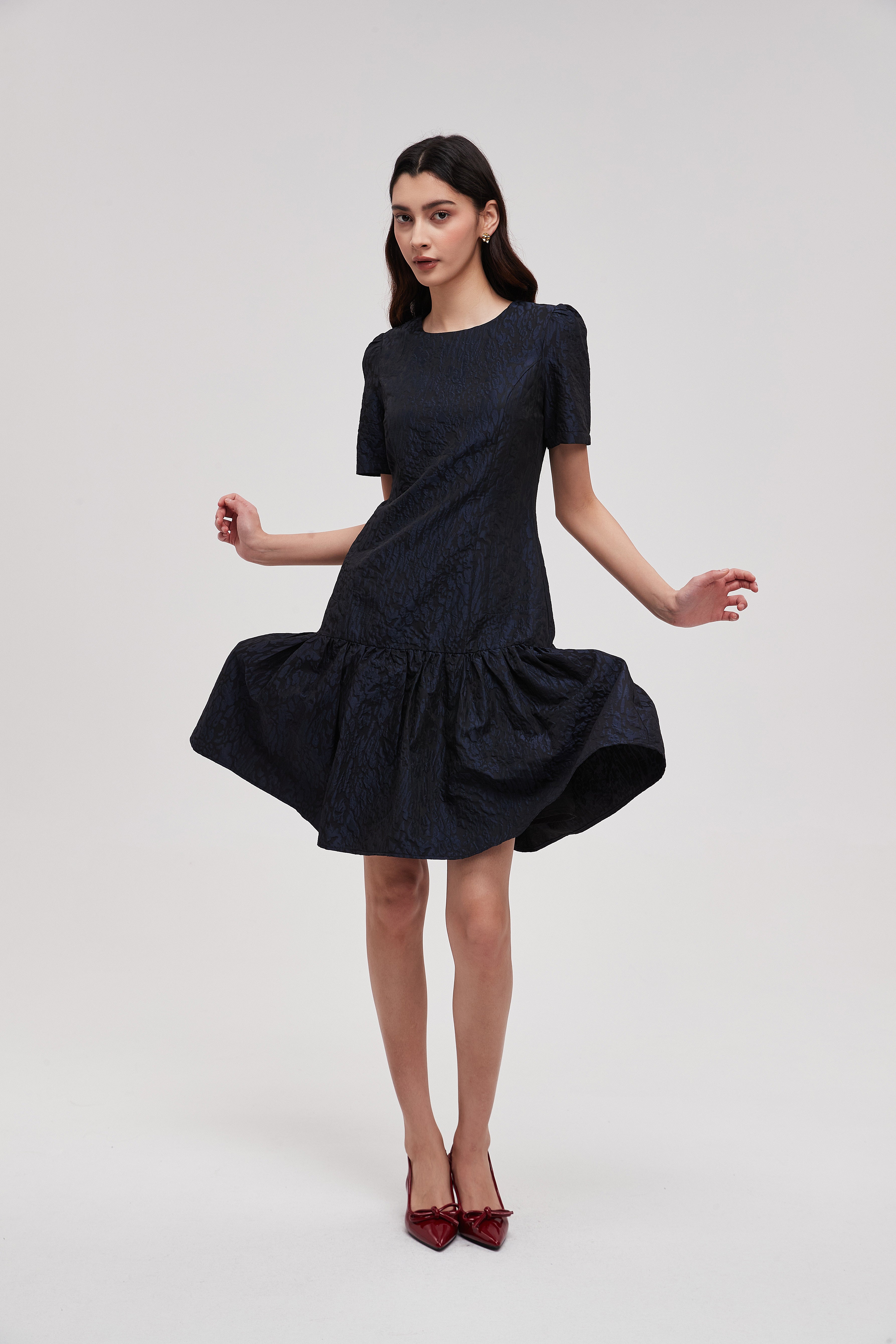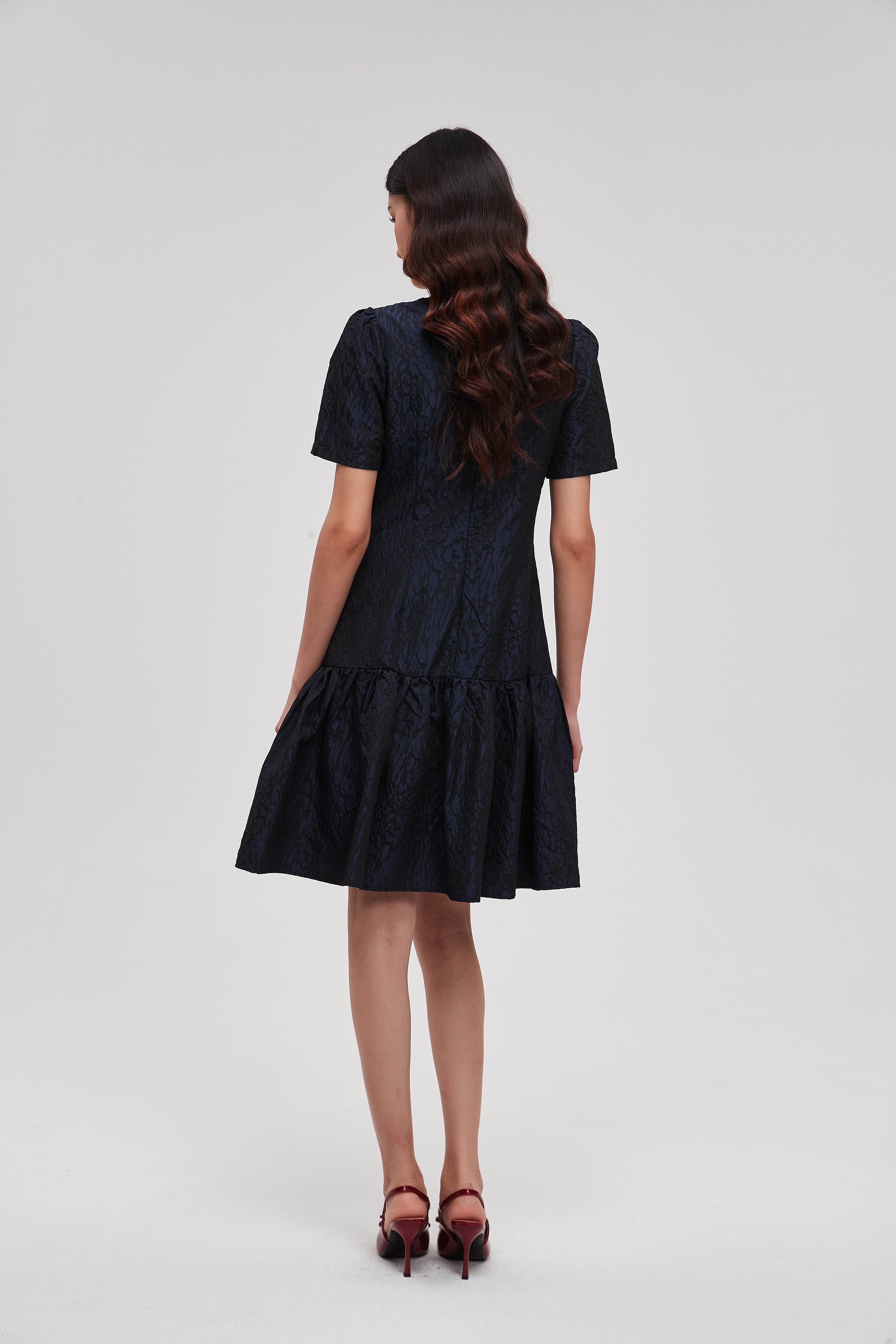 Knee-Length Flared Dress with Short Sleeves