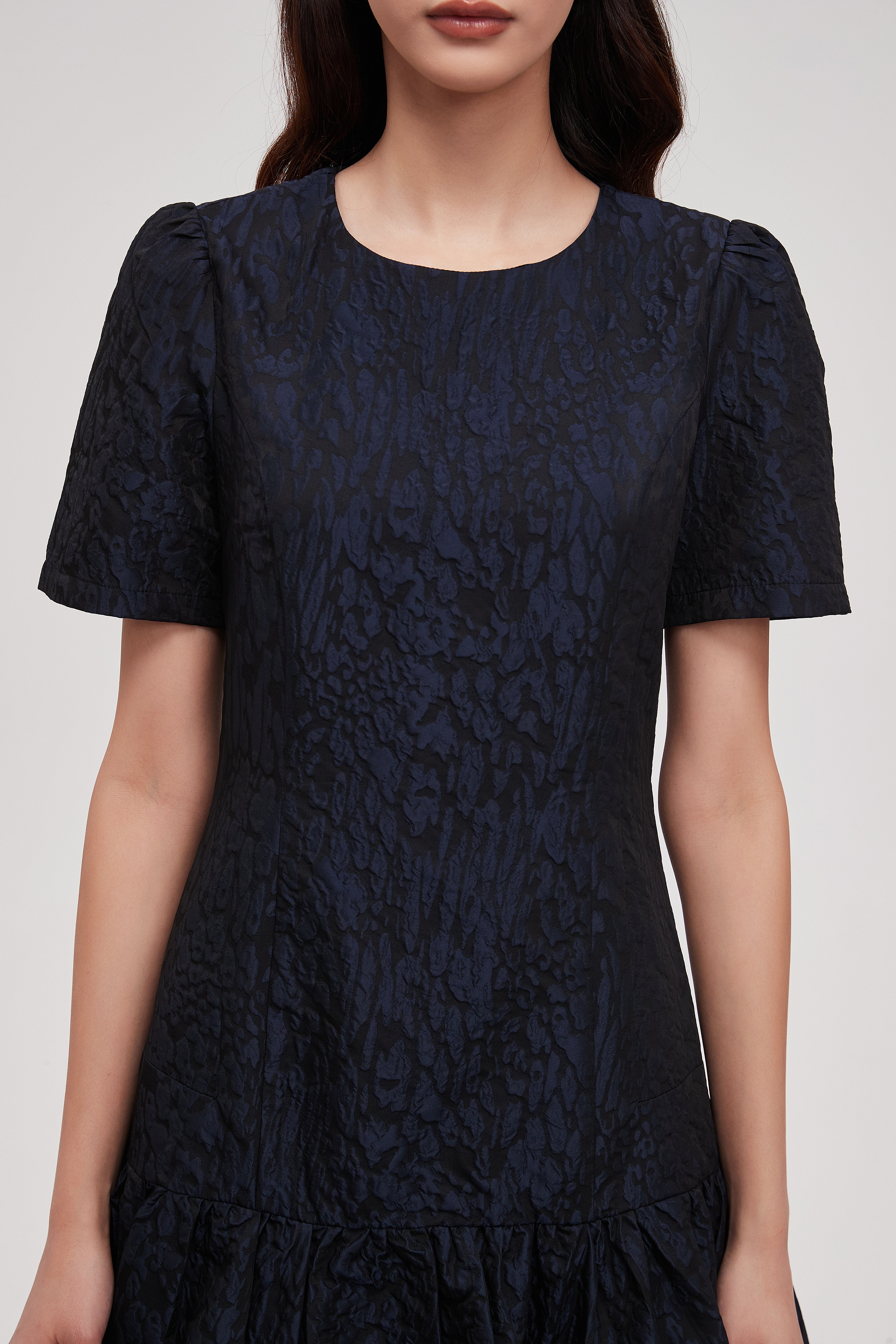 This garment is crafted from a durable blend of polyester and nylon, offering resilience and excellent wrinkle resistance. The addition of nylon provides a smooth texture and enhanced strength, ensuring the fabric retains its structure over time. A full polyester lining adds an extra layer of comfort, preventing transparency and allowing the outer layer to drape beautifully without clinging to the body.
