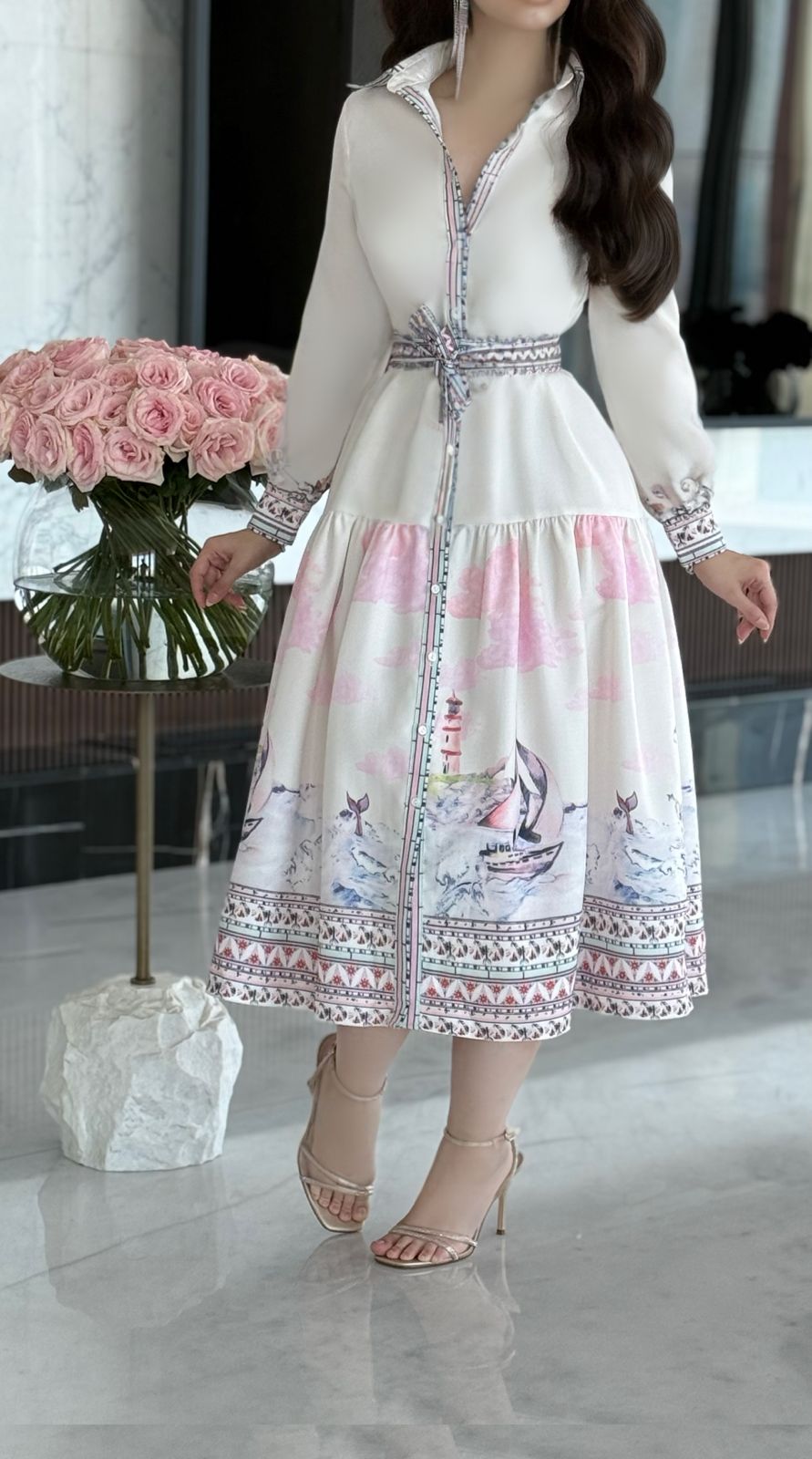Immerse yourself in a vibrant tapestry of style with our Printed Long Sleeve Midi Dress with Belt. This beautiful piece is designed to encompass your unique personality while ensuring comfort and elegance. The intricate patterns evoke a stunning landscape, making it perfect for various occasions. With long sleeves and a flattering belt, this dress excels in accentuating your figure while providing a pivotal layer of sophistication. Product Number: mc26q1mlc0420