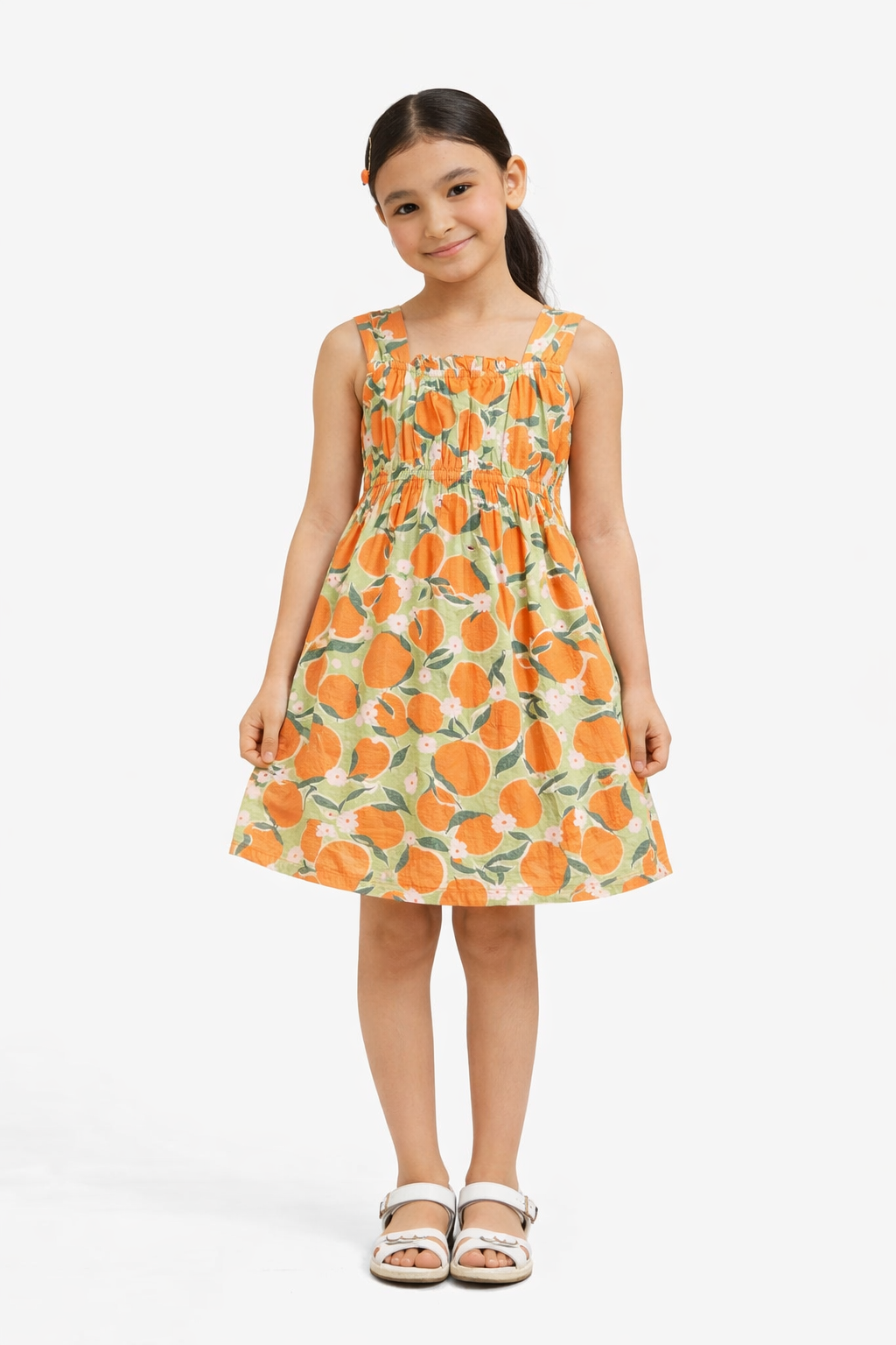 Brighten up sunny days with the delightful Girls' Fruit Pattern Dress with Straps from Gingersnaps. This charming dress features a playful fruit design that adds a splash of fun to any occasion, making it perfect for parties, picnics, or casual outings. The adjustable straps provide a comfortable fit, allowing for easy movement and all-day wear. Made from soft, breathable fabric, this dress ensures that your little one stays cool and stylish. Let her express her personality with this cheerful piece. Don’t miss out—order now through Fashion Saudi and let the fun begin! Product Number: gdr2225