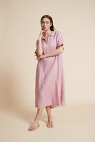 This white plain midi shirt-collar dress is an effortless wardrobe staple that fuses cool comfort with refined minimalism — perfect for everyday ease. Cut in a straight silhouette from breathable 100% linen, the midi length skims the calf for elegant movement while the short sleeves and unlined construction keep it light and airy. The regular-fit straight cut flatters without clinging, offering easy layering under blazers or over a swimsuit for weekend errands or relaxed brunch dates. Pocketless, beltless styling preserves the clean lines and the shirt collar adds a subtle tailored touch for polish. Versatile by nature, wear it with sneakers for casual days or espadrille wedges for a relaxed summer evening. Discover the White Plain Midi Short-Sleeve Dress at Fashion SA — shop now to add a timeless, breathable piece to your rotation.