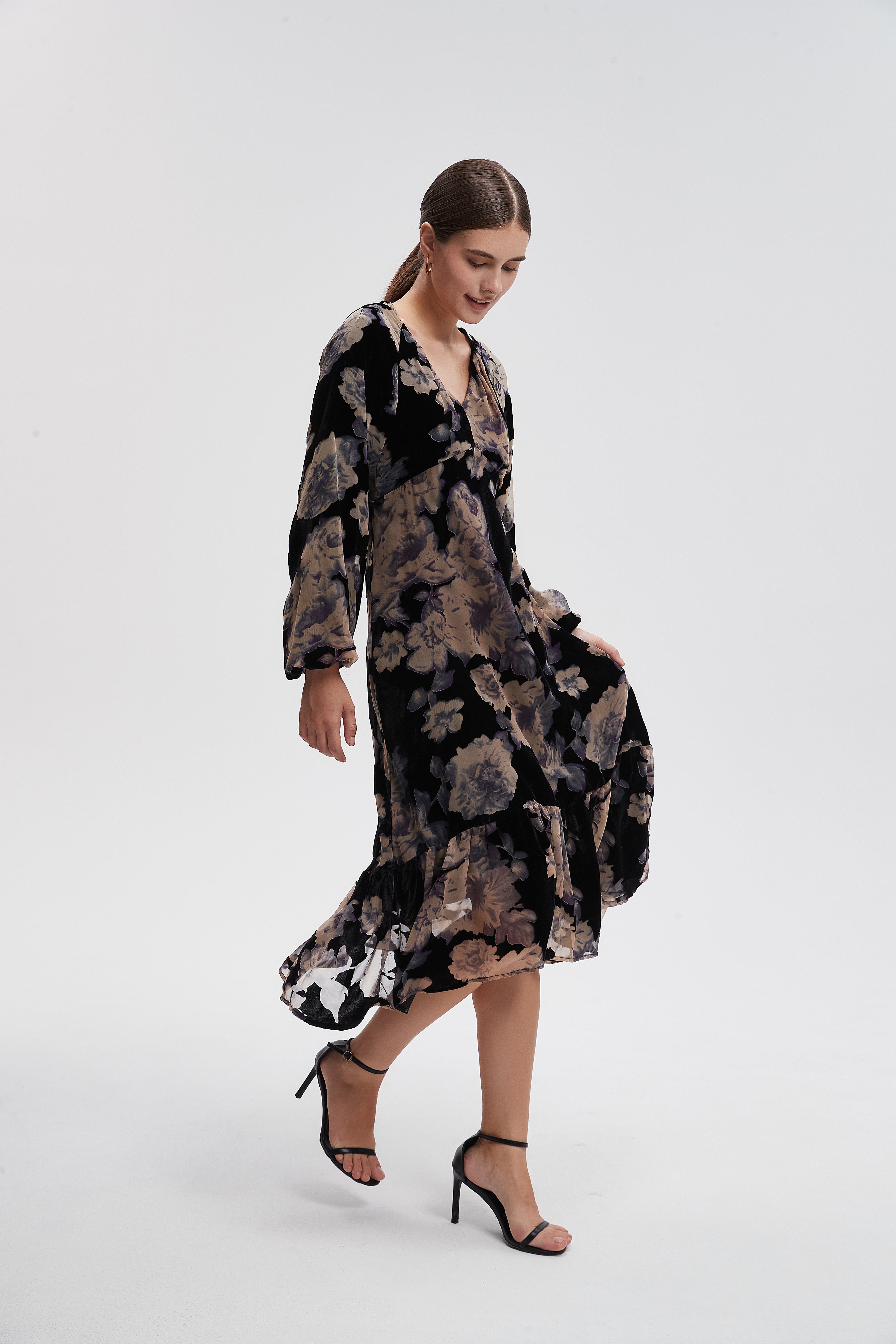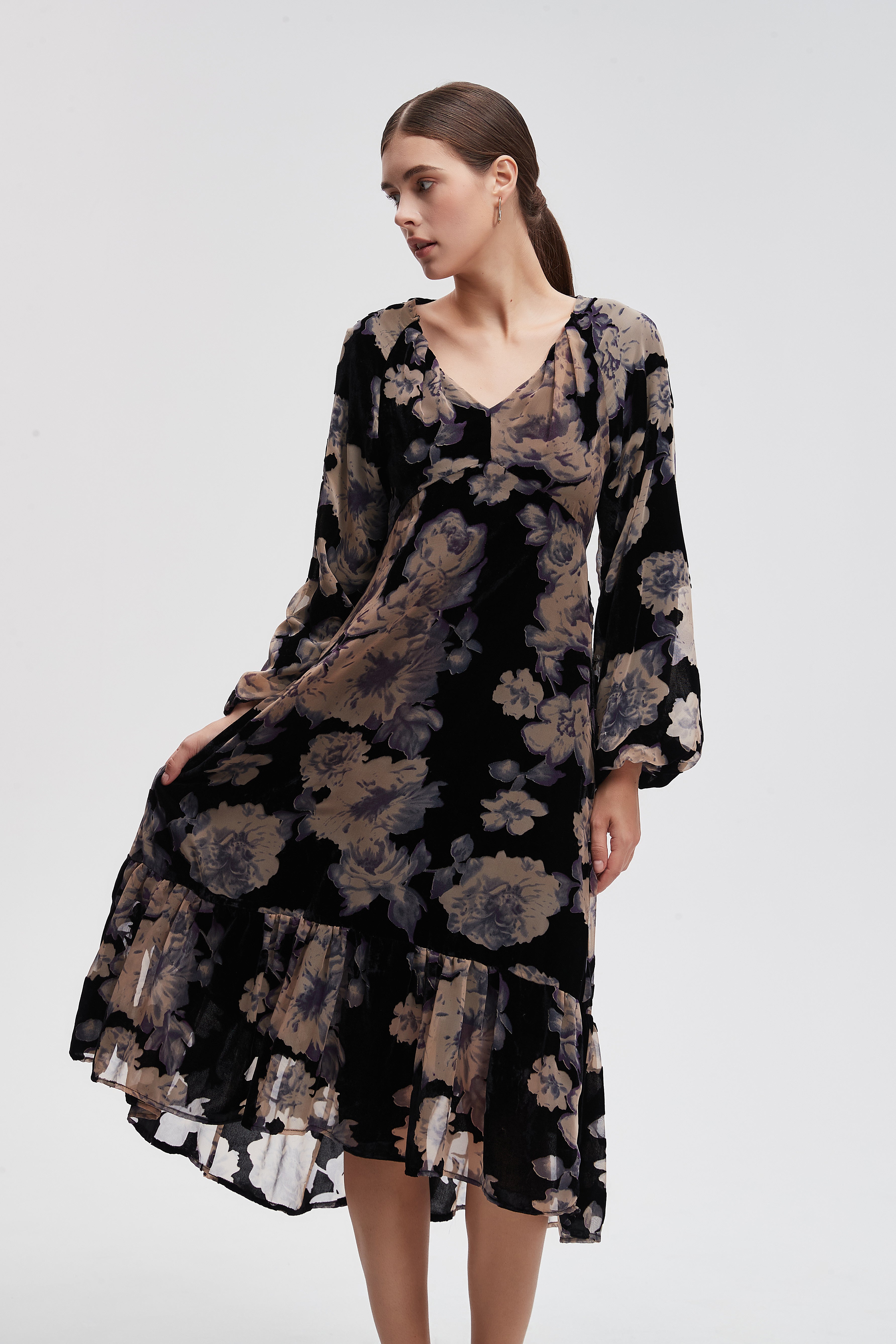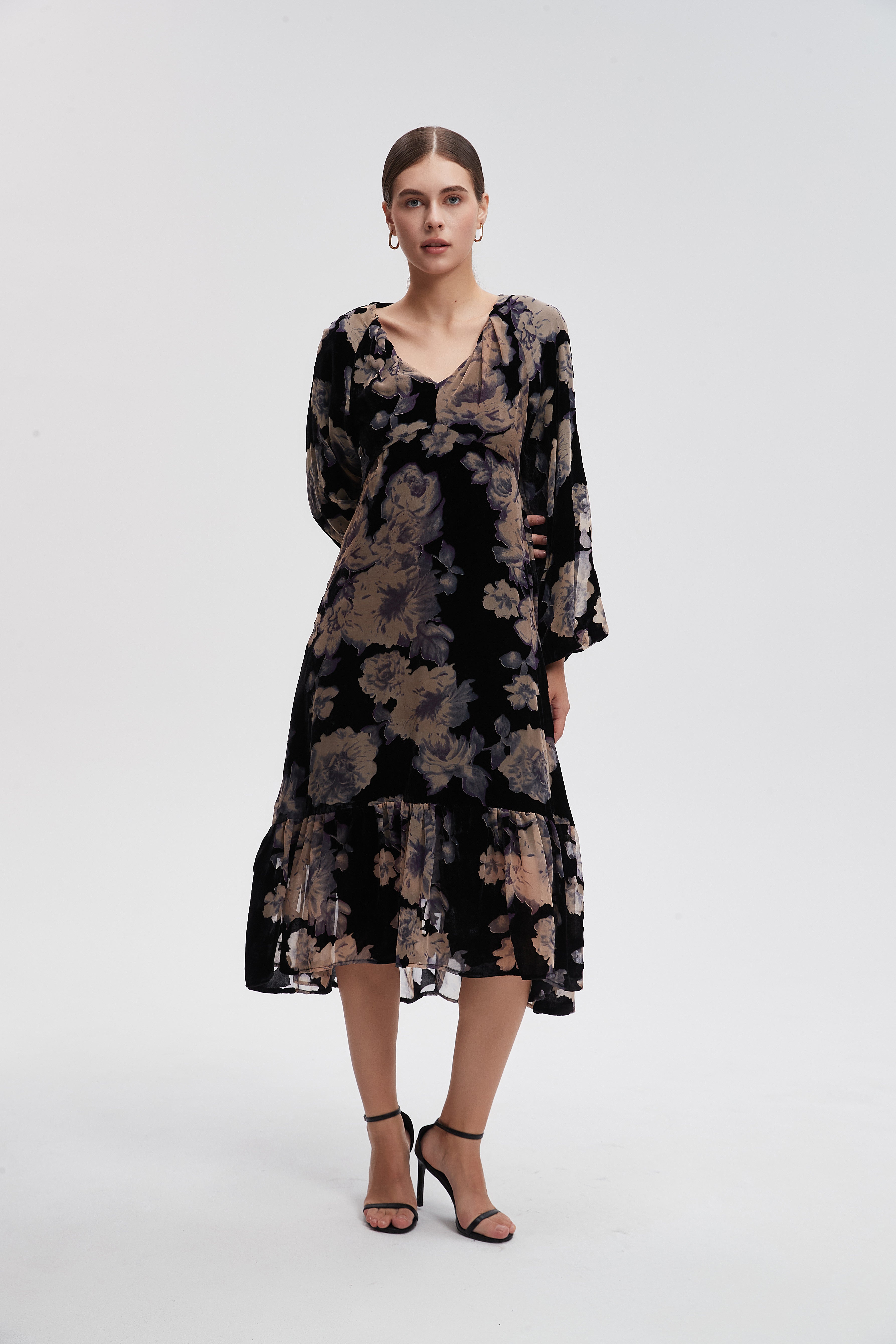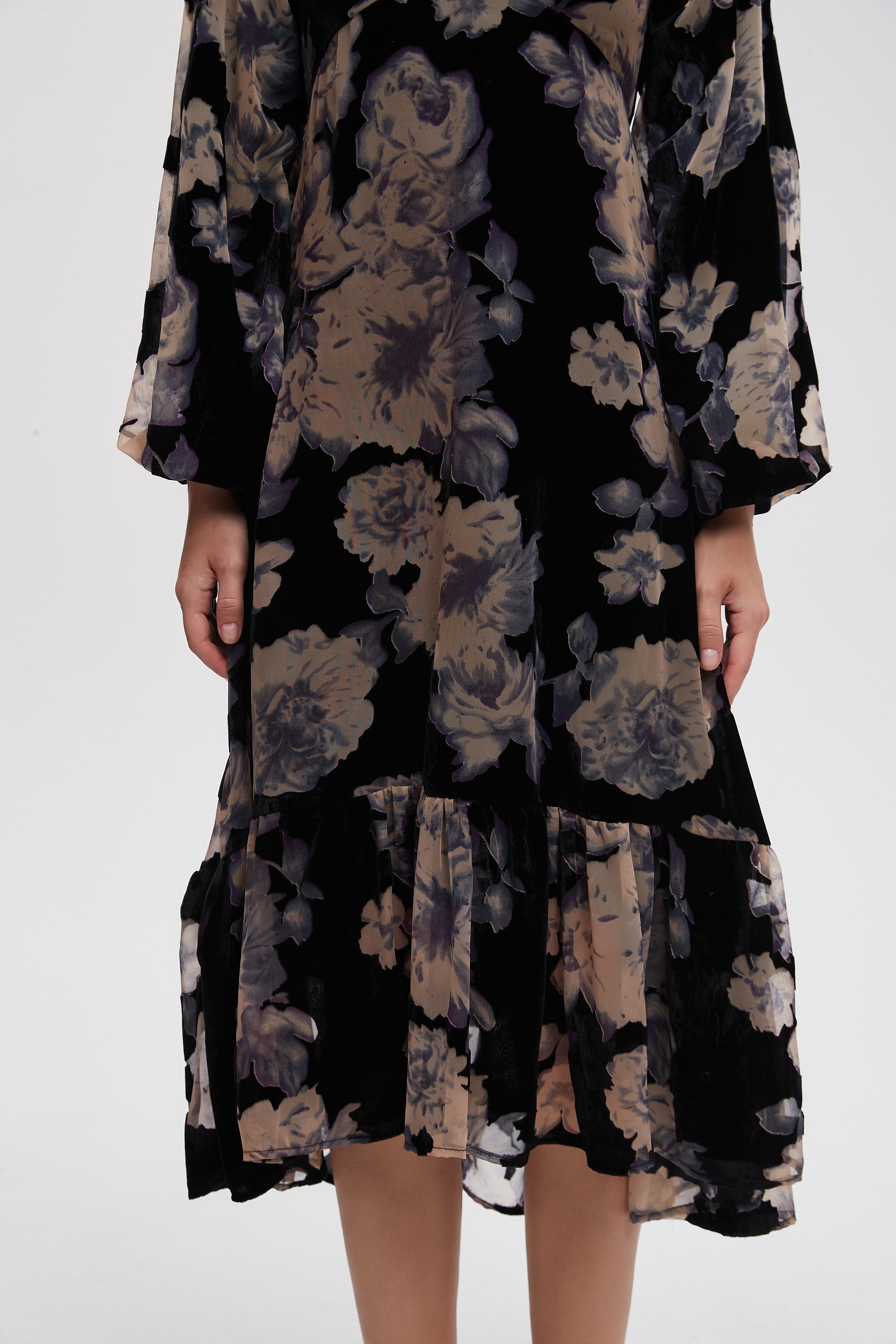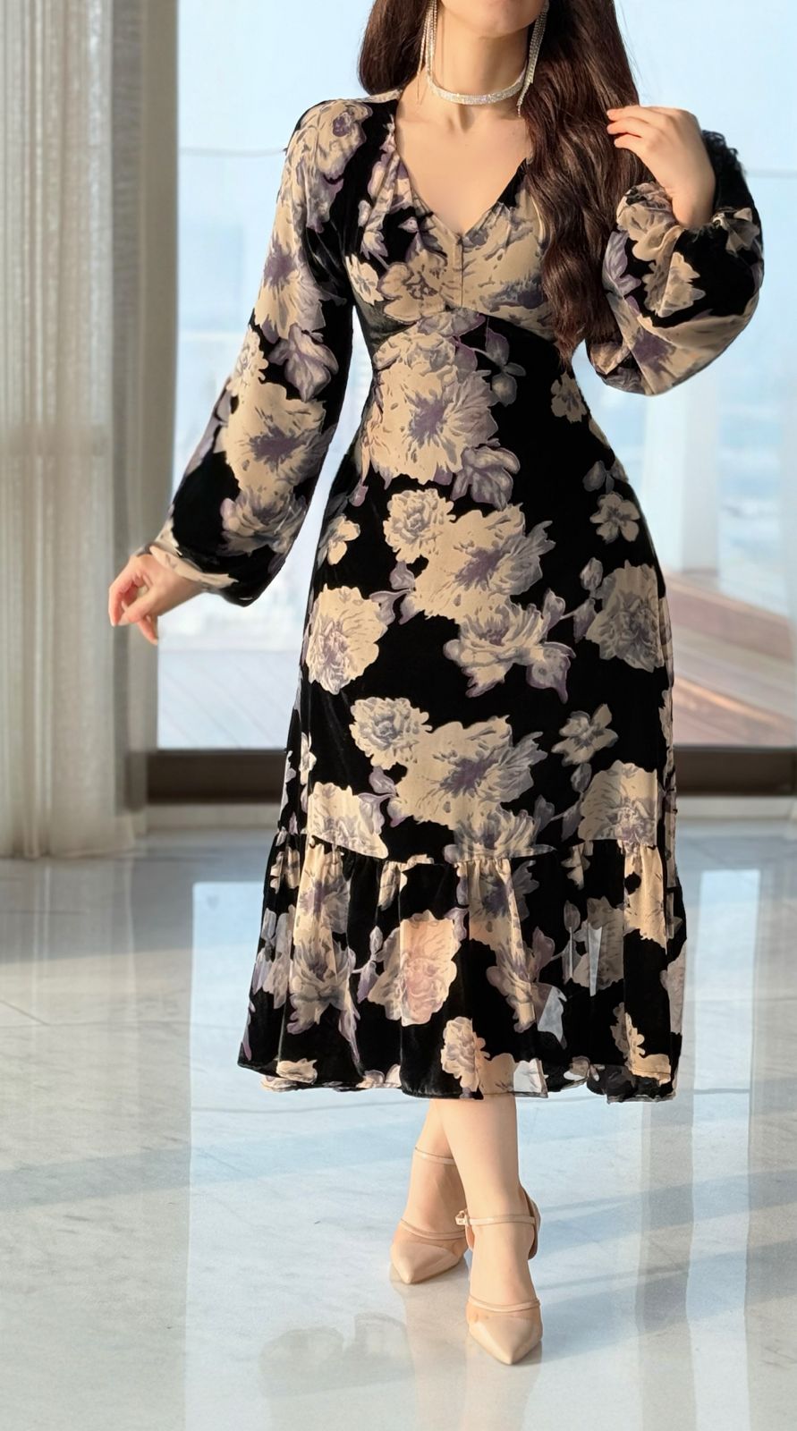 Shine with unparalleled elegance in this long-sleeved floral maxi dress, which combines comfort and beauty. This dress allows you freedom of movement thanks to its unique design, adding a touch of femininity to your look. Made from high-quality materials, it features attractive patterns that add a special charm to every occasion. Whether you wear it for formal occasions or for everyday outings, it's the perfect choice. Don't miss the opportunity to be the center of attention; order your dress online now and enjoy a distinctive look! Product number: lv0376w254to