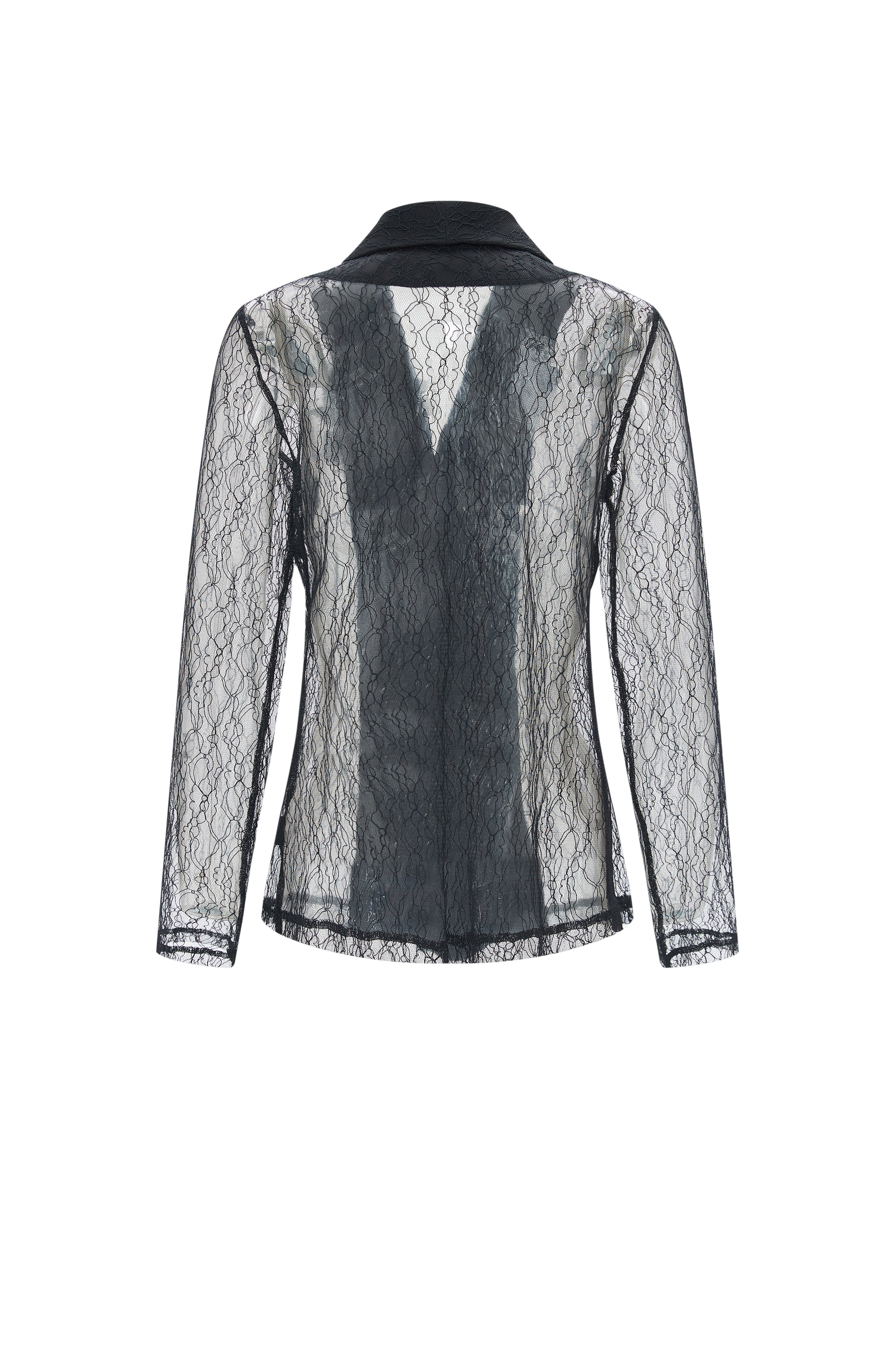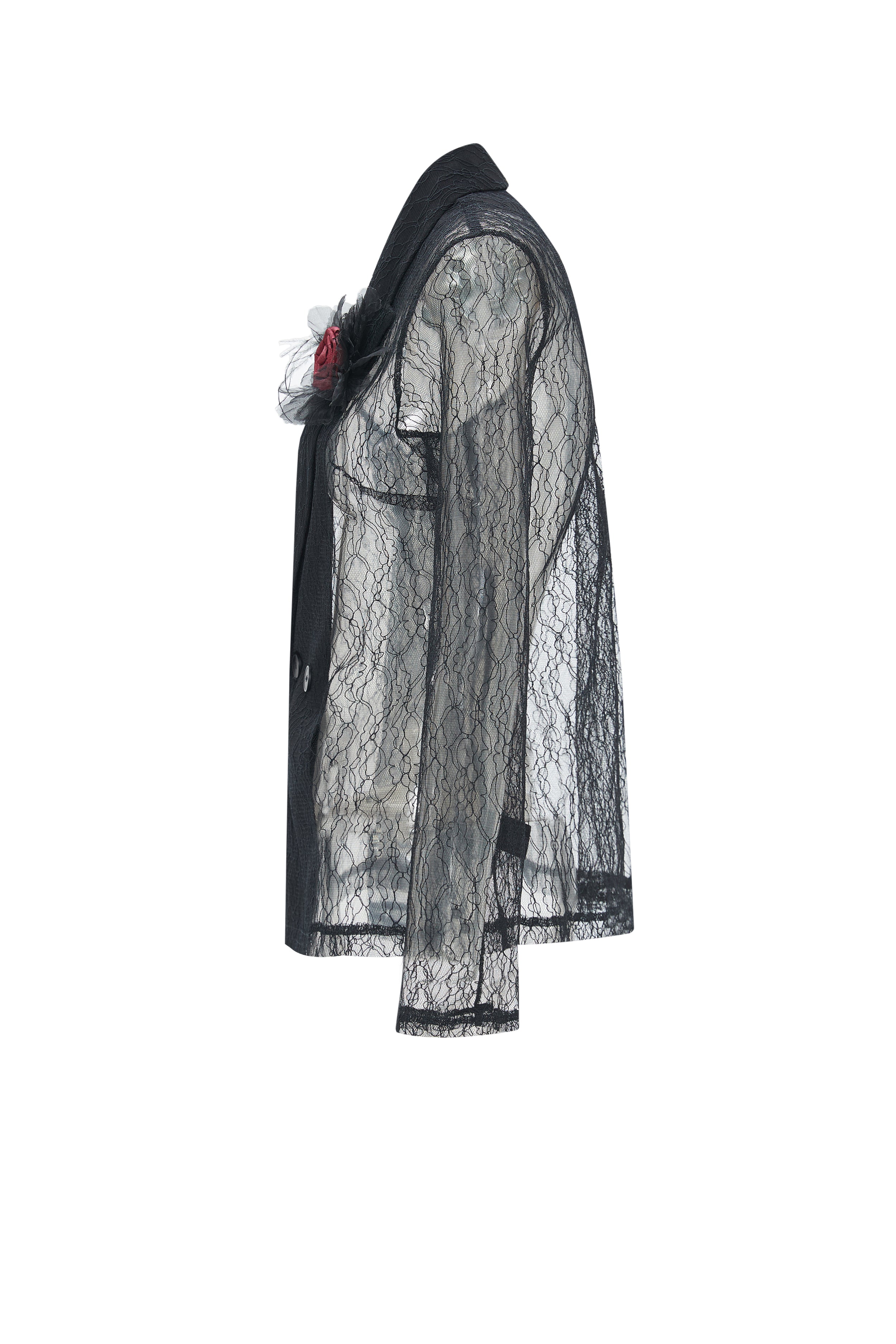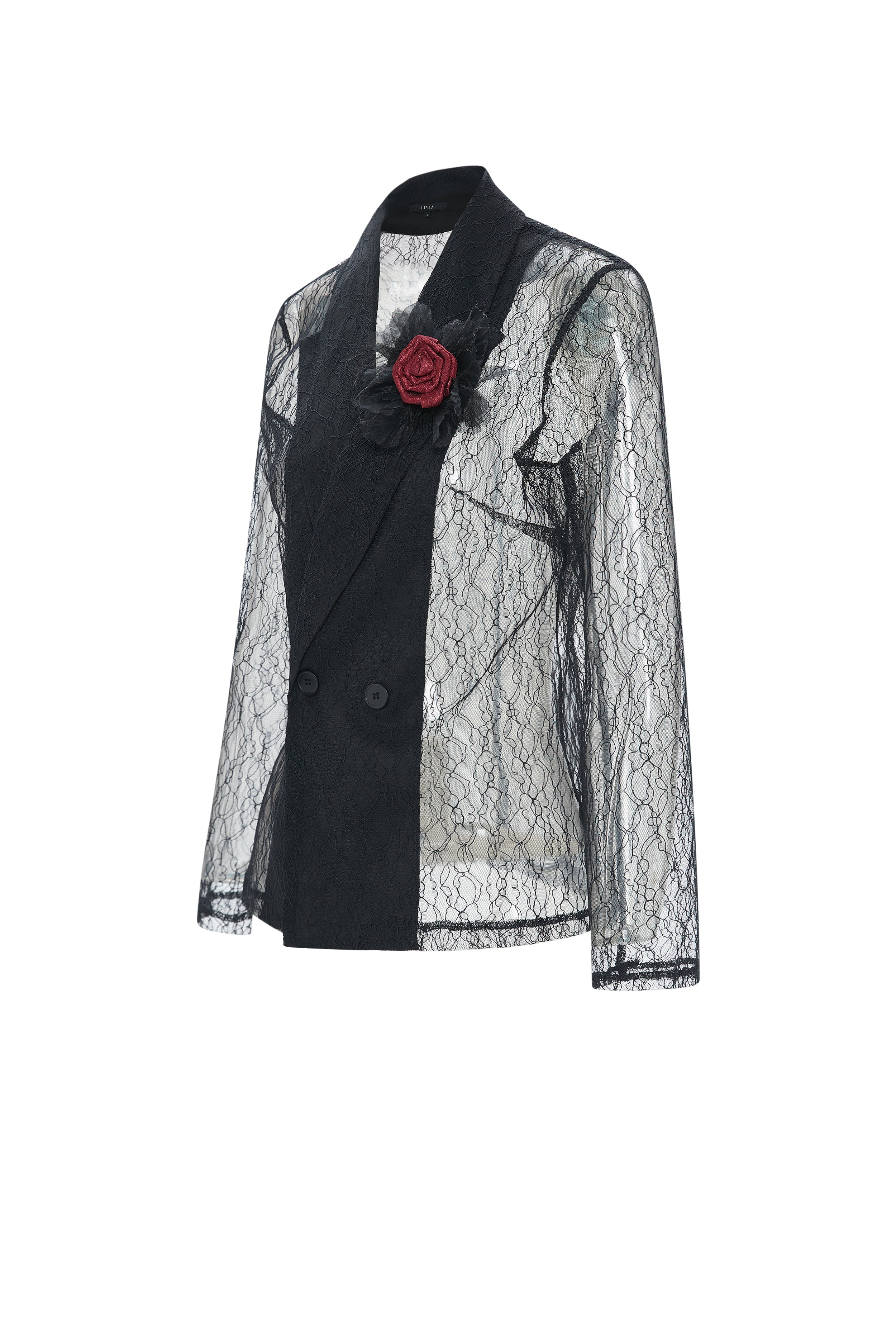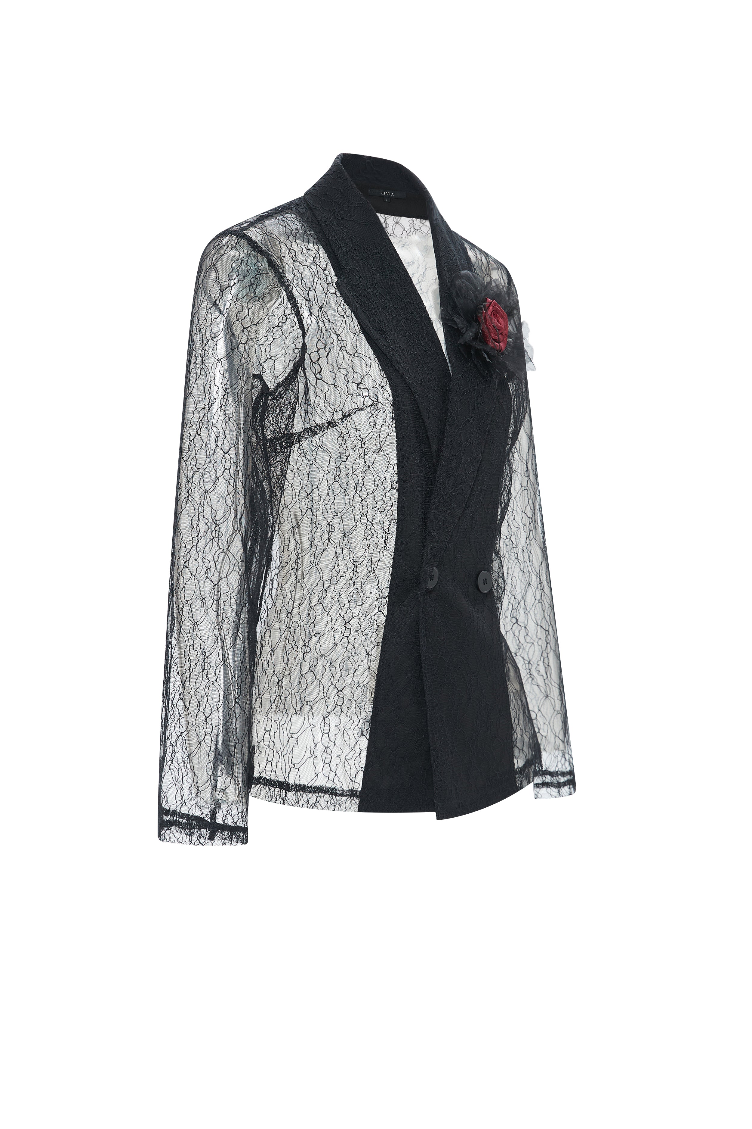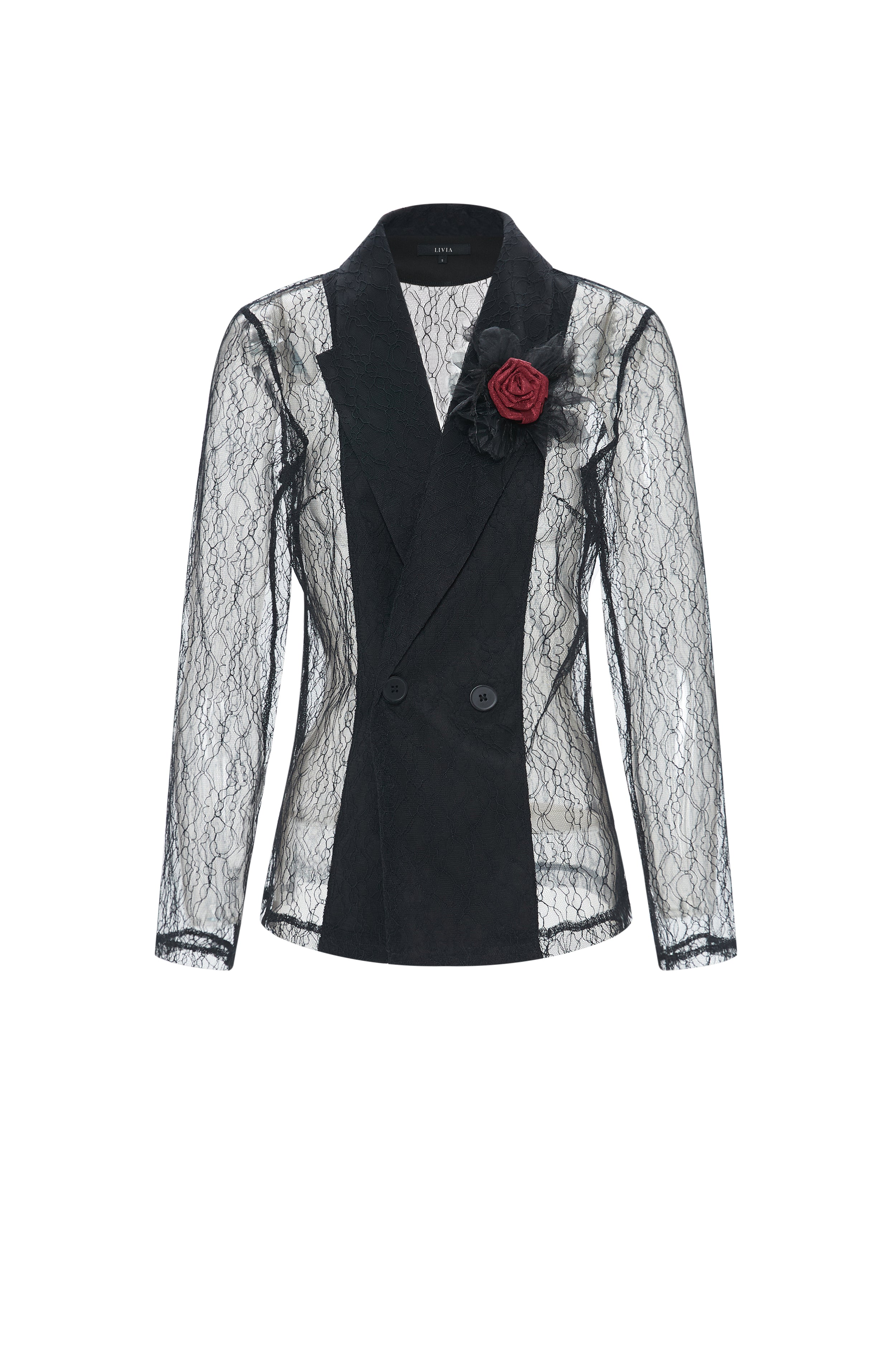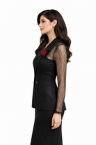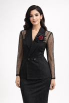Sheer Blazer with Chest Flower Detail