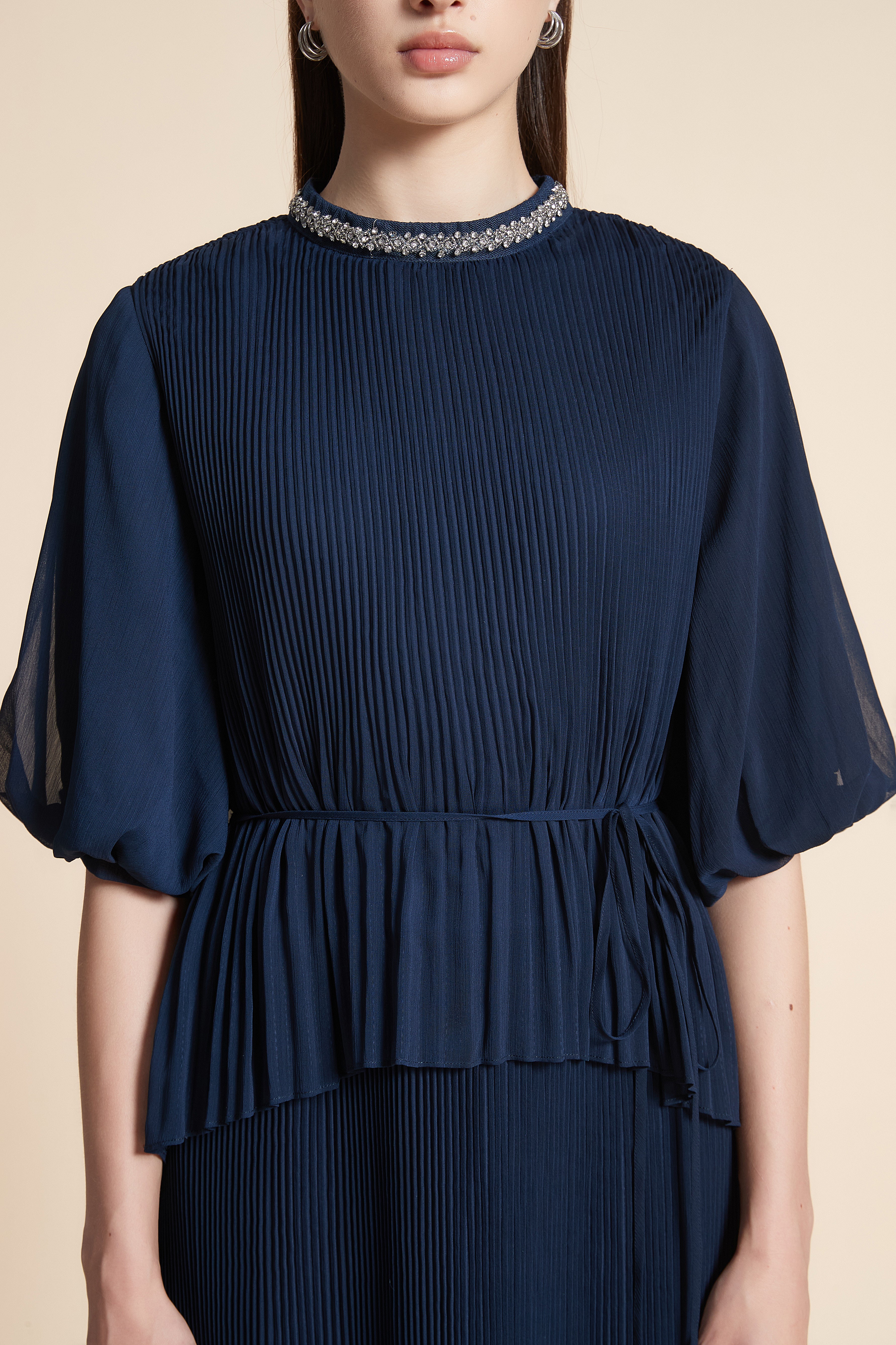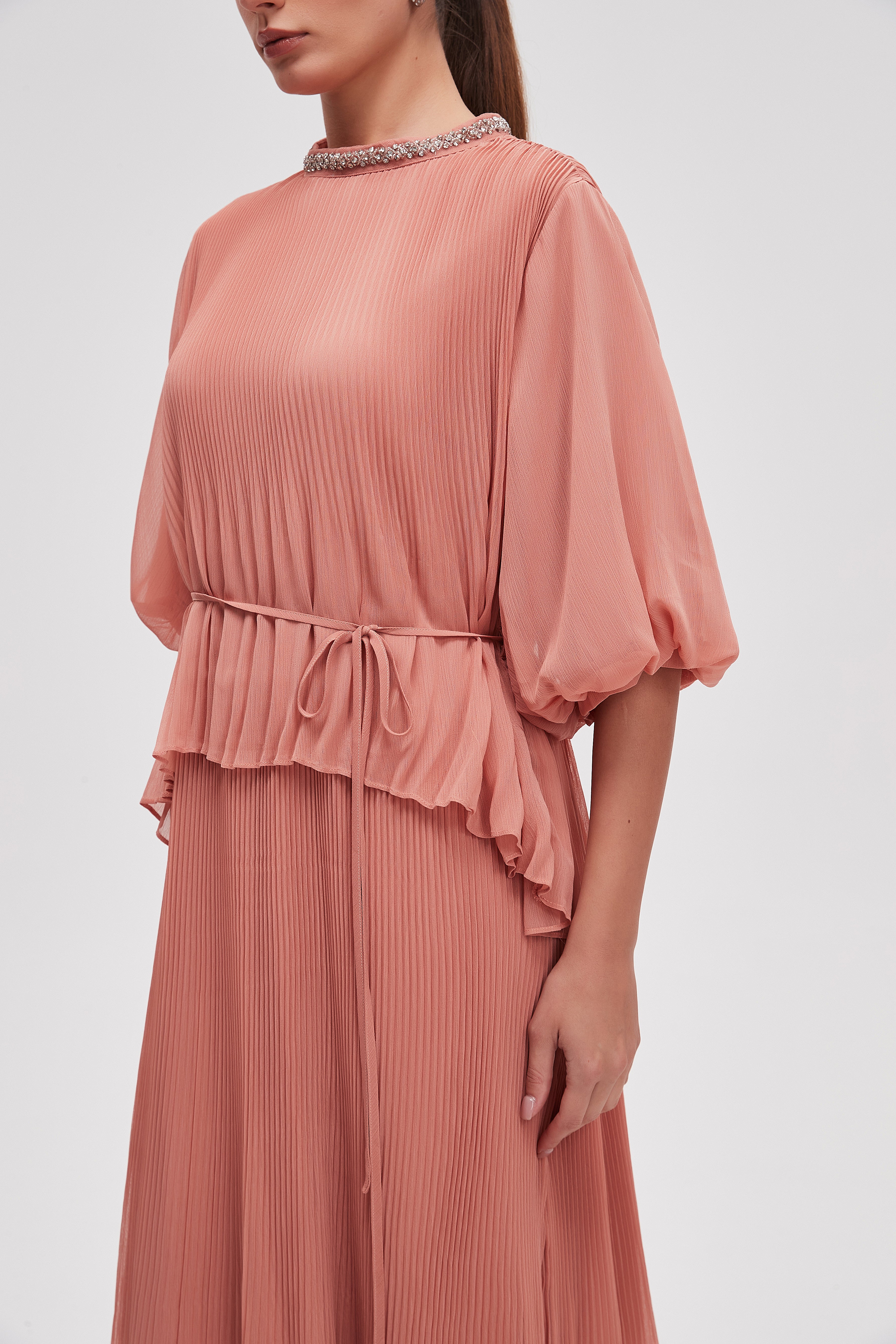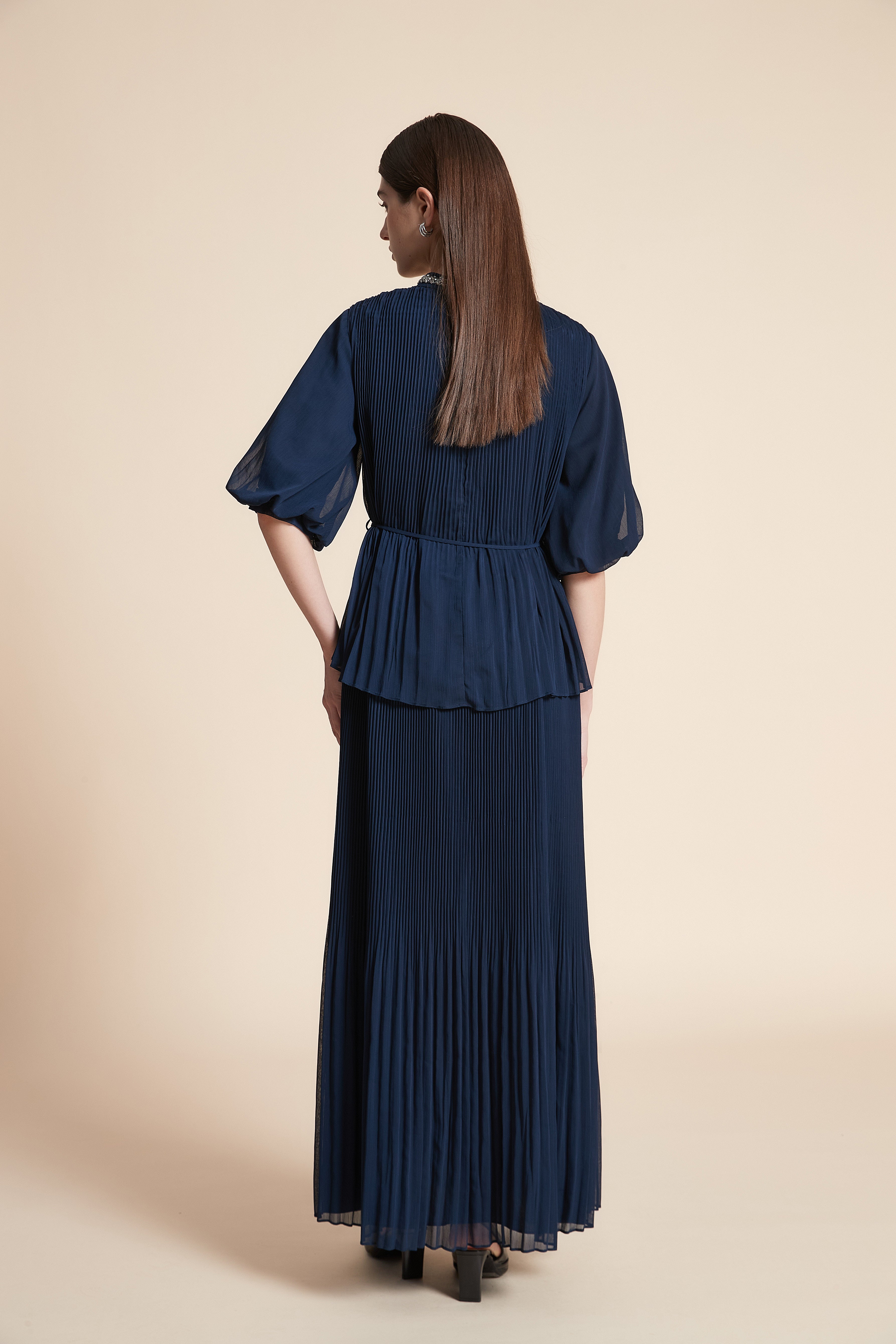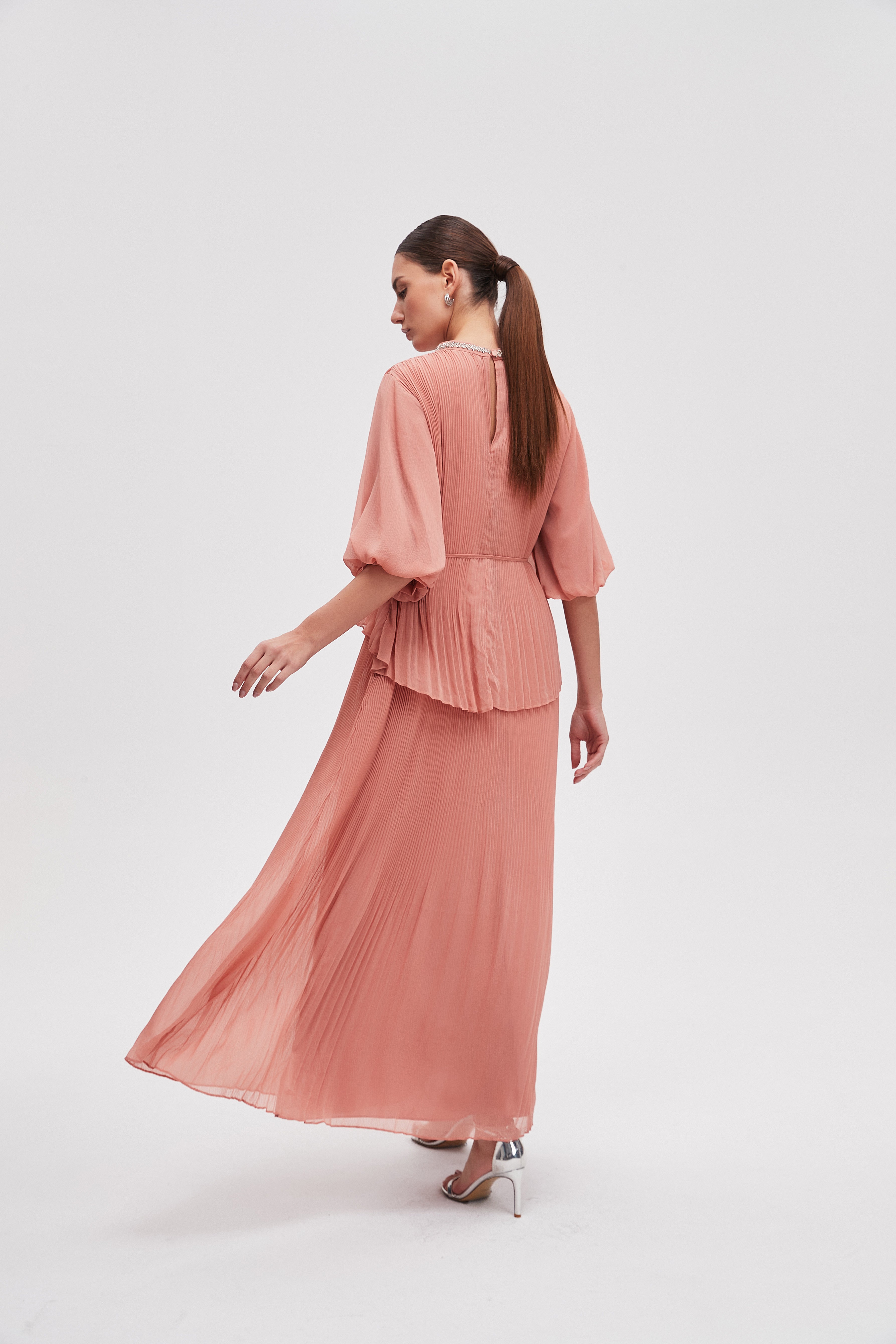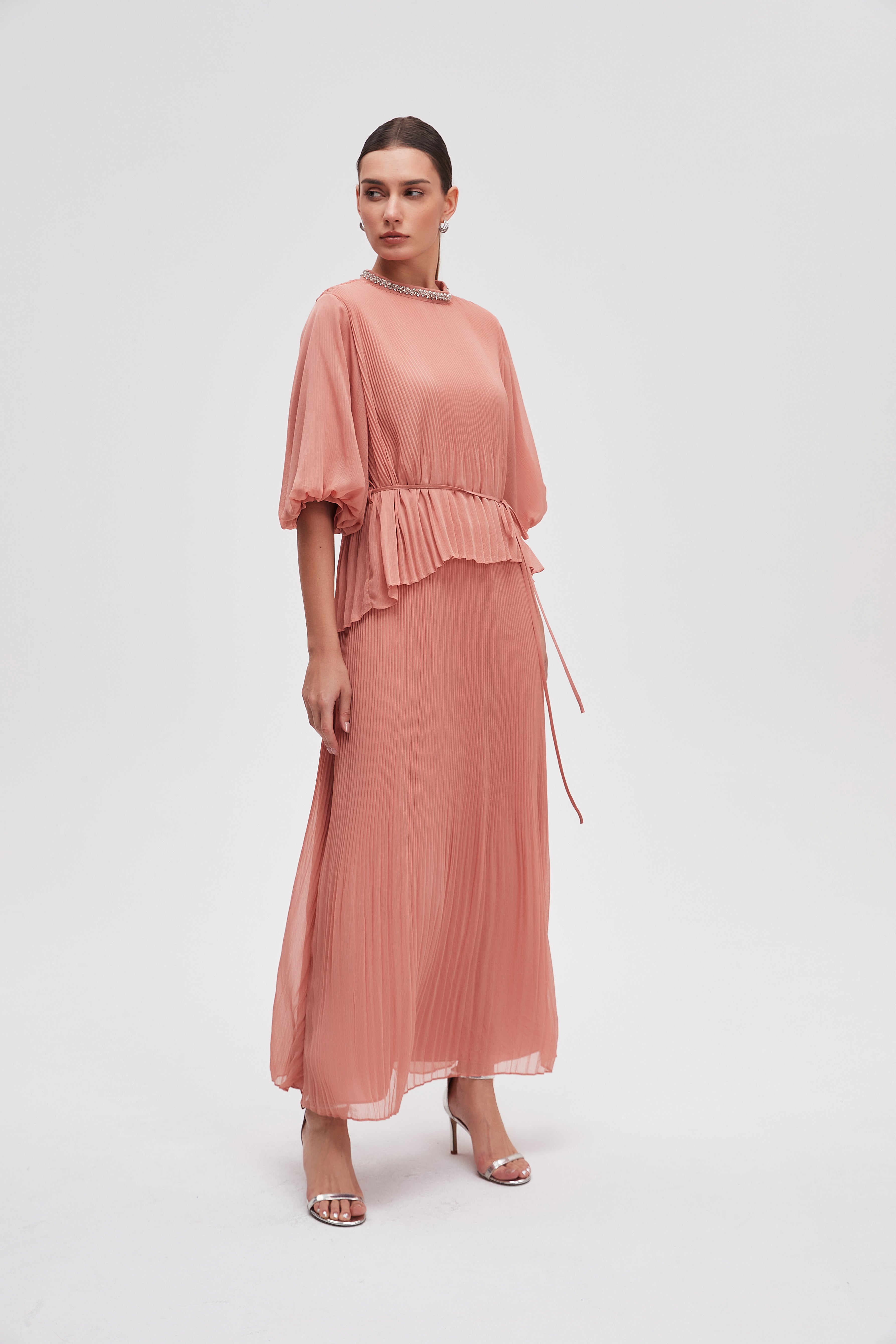 Solid Ruffled Maxi Dress with 3/4 Sleeves