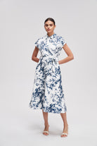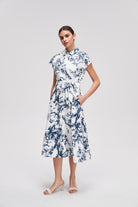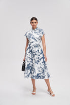 Sleeveless Printed Midi Dress with Belt
