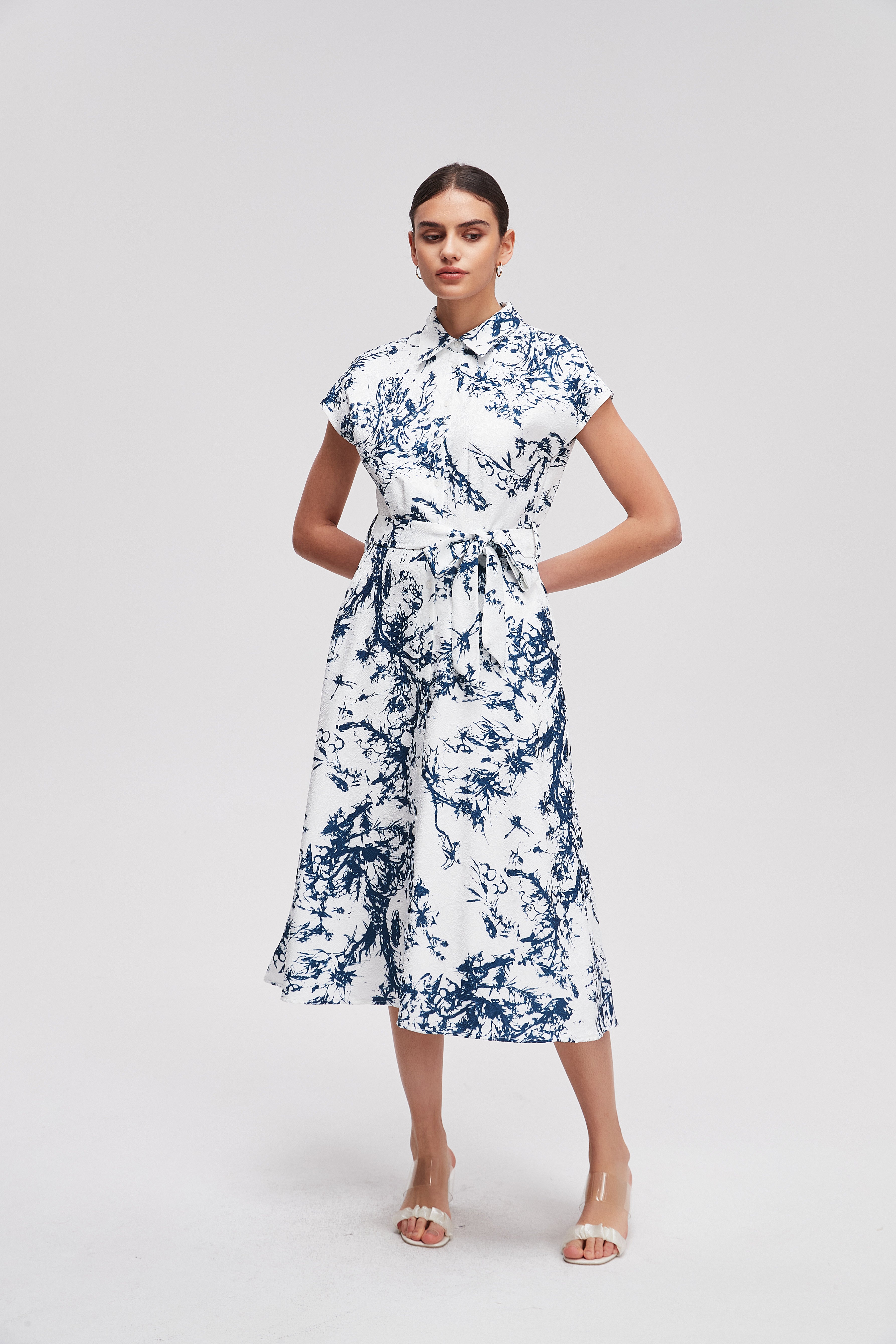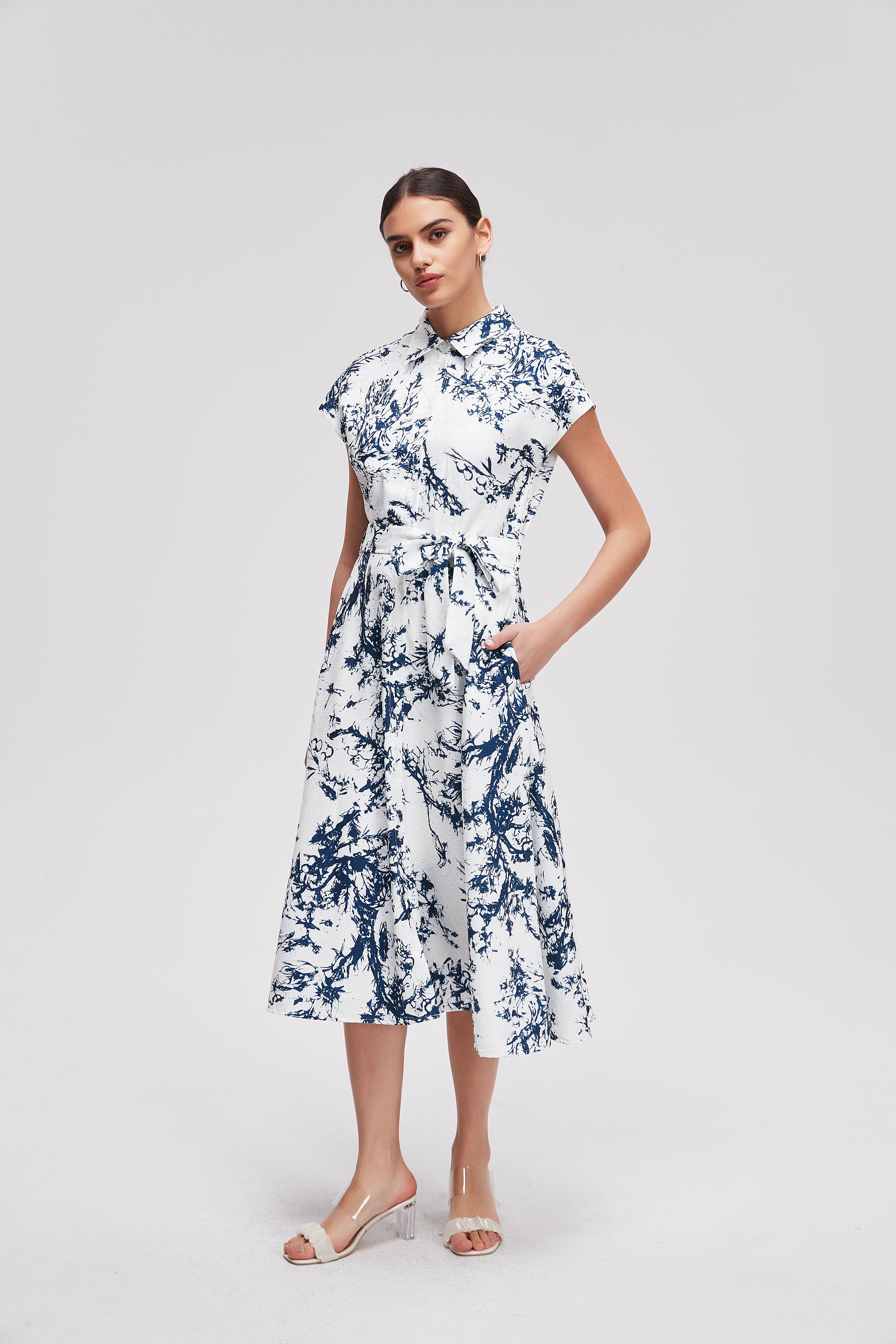 Unleash your inner fashionista with the Sleeveless Printed Midi Dress with Belt. This stunning piece features a vibrant tapestry of colors, reminiscent of a breathtaking landscape. The intricate print adds a unique charm, while the belted waist effectively accentuates your silhouette, ensuring a flattering fit. Whether you're headed to brunch or a casual outing, this dress is pivotal to your wardrobe. Product Number: nh26q1lc2405