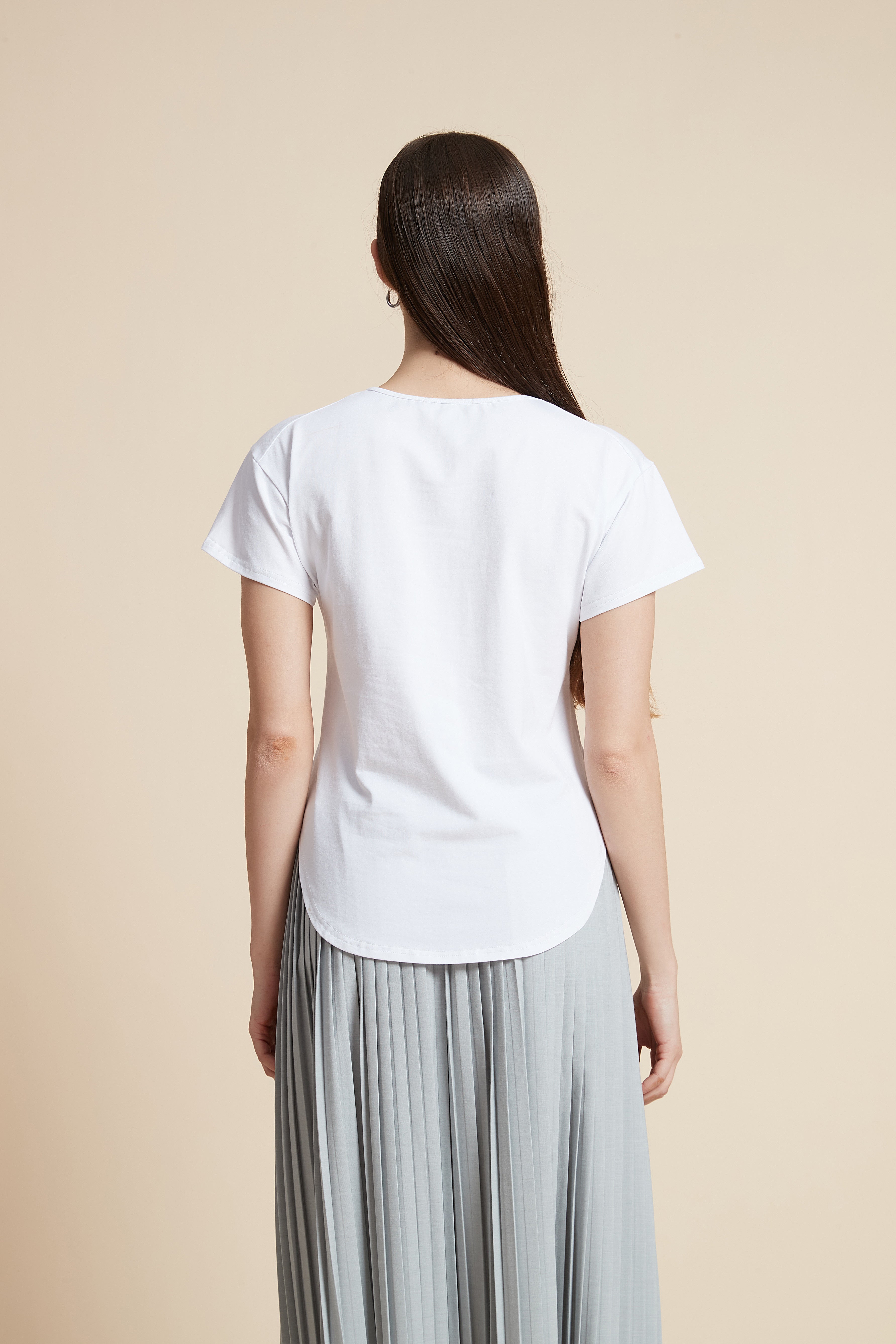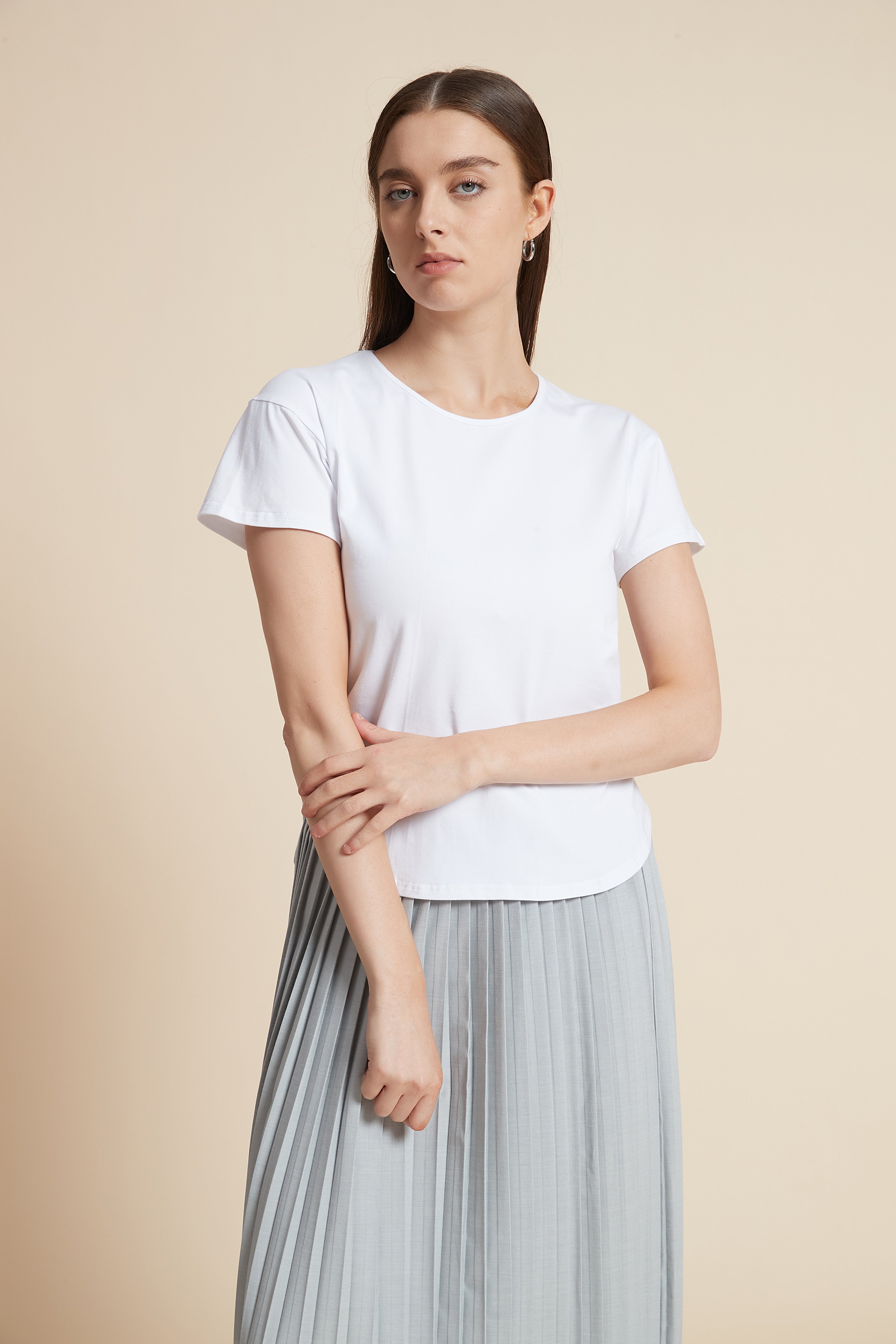 Discover the perfect blend of comfort and style with the Mica Solid Round Neck Short Sleeve Blouse. This essential piece features a classic round neck and short sleeves, making it a versatile addition to any wardrobe. Crafted from soft, breathable fabric, it promises all-day wear without compromising on comfort. Whether paired with jeans for a casual outing or dressed up with a skirt for a night out, this blouse is sure to impress. Don't miss out on the chance to elevate your style—order your Mica blouse today through Fashion Saudi and redefine your look! Product Number: bms8010