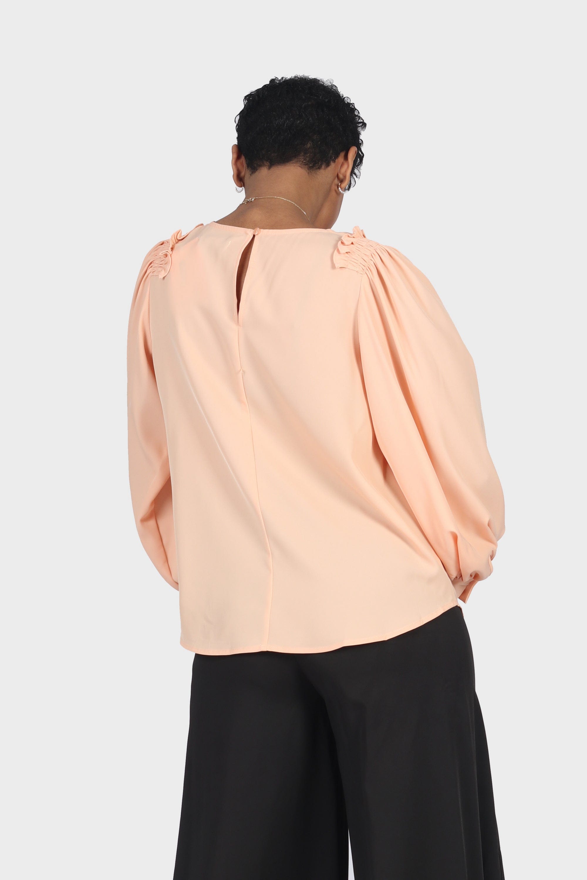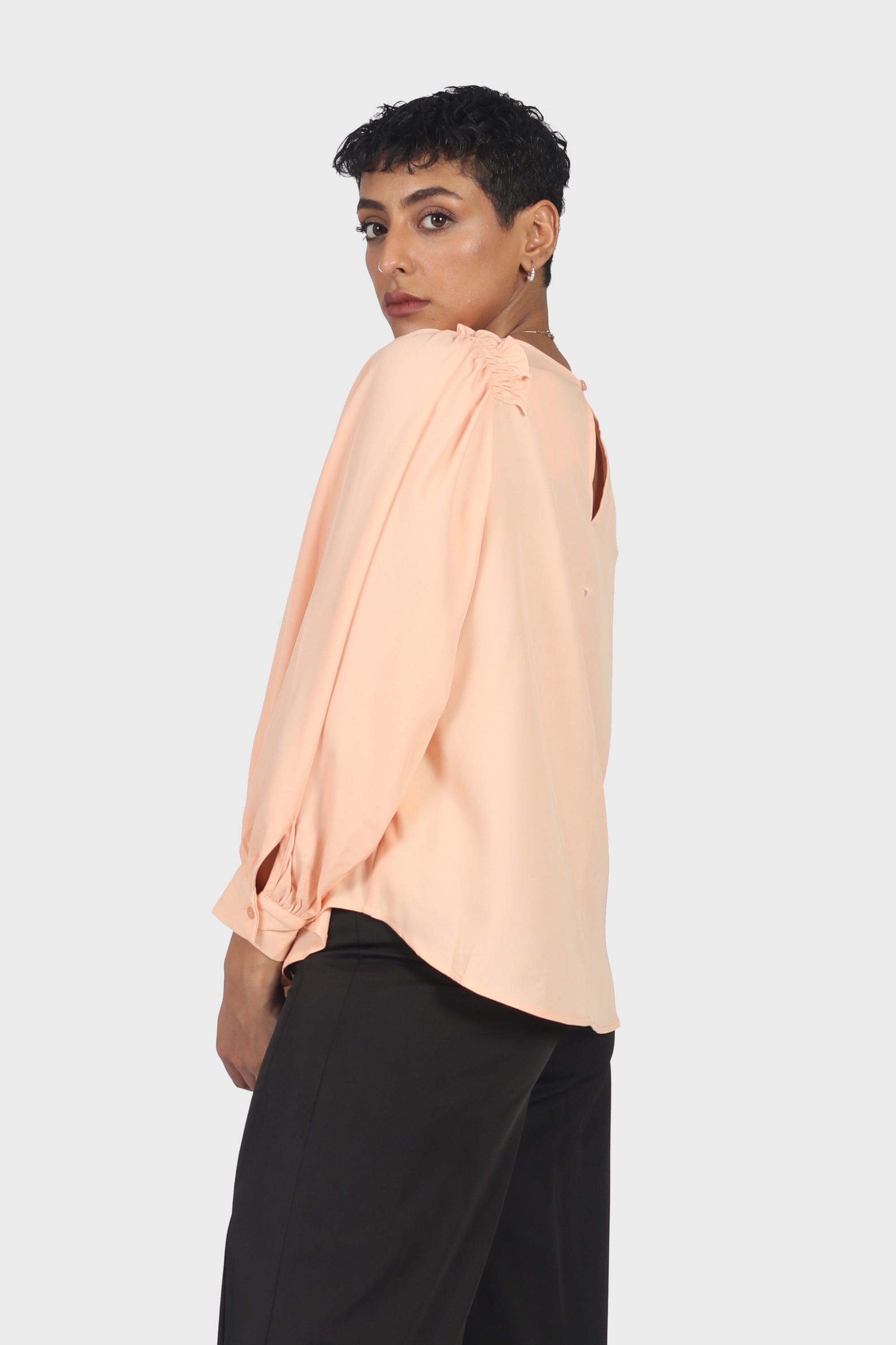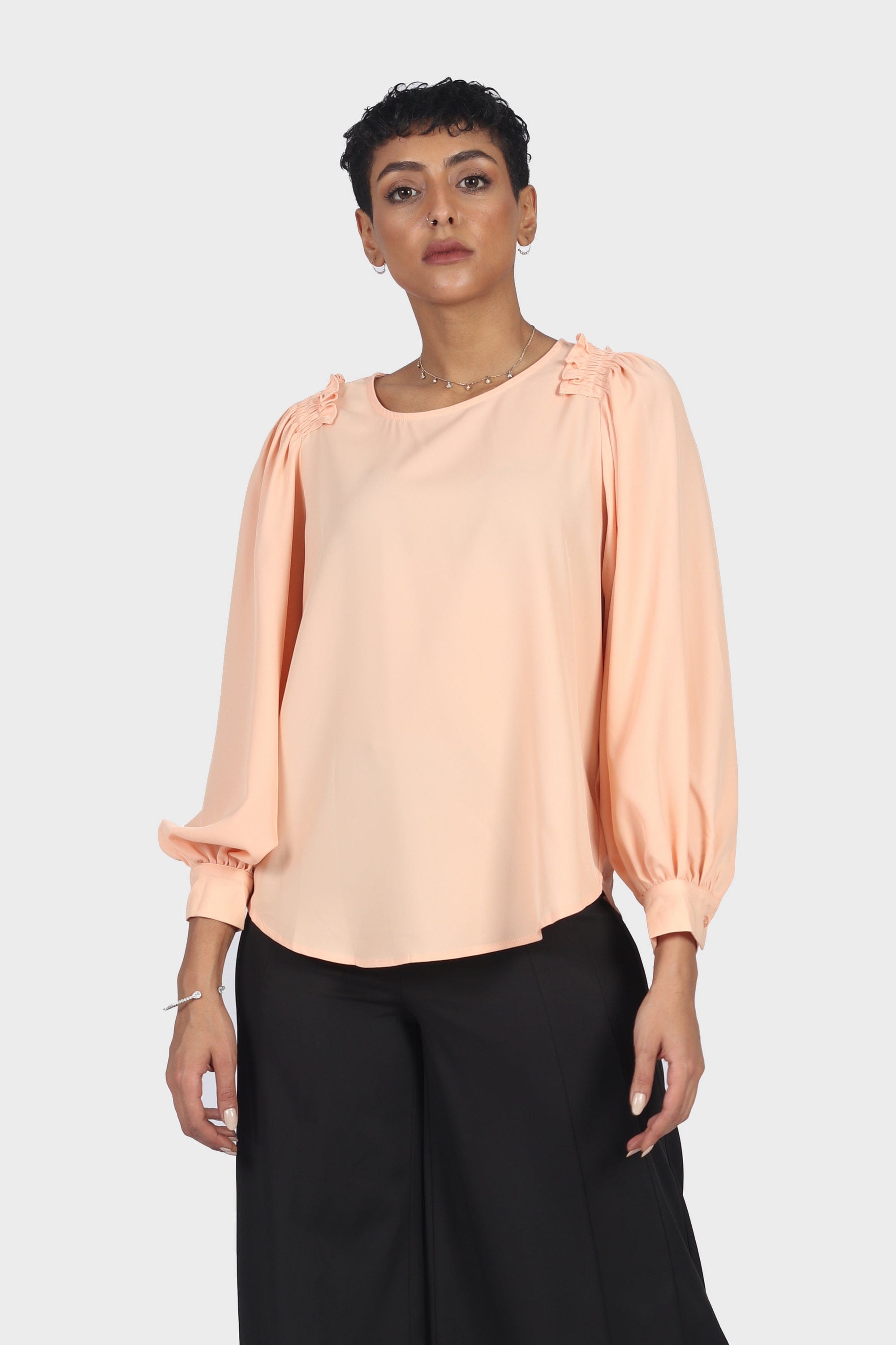 Add a touch of formal elegance to your look with a plain -platform formal blouse with wide sleeves and savory details with women's bracelet. This blouse comes in a simple and elegant design, which makes it ideal for wear on official occasions and important meetings. Thanks to the attractive colors available, you can choose a classic off -white blouse or an elegant peach blouse. Enjoy the elegant and comfortable appearance at the same time with an official blouse, a wide spin, a spilled fluffy with a gynecologist from the Saudi Fashion. Do not miss the opportunity to get this wonderful blouse from Nachi, request it now via Fashion! Product number: LC1987-20Q305