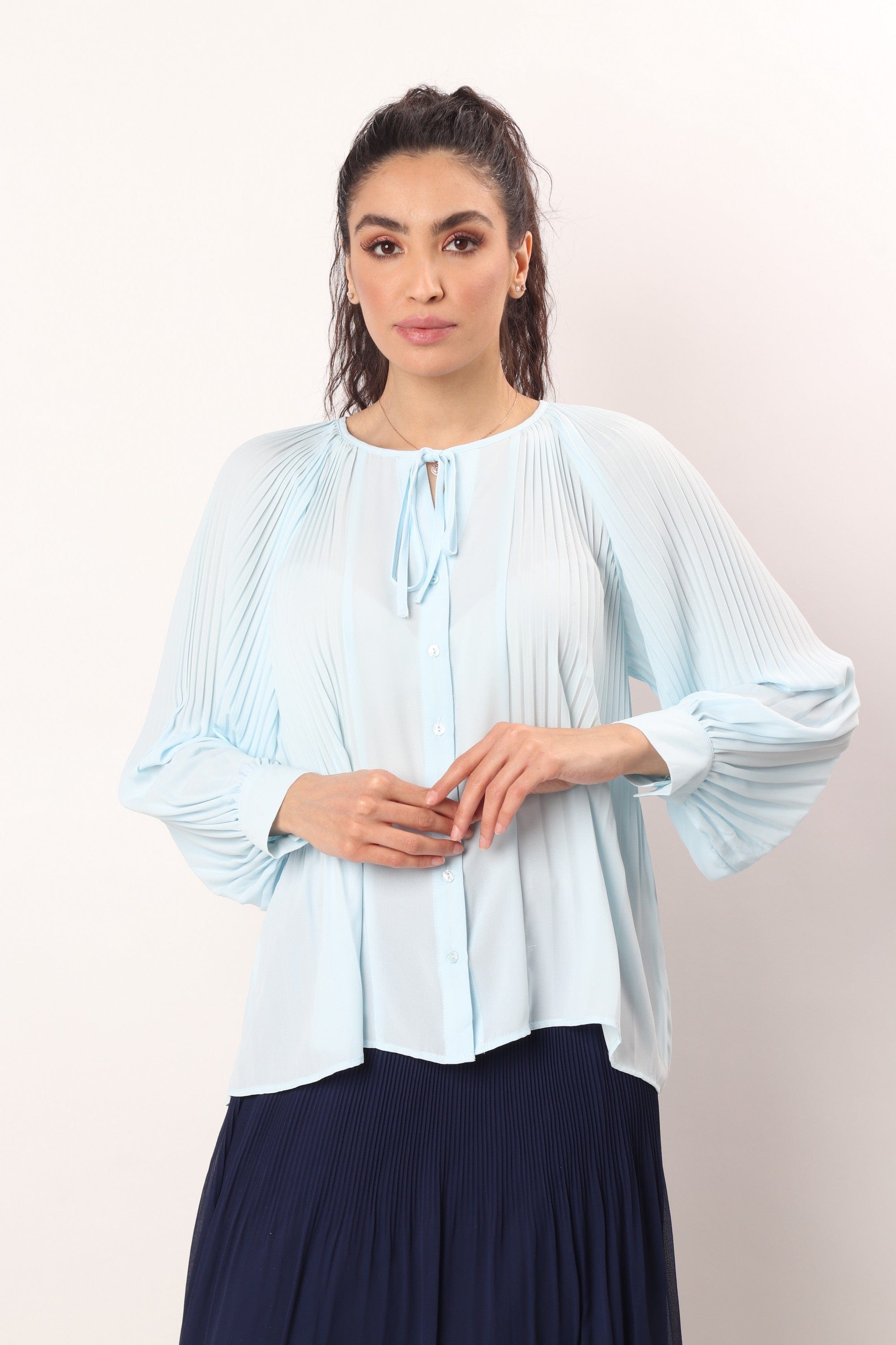 Add a touch of elegance and gravity to your look with a clush blouse with a ligament and a long women. This blouse features a distinctive Clush story that gives an open and dropped shape, with an elegant bond that increases the beauty of the piece. The long amount is characterized by its wonderful and comfortable design, making it ideal for daily wear and special occasions. This blouse comes in a beautiful and light blue coral color, allowing you to choose the color that fits your taste and personal appearance. Her wonderful and quality design makes it a basic piece in your wardrobe. Product number: LC2046-21Q201