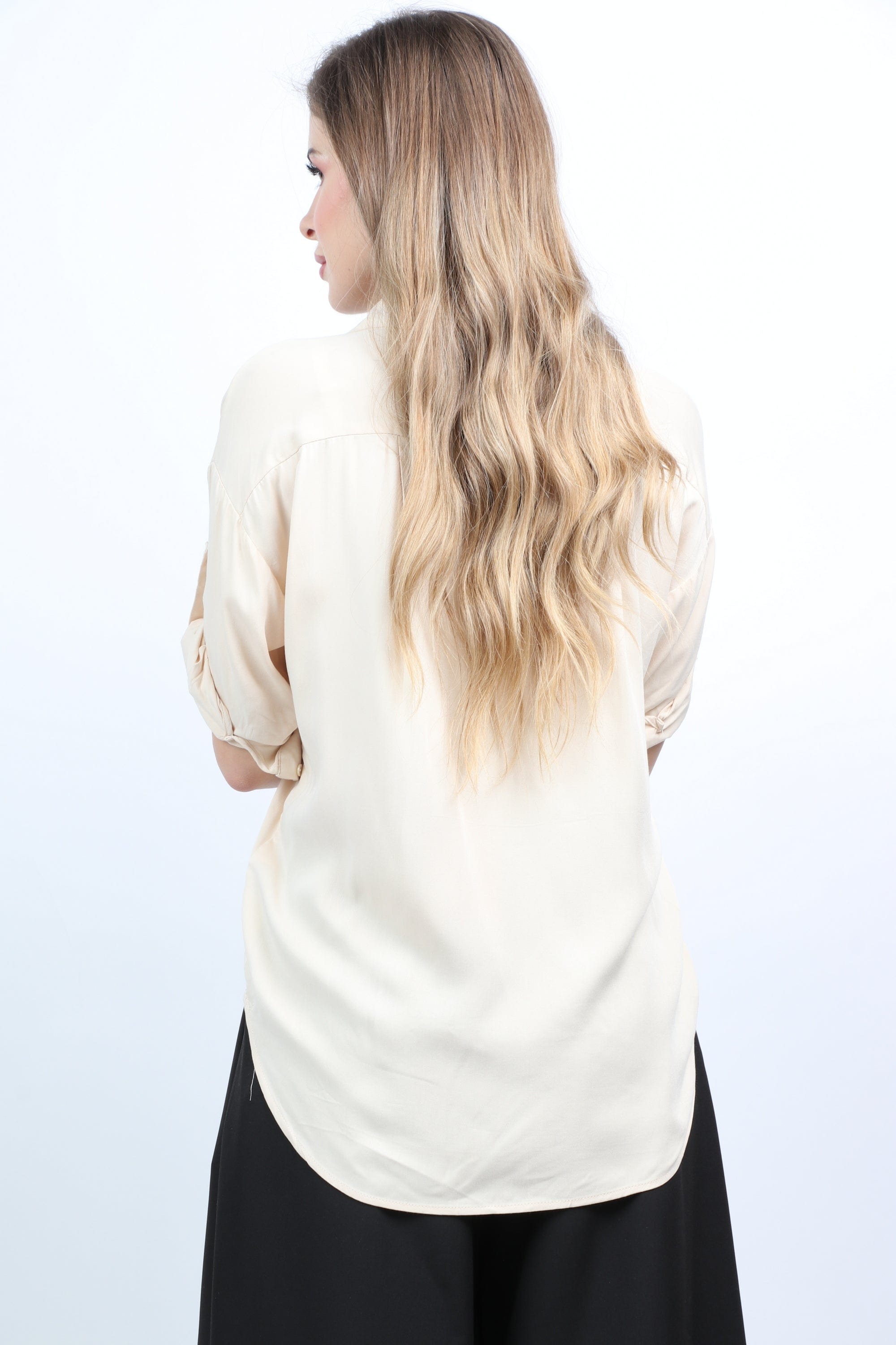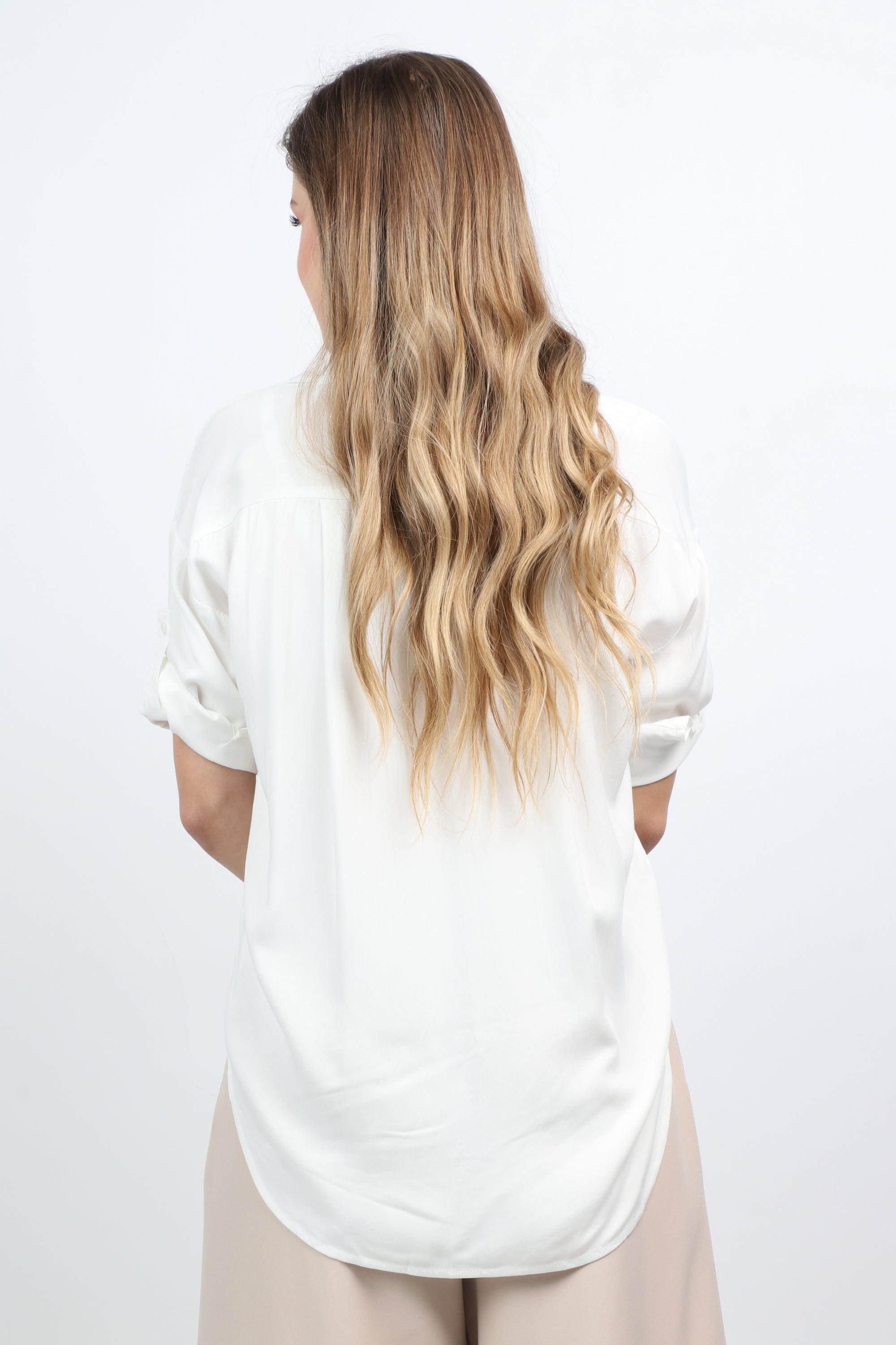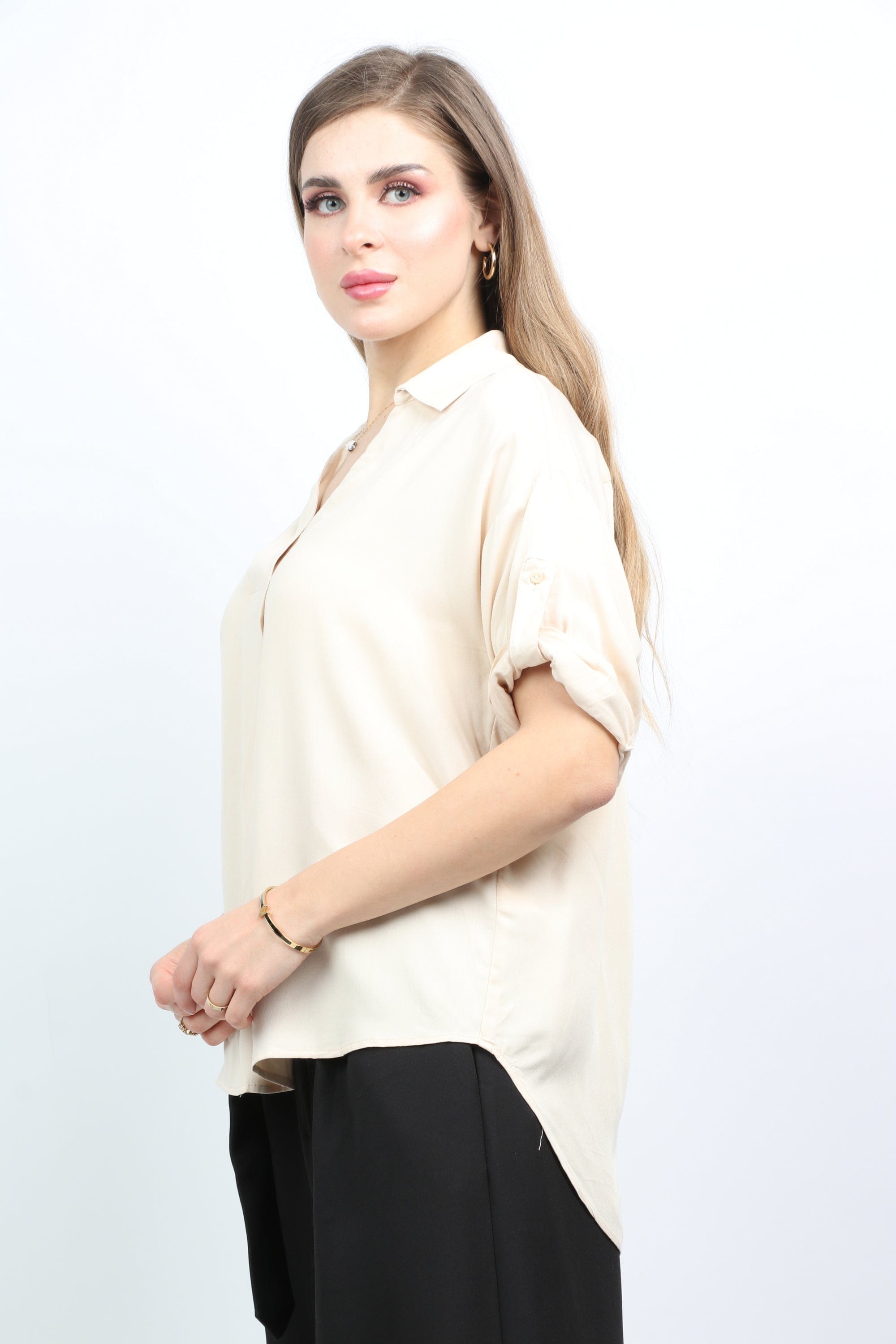 Enjoy elegant conservative with a shirt with front buttons and a text of how many women. This distinctive shirt is available in three great colors, beige, black and off white. It is characterized by its elegant and modern design, and is suitable for all daily occasions. You can wear it at work or relaxation. A shirt with front buttons. Now get a plain shirt with front buttons and the text of how wonderful my women are from Fashion Saudi Arabia and prepare for a wonderful and elegant look on every occasion. Ask now and do not miss the opportunity to get the latest fashion trends from Nichii. Product number: LC2251-22Q205
