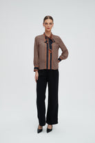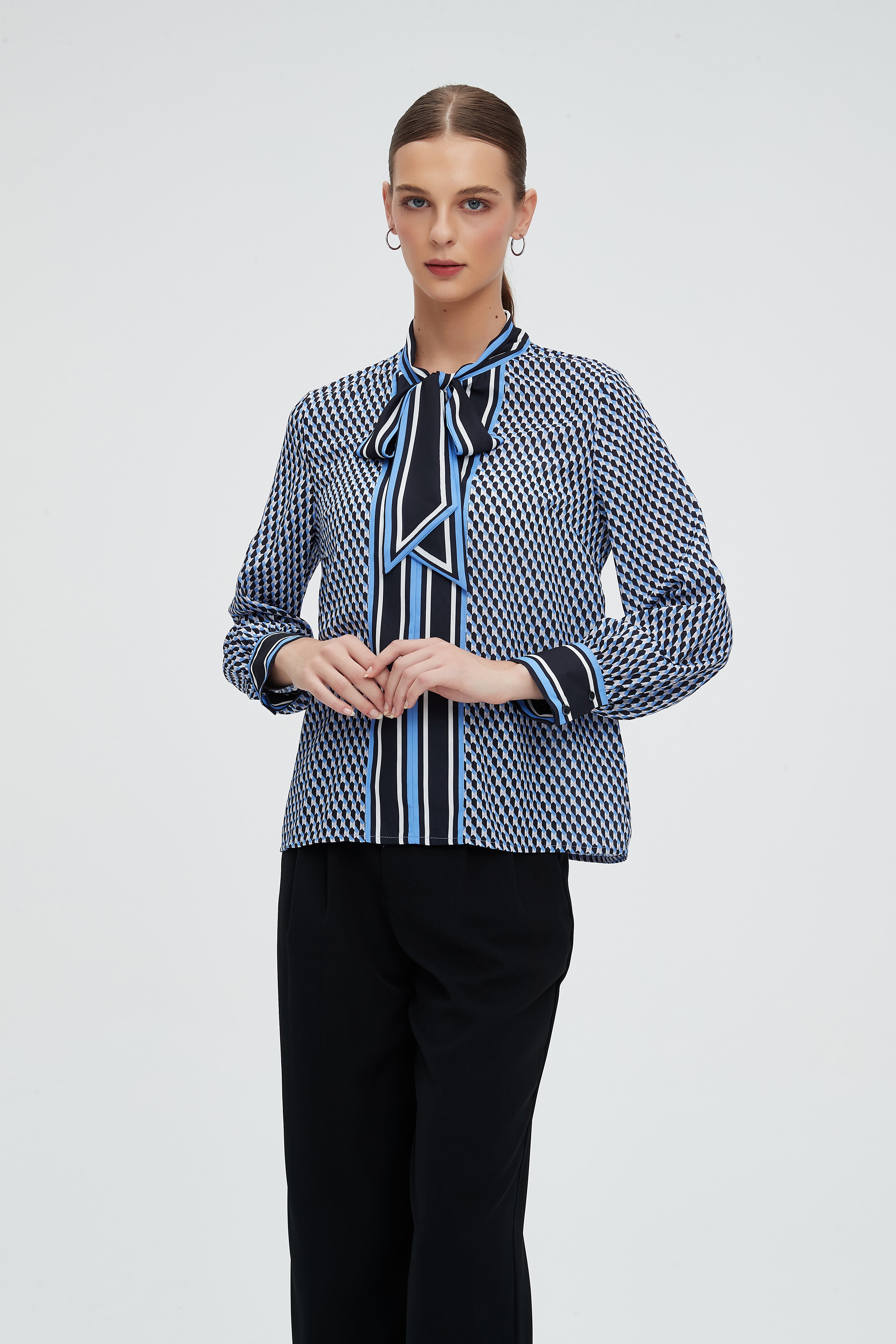 Chic and charming, the Long-Sleeve Printed Women's Blouse with Bow Detail at the Neck by Nichii is a must-have for any stylish wardrobe. This blouse features a playful print that adds a touch of personality to your outfits, while the delicate bow at the neck brings a hint of elegance. Crafted from soft, breathable fabric, it promises all-day comfort and versatility, making it perfect for both casual outings and more formal occasions. Pair it with your favorite jeans or a sleek skirt for a polished look. Don’t miss out on this stylish staple—order yours today through Fashion Saudi! Product Number: lc272024q303
