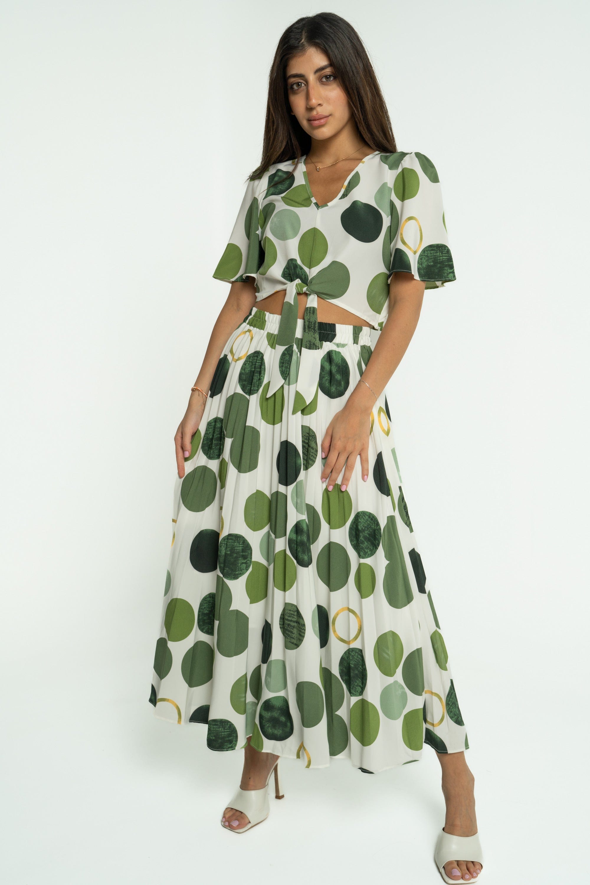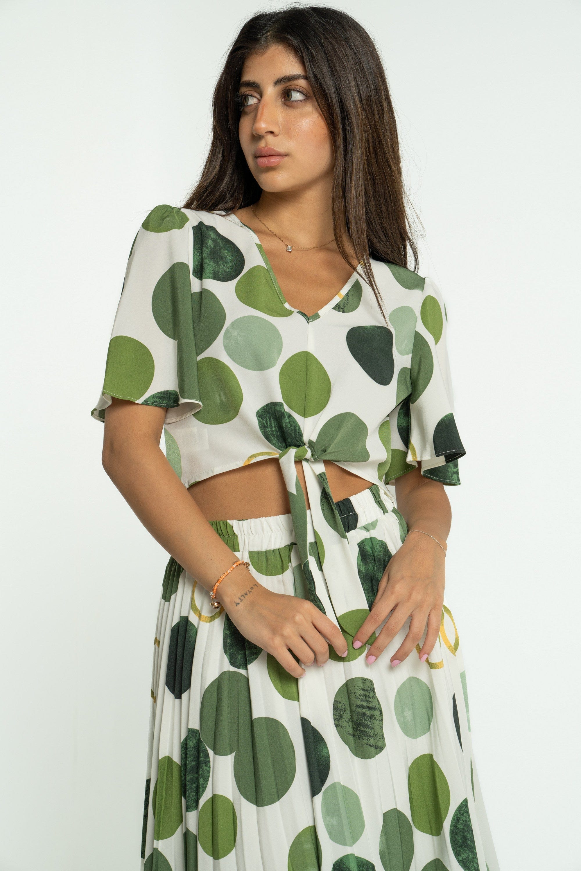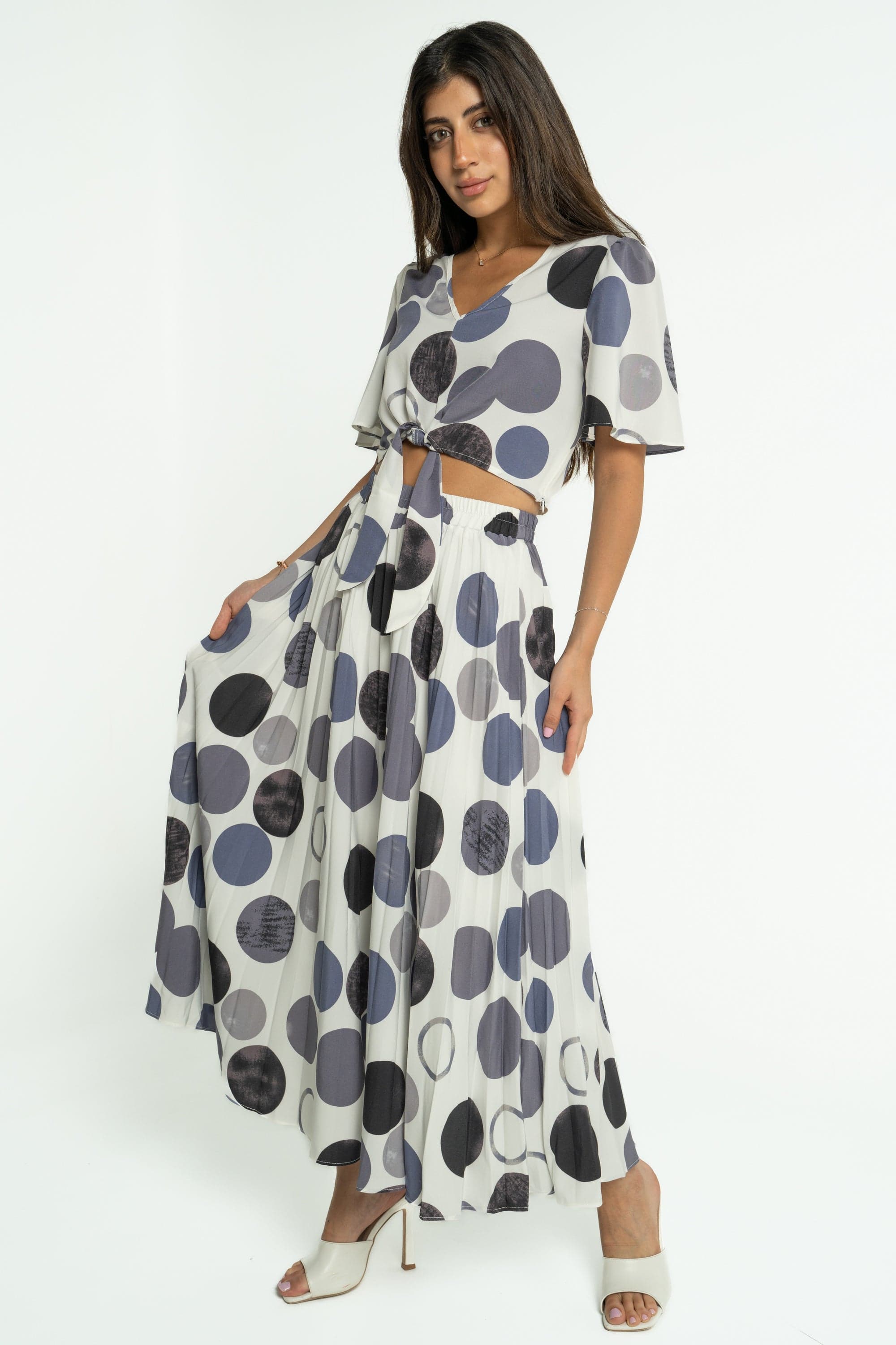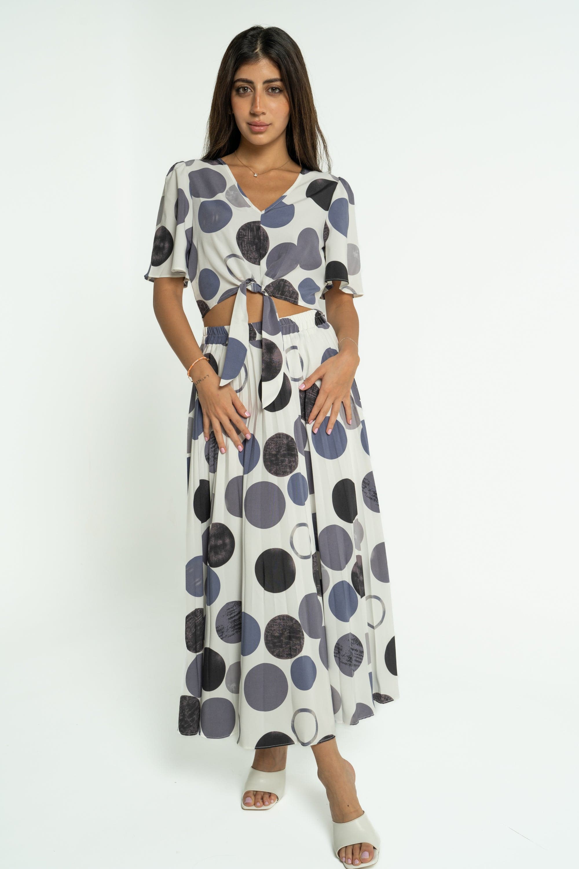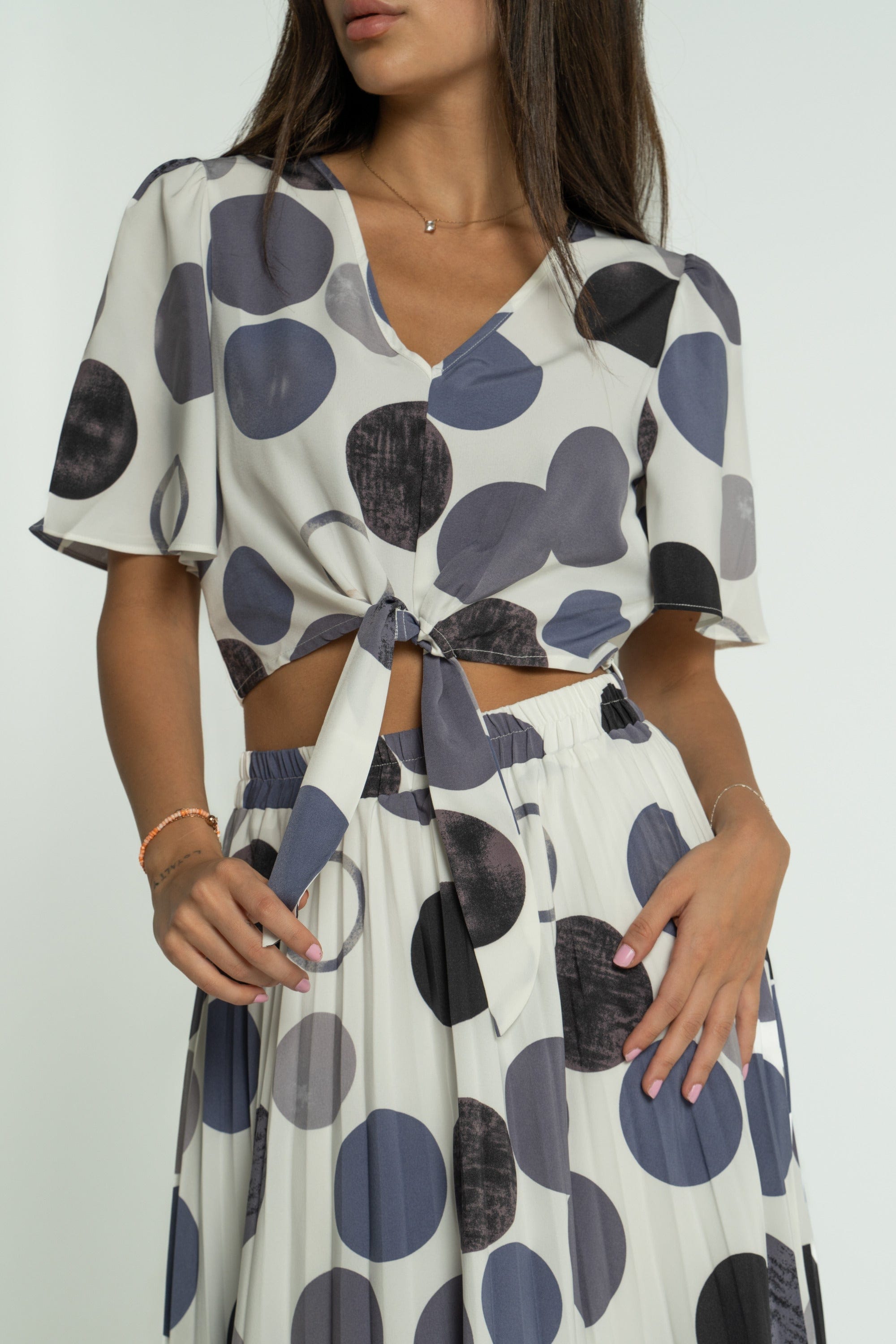 When style meets comfort, you get the perfect addition to your wardrobe. The Mica Short Polka Dot Blouse with Short Sleeves is designed to bring a touch of fun to your everyday outfits. With its playful polka dot pattern, this blouse adds a cheerful vibe to any ensemble, whether you're heading to the office or enjoying a casual day out. Made from soft, breathable fabric, it promises comfort without compromising on style. Pair it with jeans or a skirt for a chic look that stands out. Don’t wait—order yours today through Fashion Saudi and brighten up your collection! Product Number: ml0316st23q309
