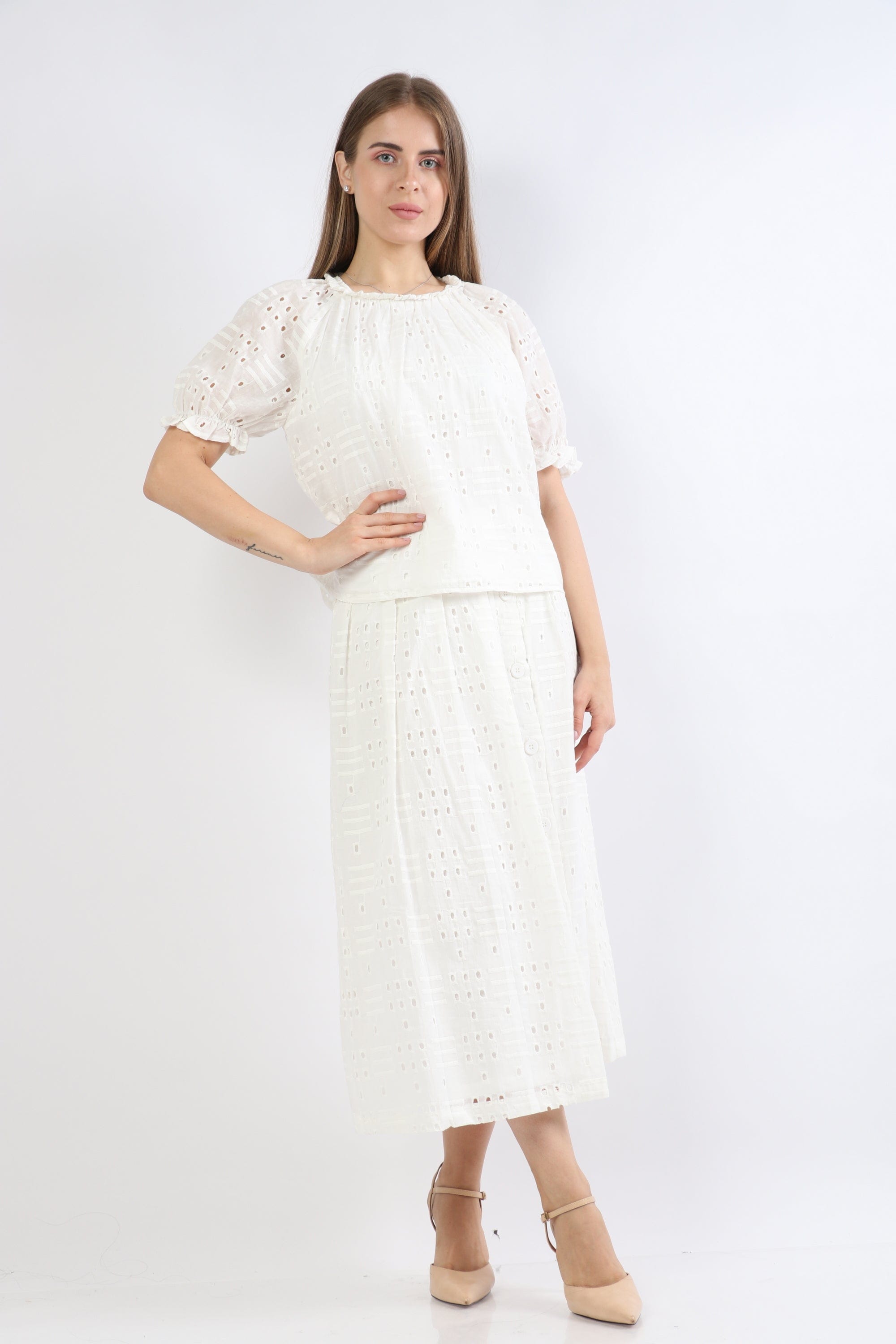 Imam in the splendor of fashion with a lace lace lined text. Nichii. This blouse is characterized by its attractive and feminine design, as it features short sleeves of lined and blown lace. It is available in wonderful and light -green colors to suit your high taste and add a touch of beauty and elegance to your look. Get now on a lace lace lined. Nichii Enjoy elegance and comfort at the same time. Ask her now from Saudi Fashion and I am the focus of everyone's attention. Product number: S8111-21Q206