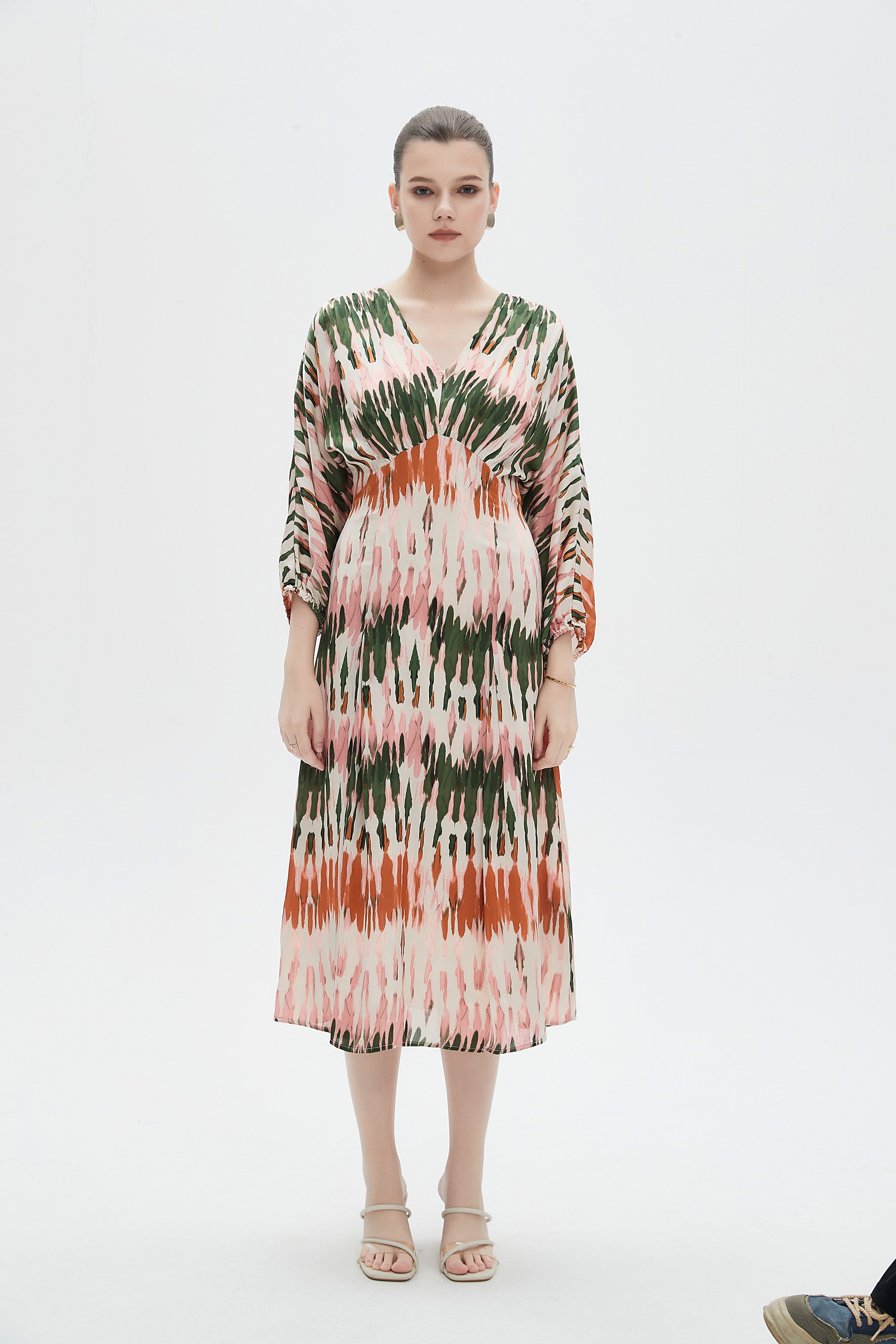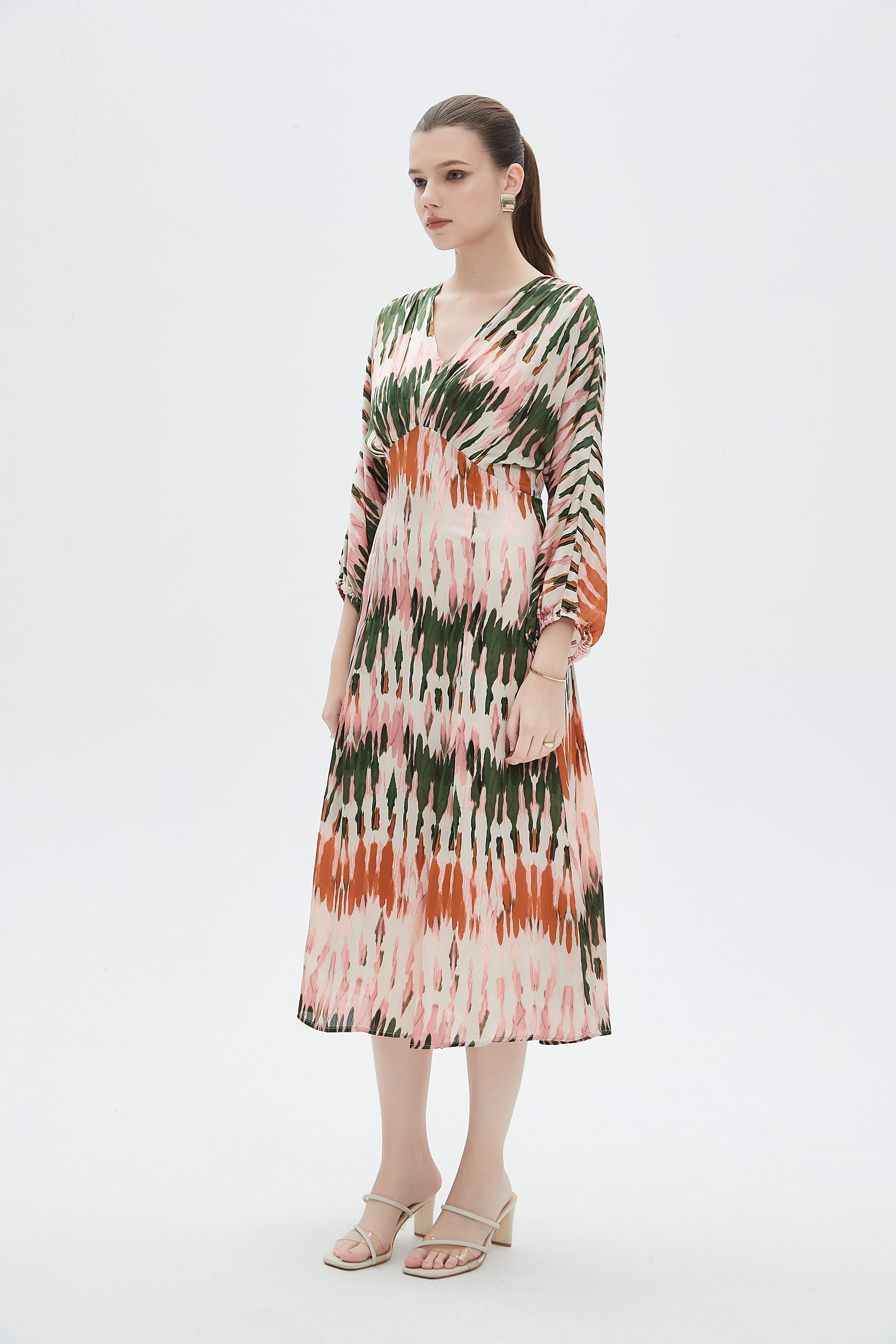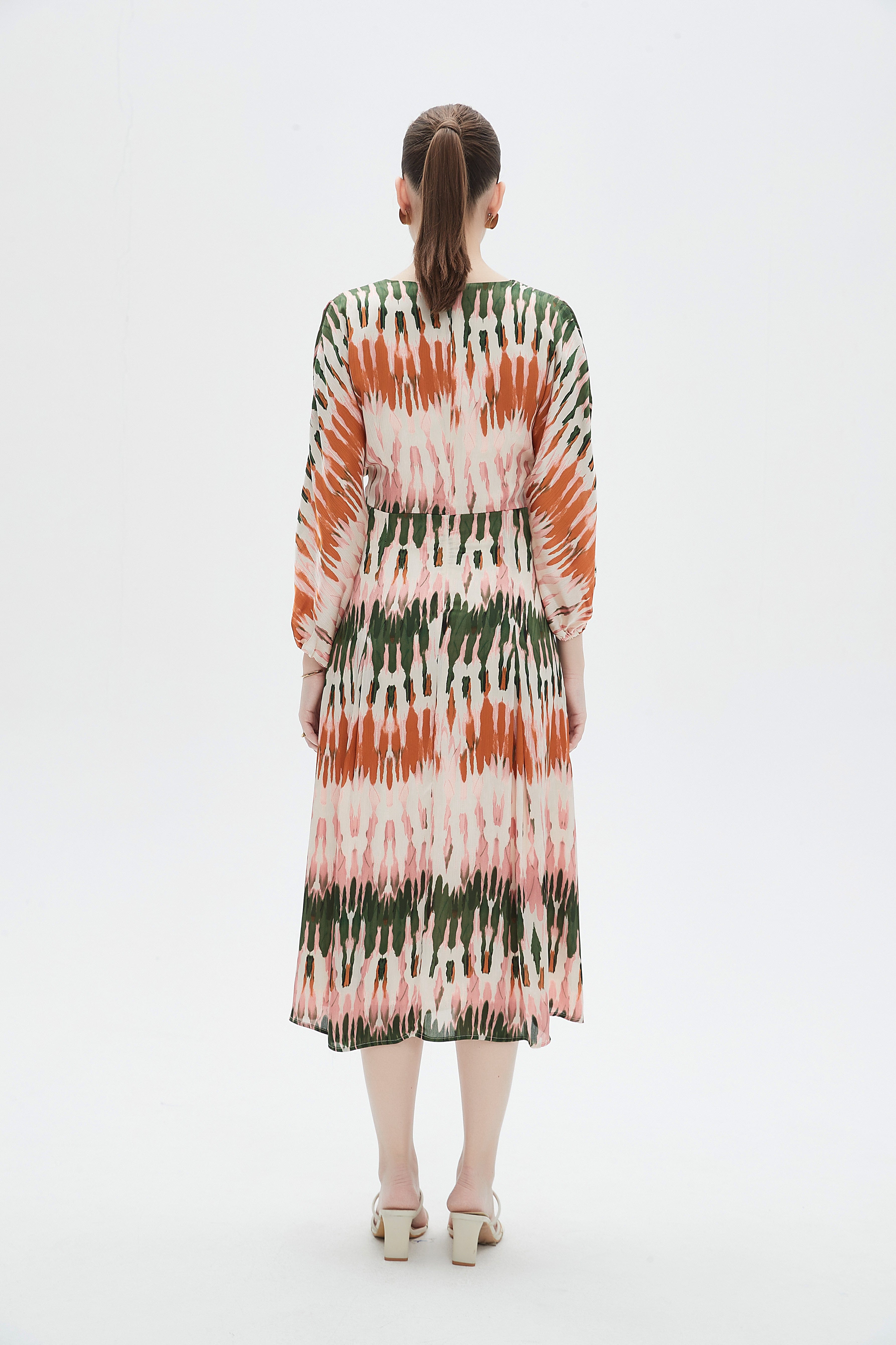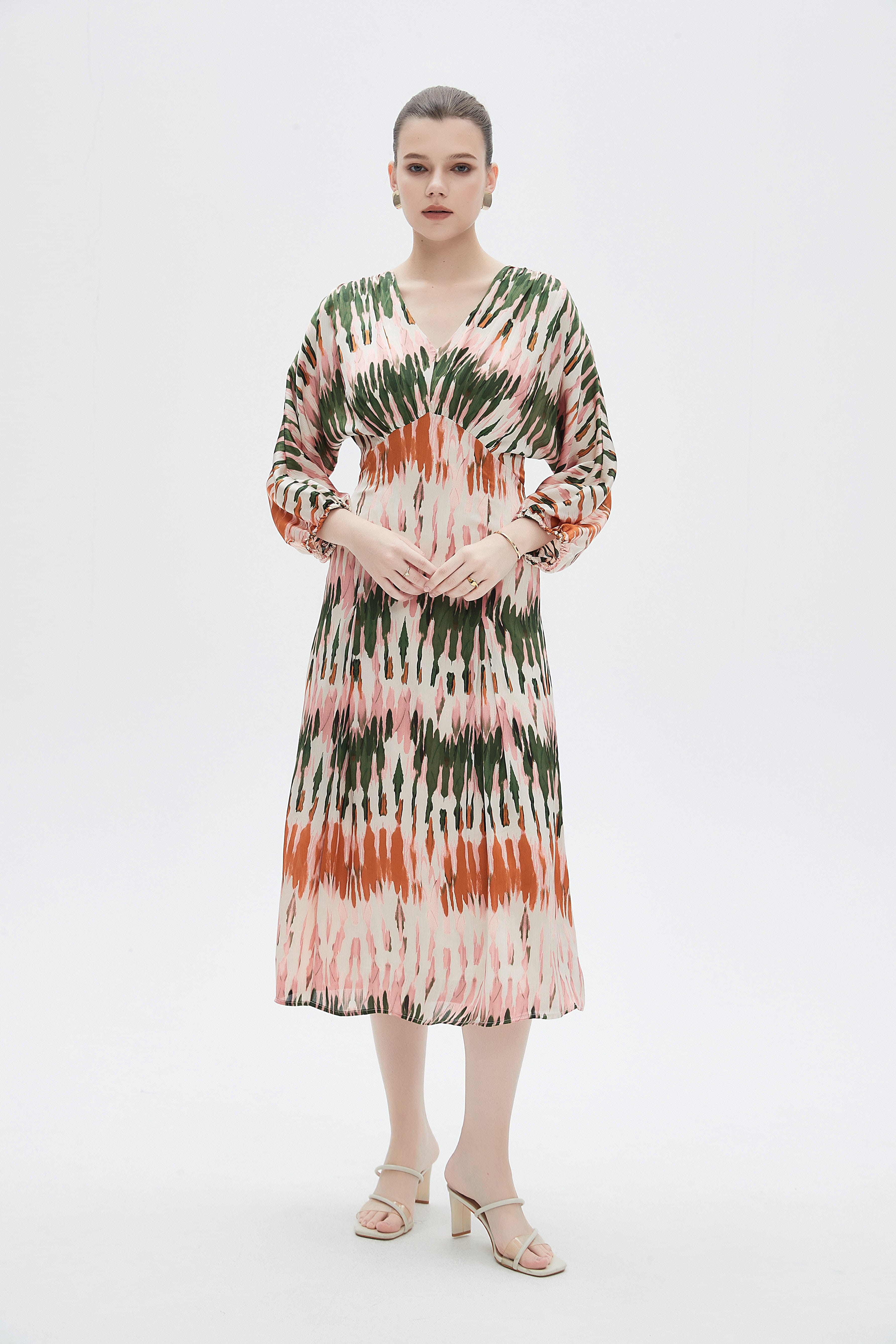 Turn heads in this multicolor patterned midi long-sleeve dress — a chic, fashion-forward option that balances comfort with statement style. The A-line silhouette skims the waist and flares gently for a universally flattering regular fit, while the V-neck adds a touch of feminine elongation. Crafted from 100% polyester with an unlined construction, the medium-weight fabric delivers a smooth drape that’s wrinkle-resistant and easy to wear across seasons. Long sleeves provide practical coverage and effortless polish for casual days, weekend brunches or city strolls. With a pocketless, beltless finish the clean lines invite personal styling — add a belt or layer with outerwear as needed. Shop this versatile piece at Fashion SA and update your wardrobe with a go-to midi that moves seamlessly from day to evening. Click to make it yours today.
