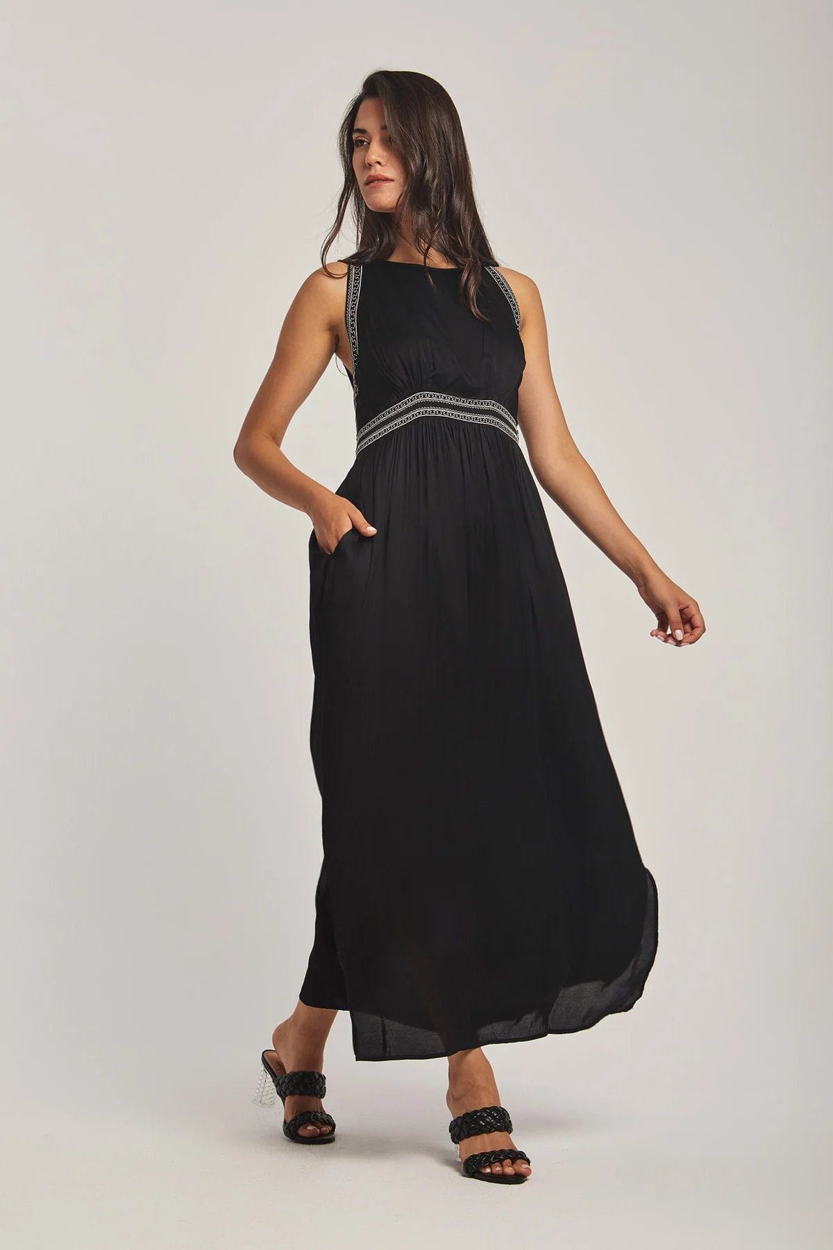 Embroidered Sleeveless Maxi Dress