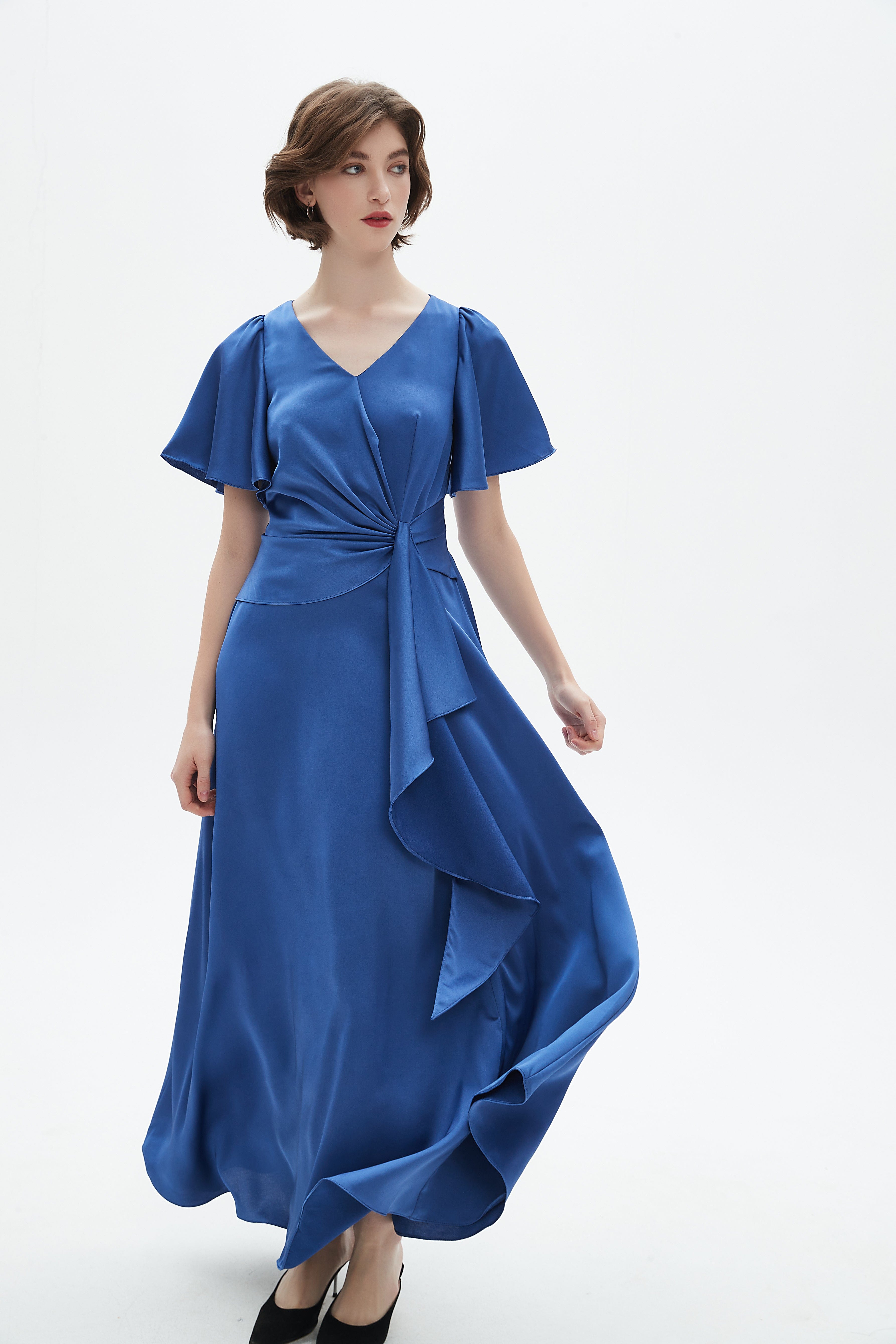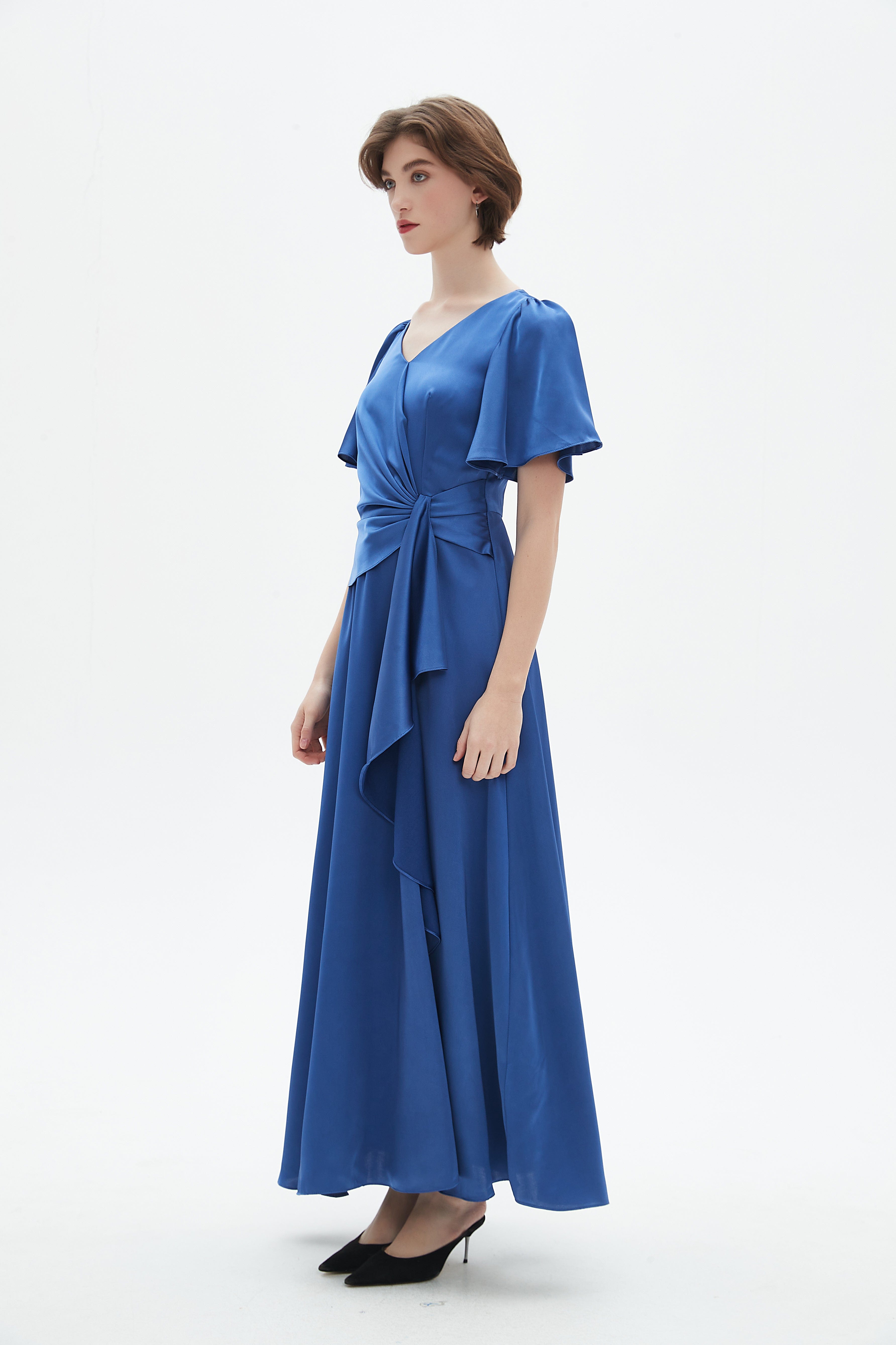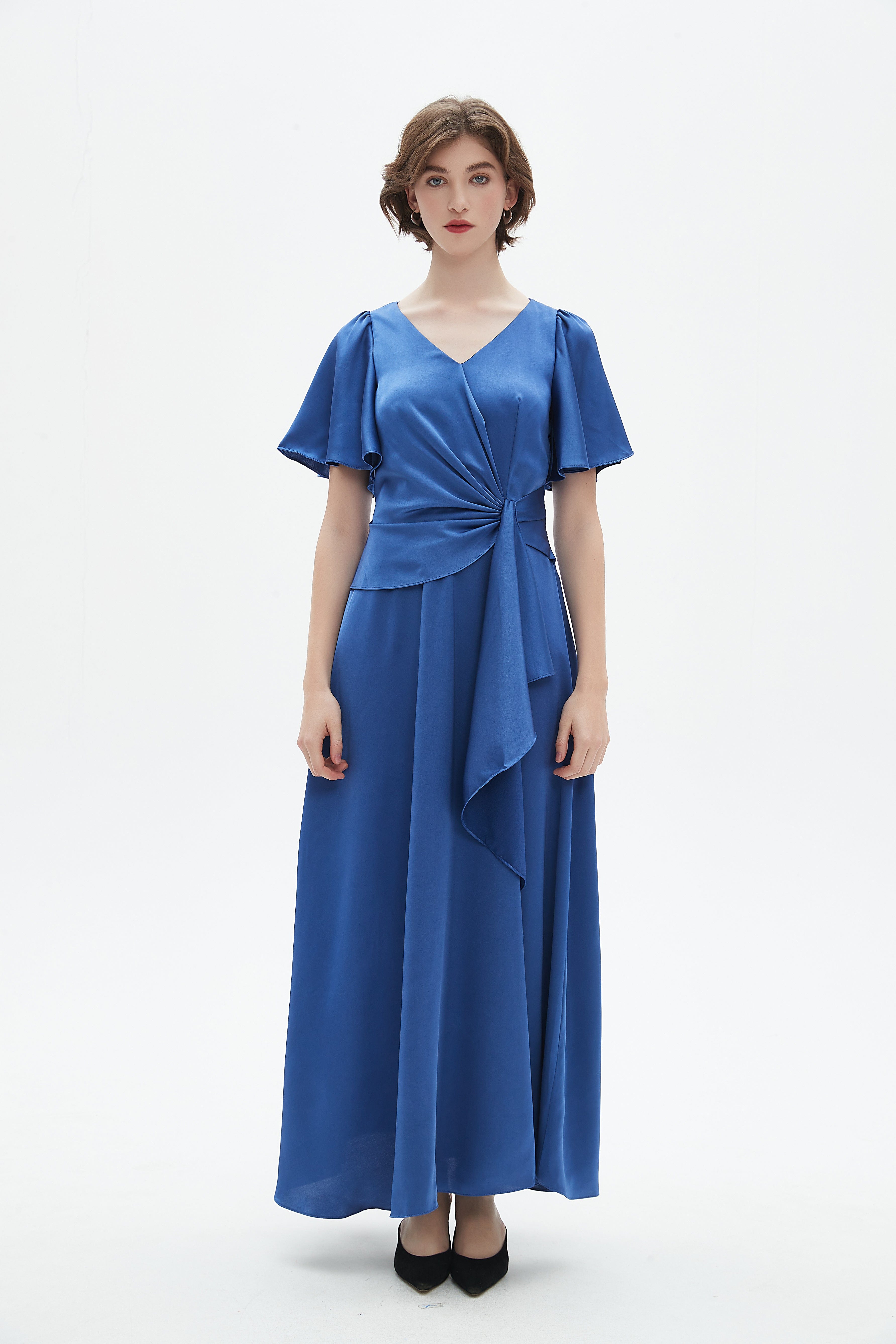 - Elegant maxi length for graceful movement and formal styling