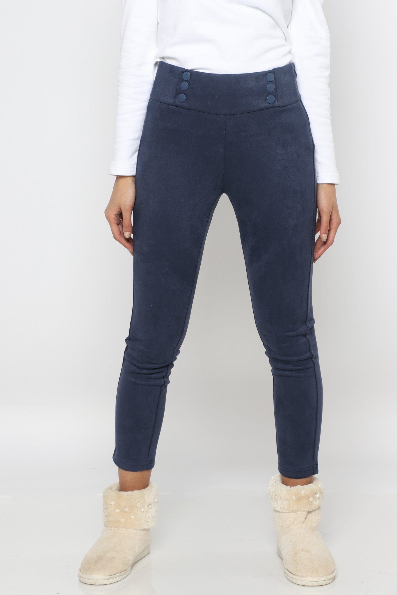 Solid Button-Front Leggings