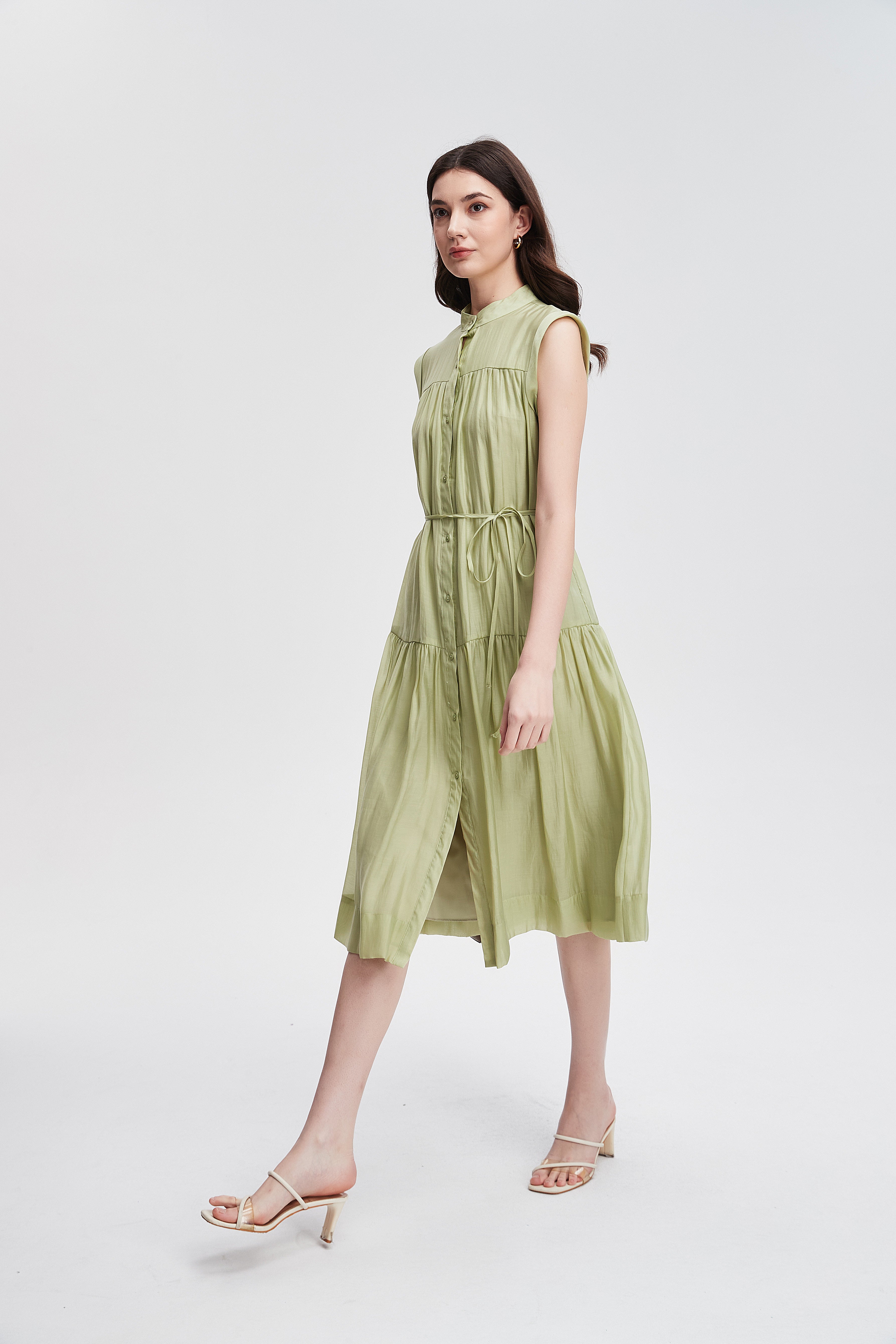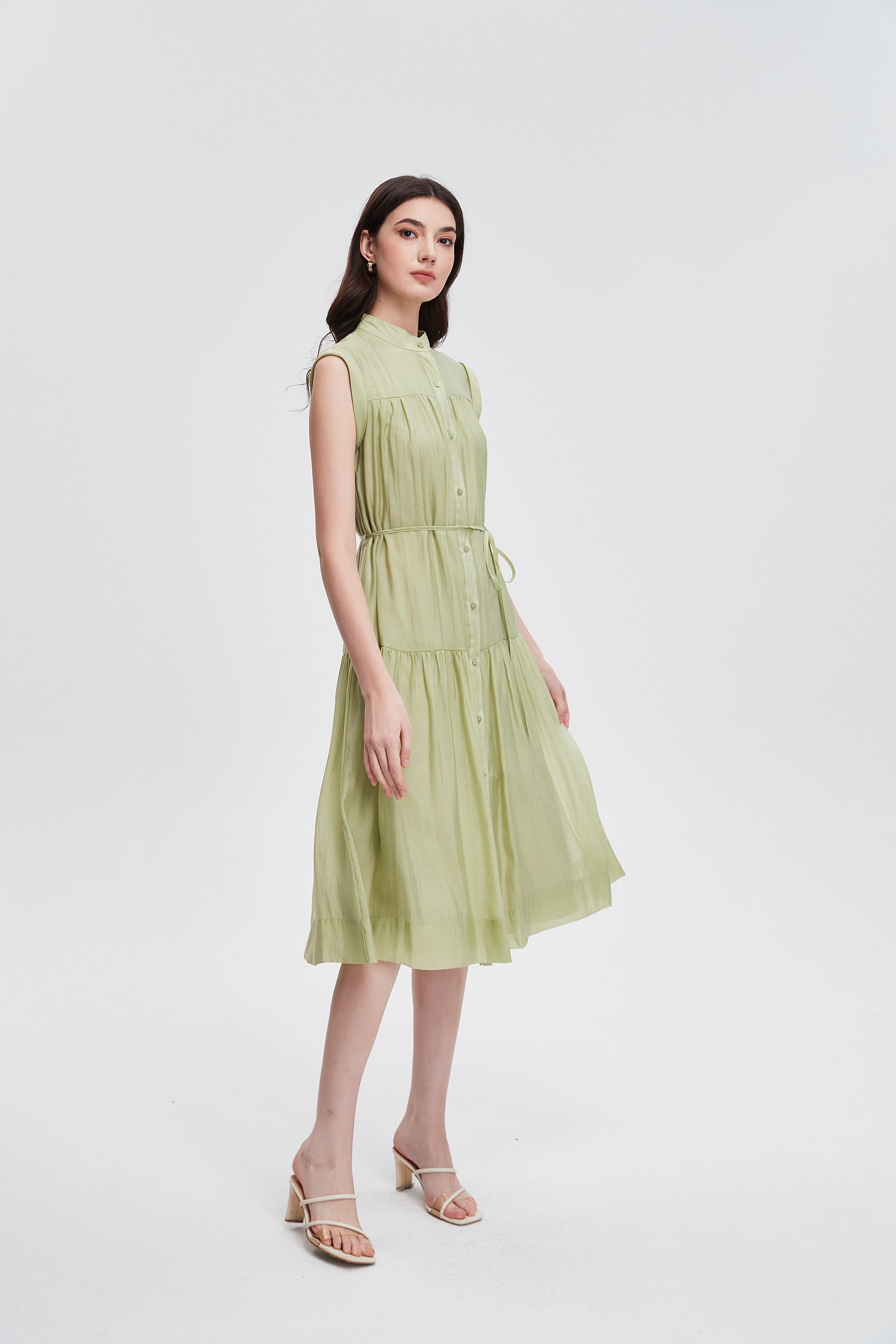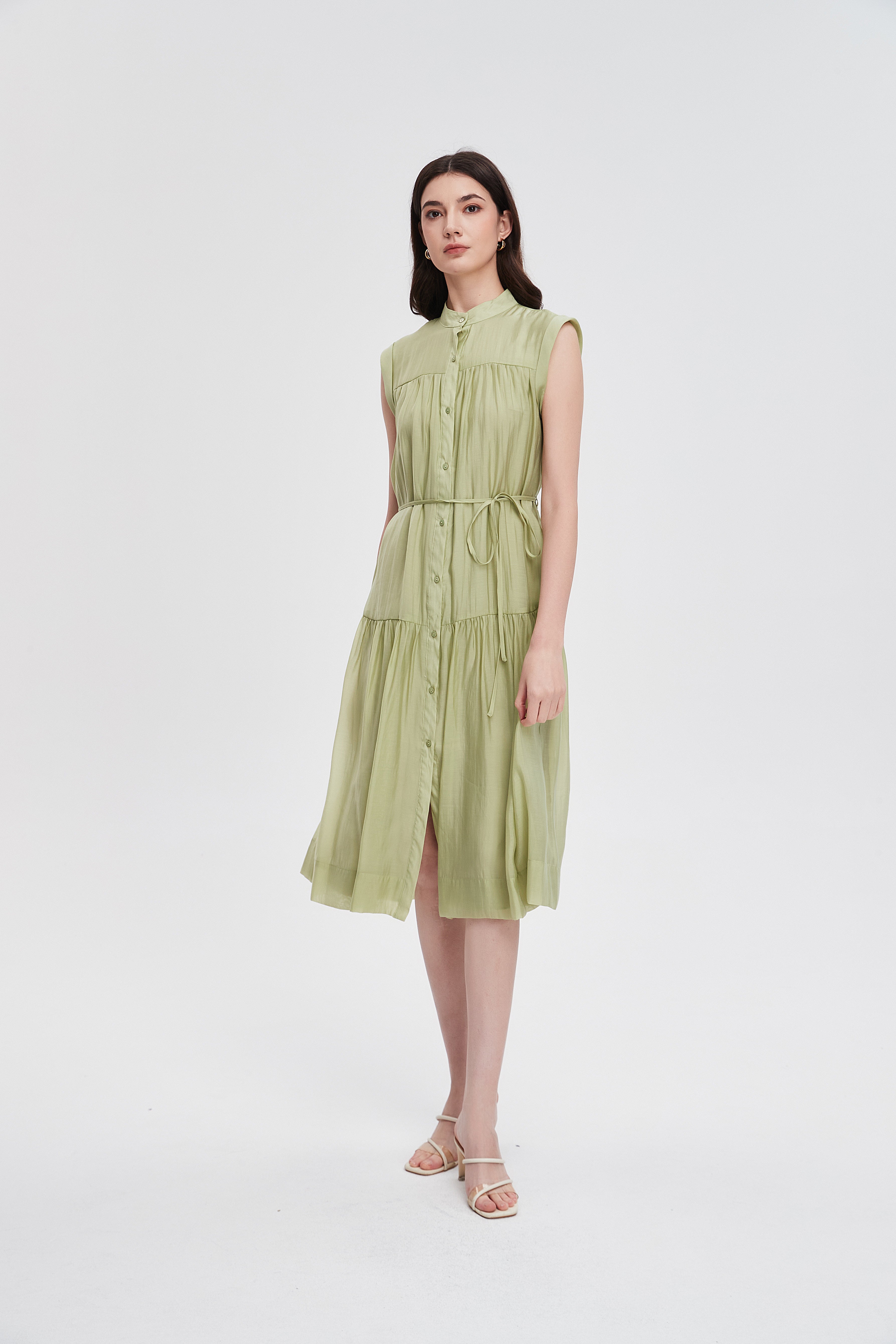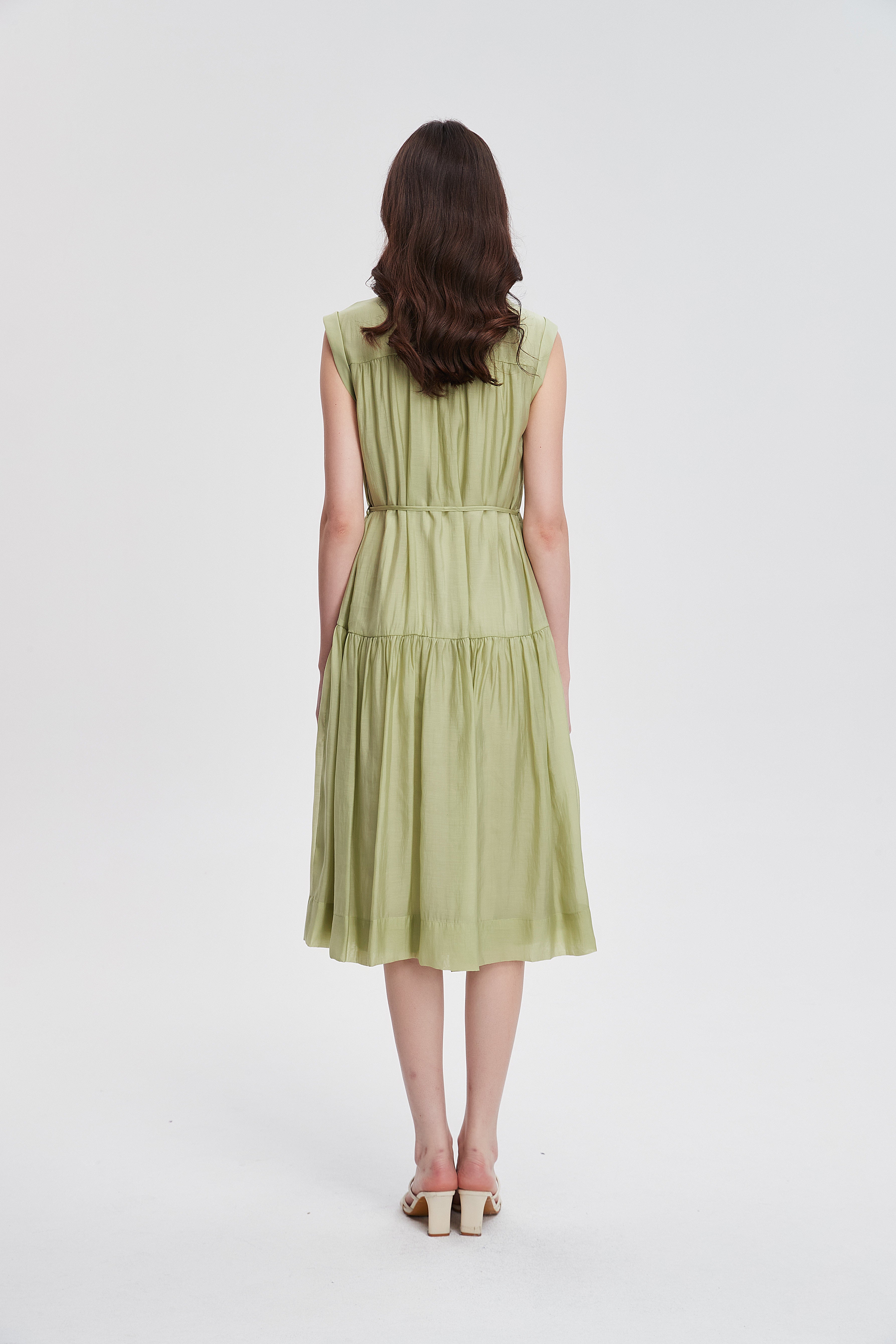 formal sleeveless fitted midi dress