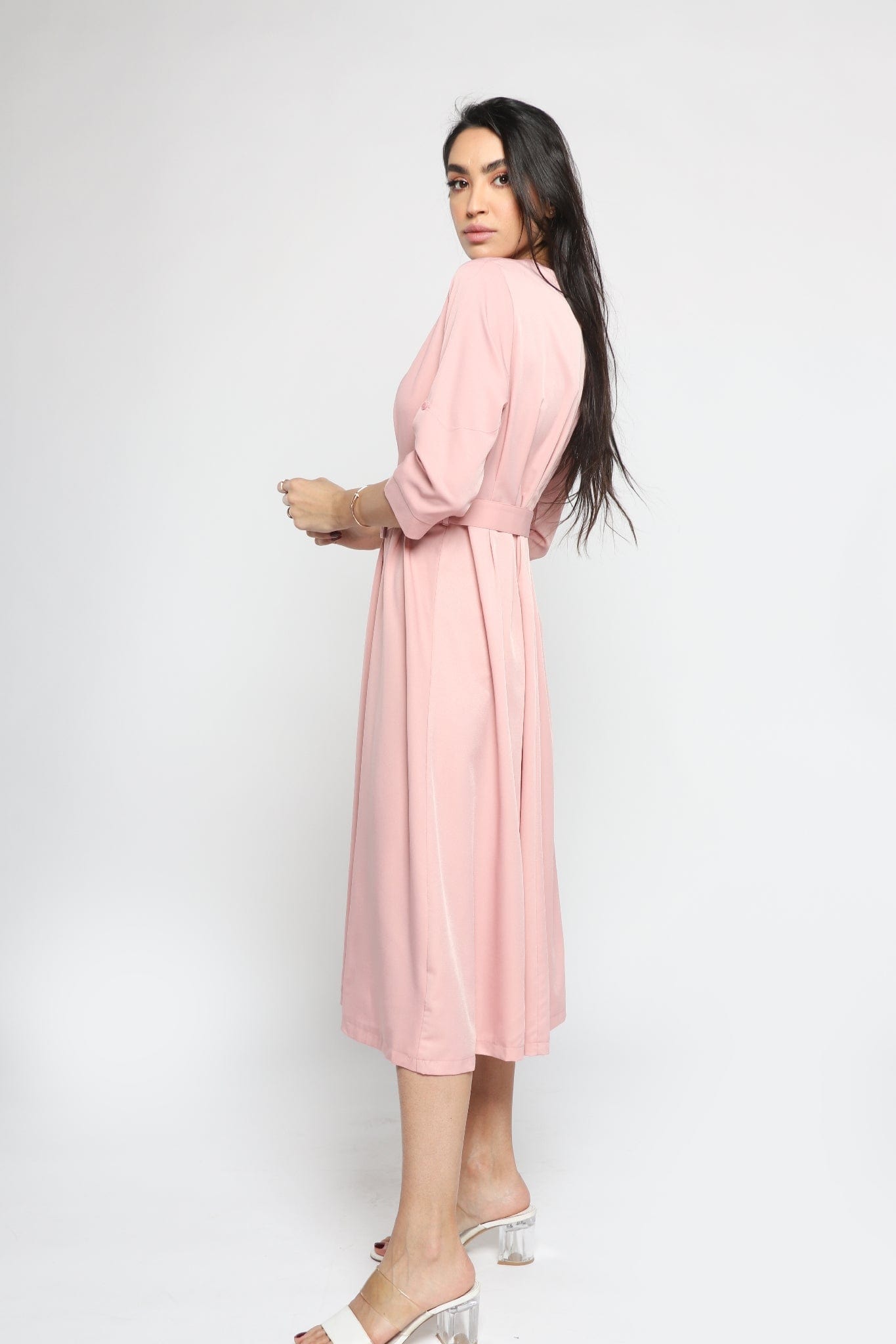 Midi Polyester Evening Dress with Belt