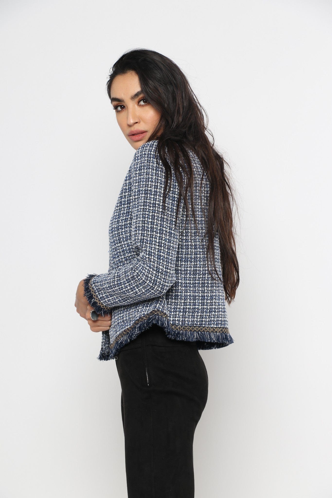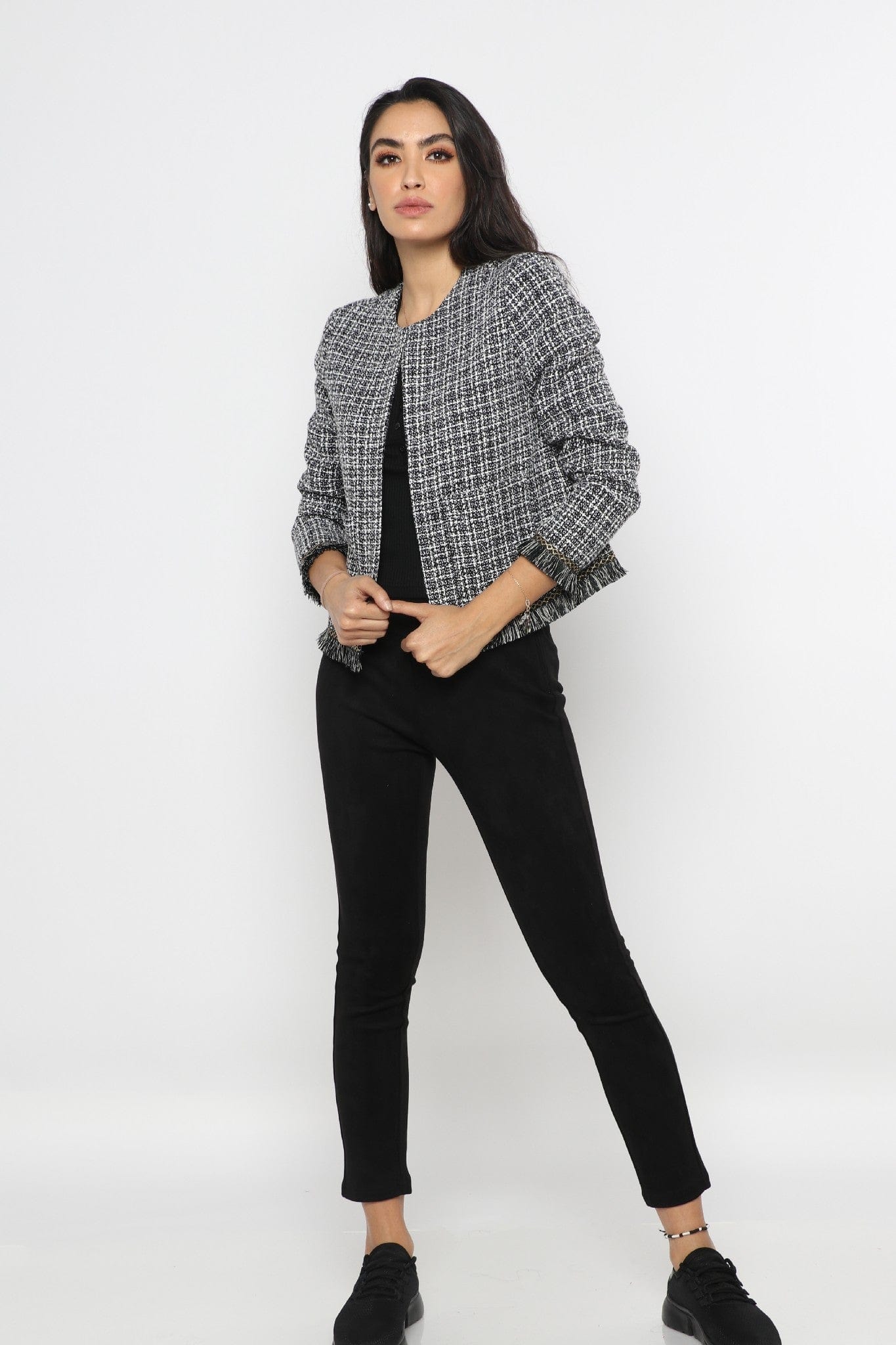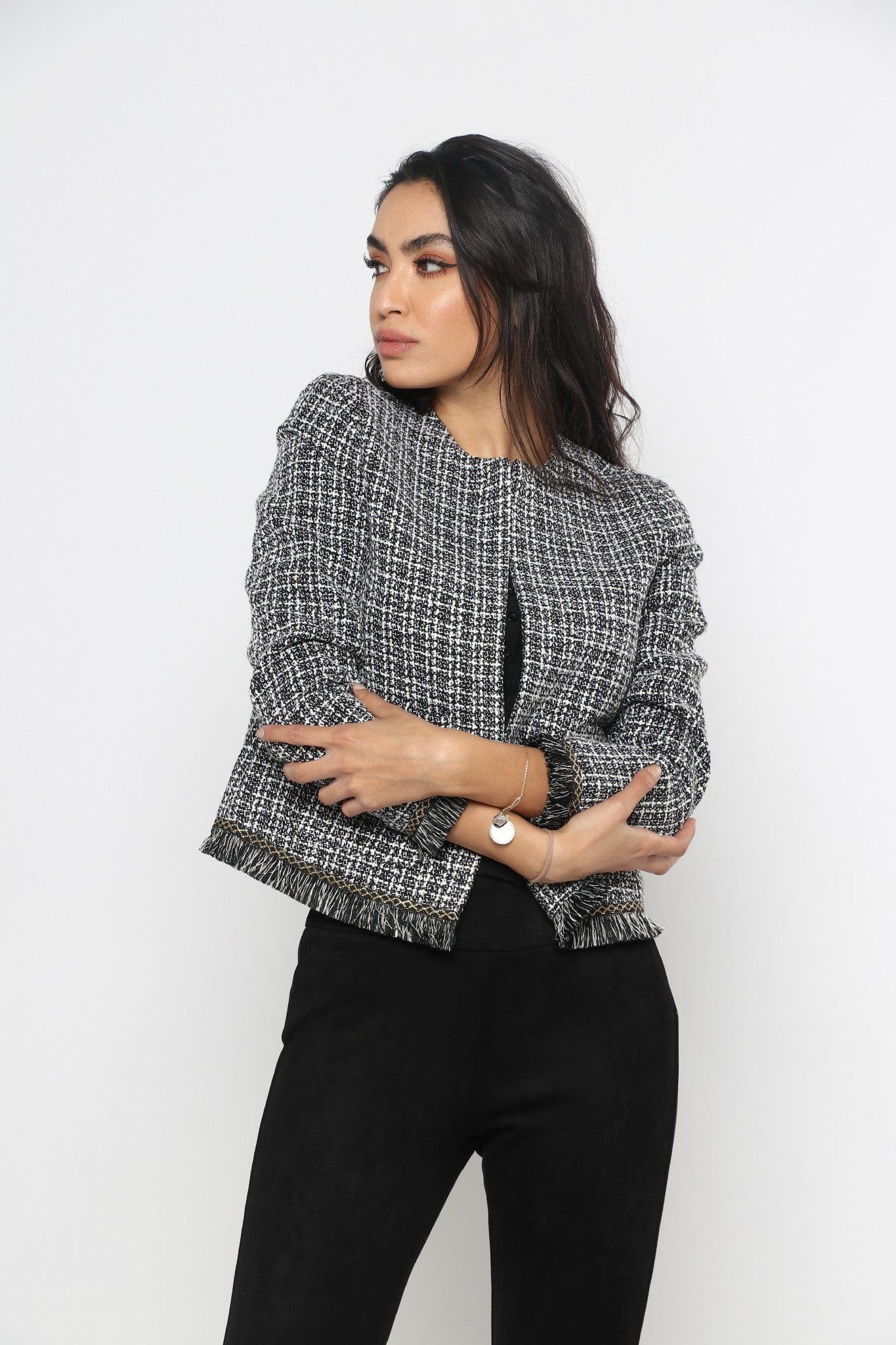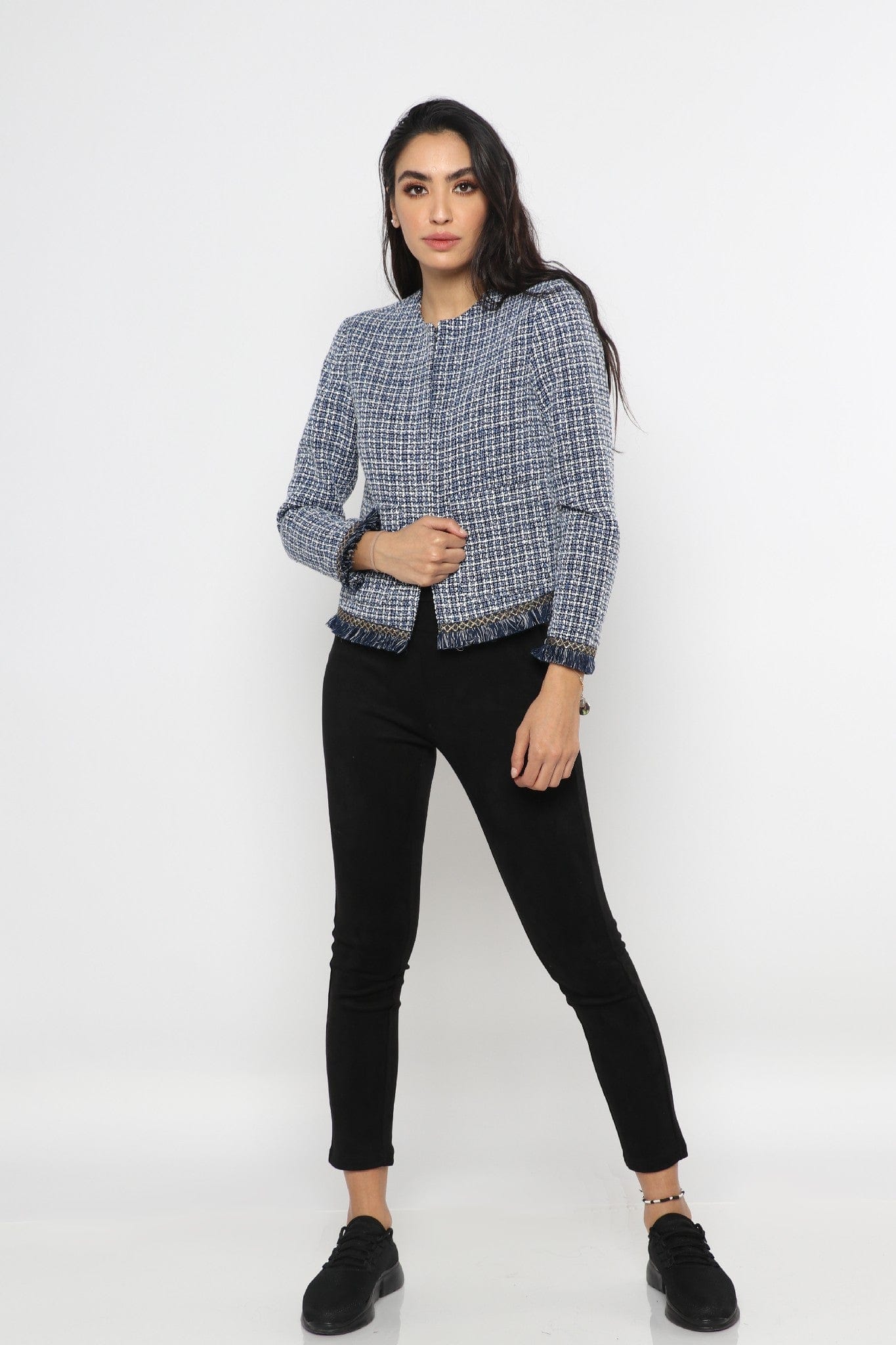 Take back to shine with a short classic jacket with threads from the bottom of a long time for women Mica. This jacket is available in two elegant two colors: black and dark blue. This piece is designed with great elegance, as it features a short story and long sleeves with droppings from the bottom of the quantity. These micro -jacket details make perfect for official occasions and daily looks. This jacket is designed with high -quality fabrics to ensure comfort and warmth throughout the day. Now get a short classic jacket with threads from the bottom of a long time for women Mica Glow your own style. Ask now and enjoy the most beautiful fashion from Fashion Saudi Arabia. Product number: mwz000420Q402