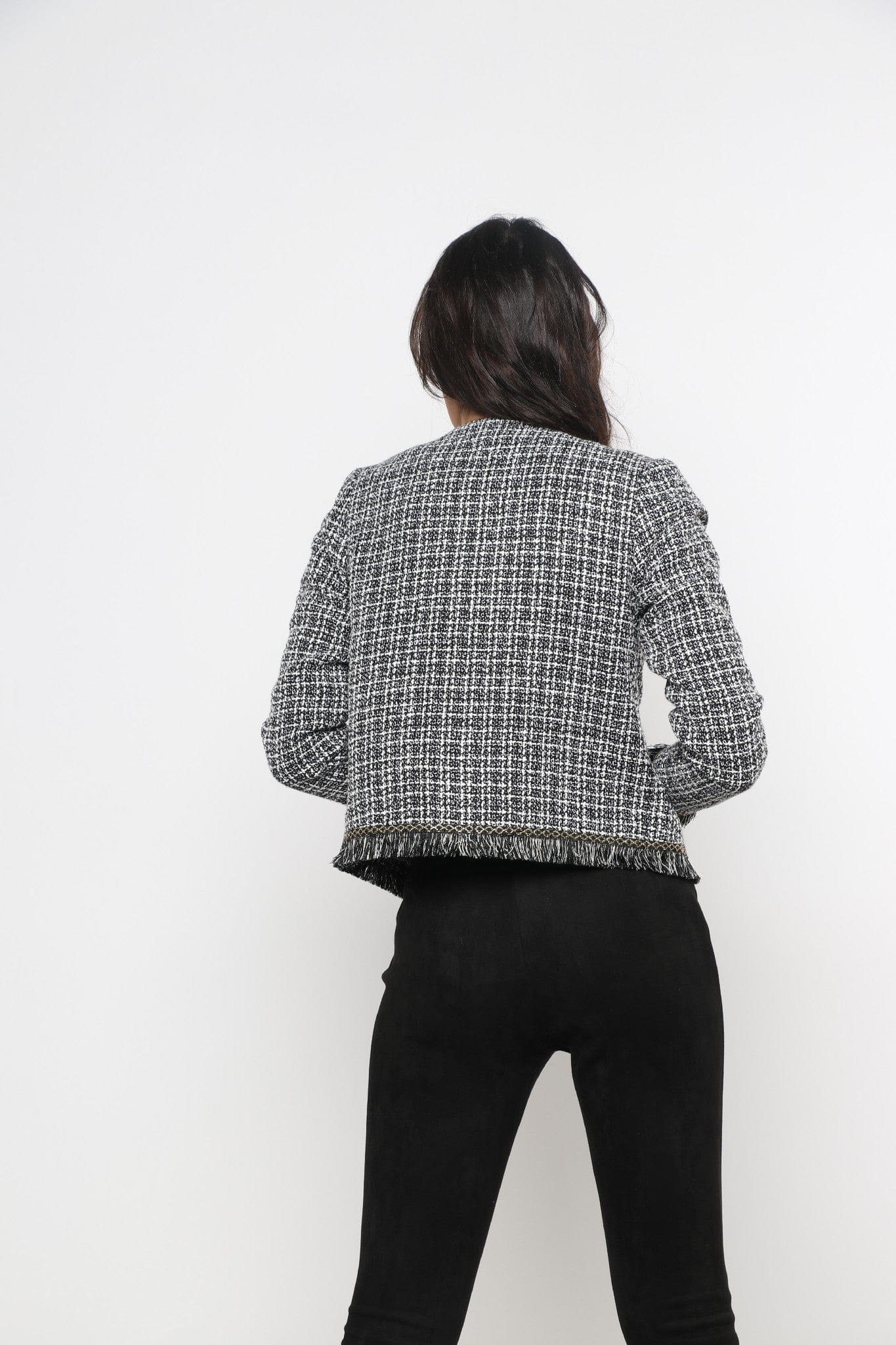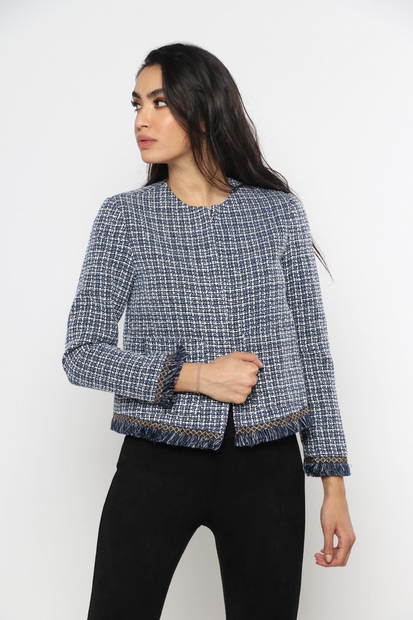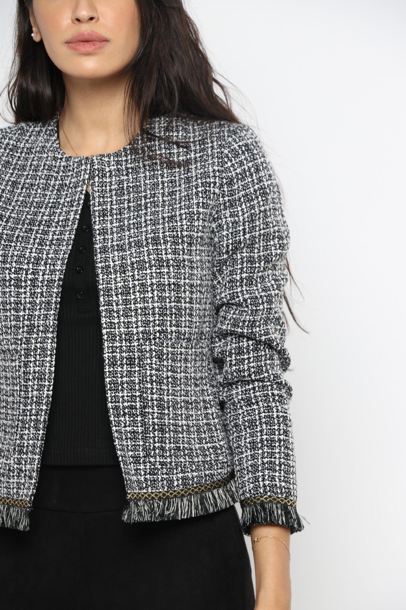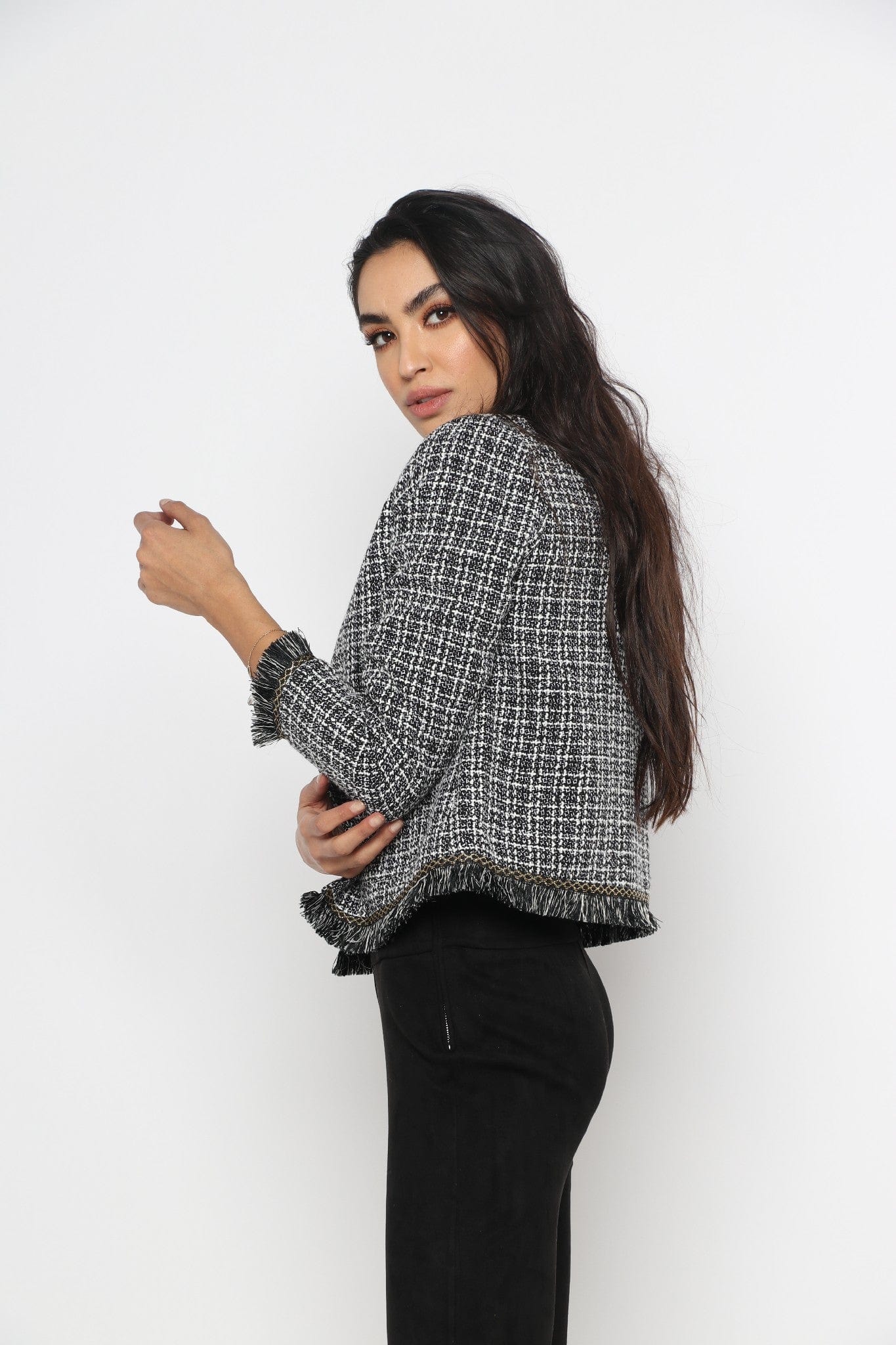 Take back to shine with a short classic jacket with threads from the bottom of a long time for women Mica. This jacket is available in two elegant two colors: black and dark blue. This piece is designed with great elegance, as it features a short story and long sleeves with droppings from the bottom of the quantity. These micro -jacket details make perfect for official occasions and daily looks. This jacket is designed with high -quality fabrics to ensure comfort and warmth throughout the day. Now get a short classic jacket with threads from the bottom of a long time for women Mica Glow your own style. Ask now and enjoy the most beautiful fashion from Fashion Saudi Arabia. Product number: mwz000420Q402