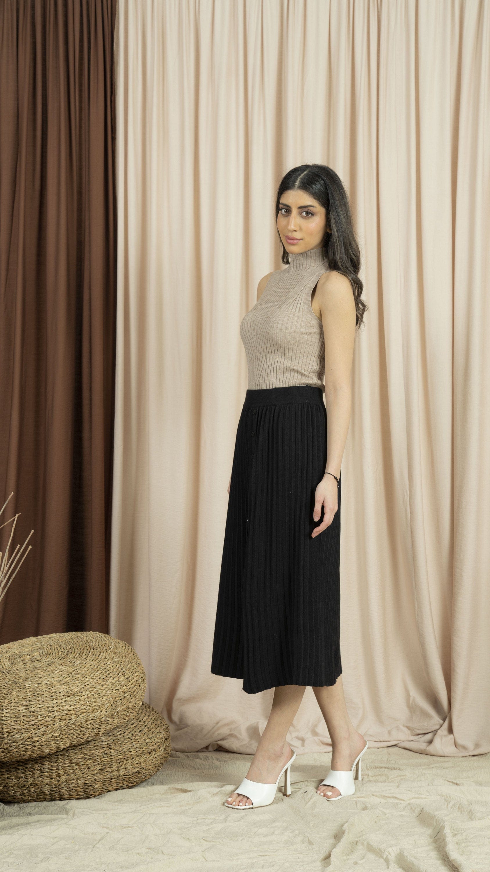 Discover elegance and comfort with a summer women's blouse without sleeves with a neck text from the Saudi Fashion. This blouse is characterized by its modern design and beautiful colors, such as black and brown, which makes it ideal for the summer season. Its light material allows you to enjoy the fresh air, while its elegant shape gives a touch of elegance to your look. You can easily coordinate it with skirts or jeans for a distinctive look. Do not miss the opportunity, get this wonderful summer blouse from Saudi Fashion and always be at the top of your elegance. Ask now! Product number: fy10022q407