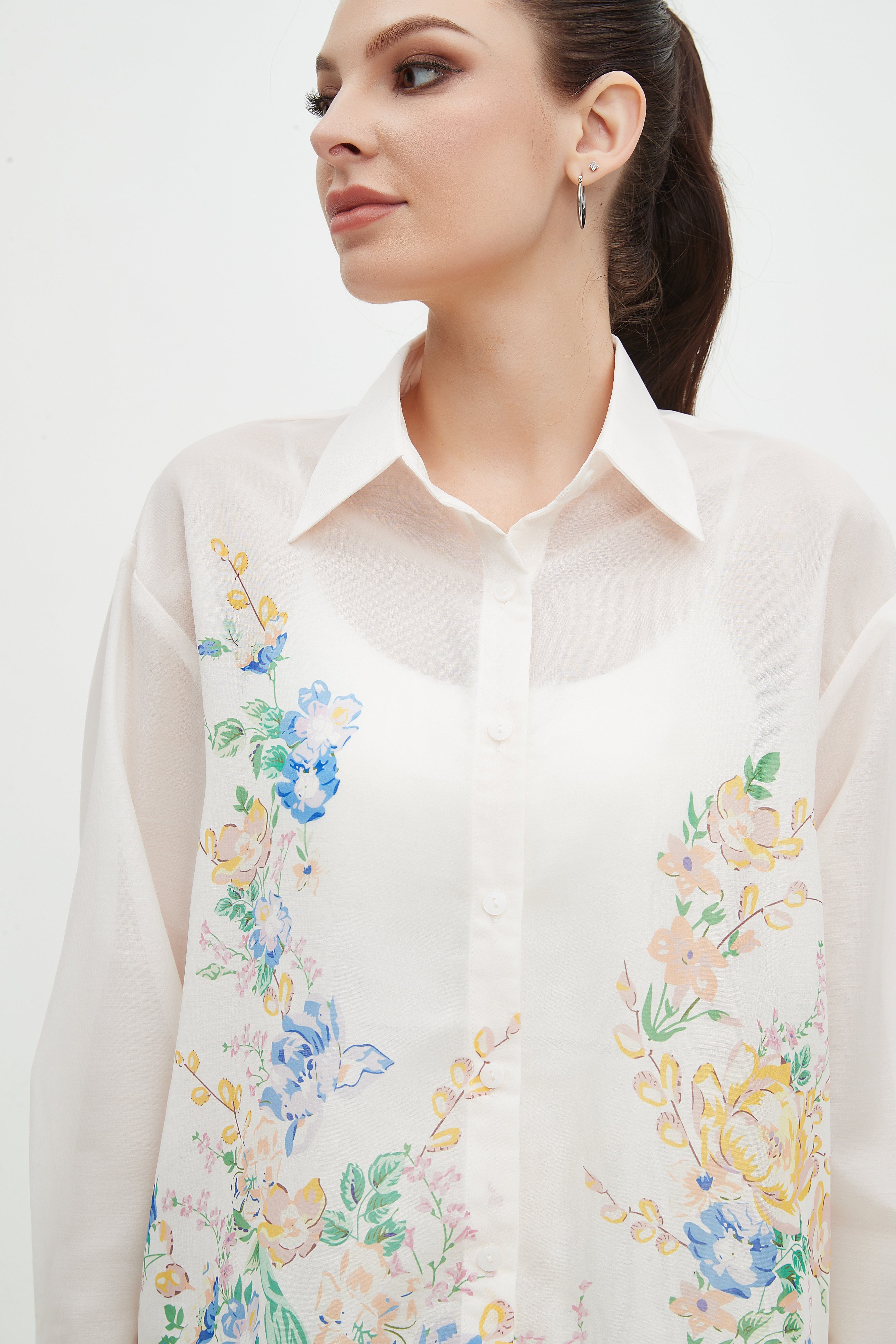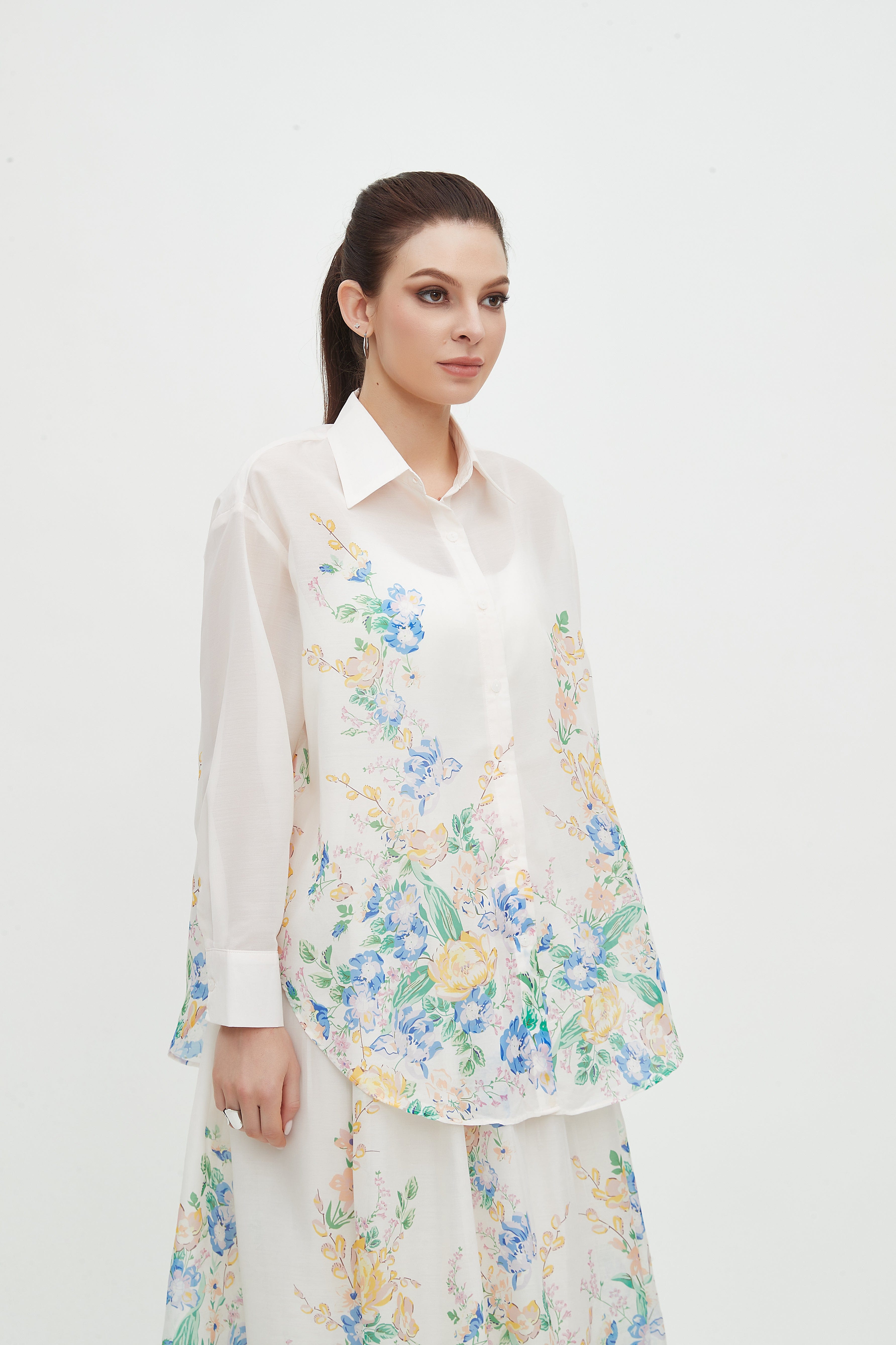 Floral Shirt Collar Long Sleeve Top