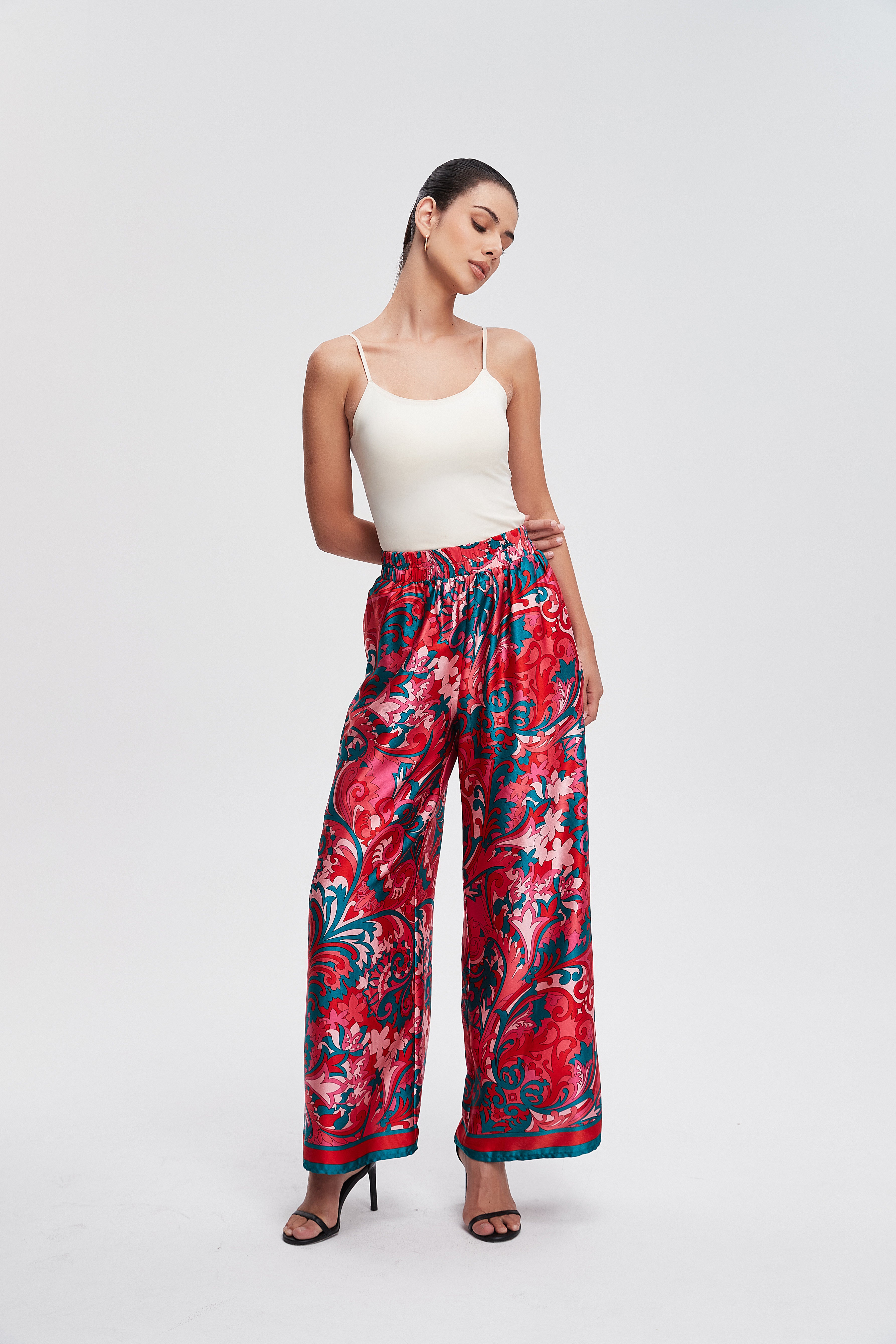 Elastic Waist Printed Long Pants