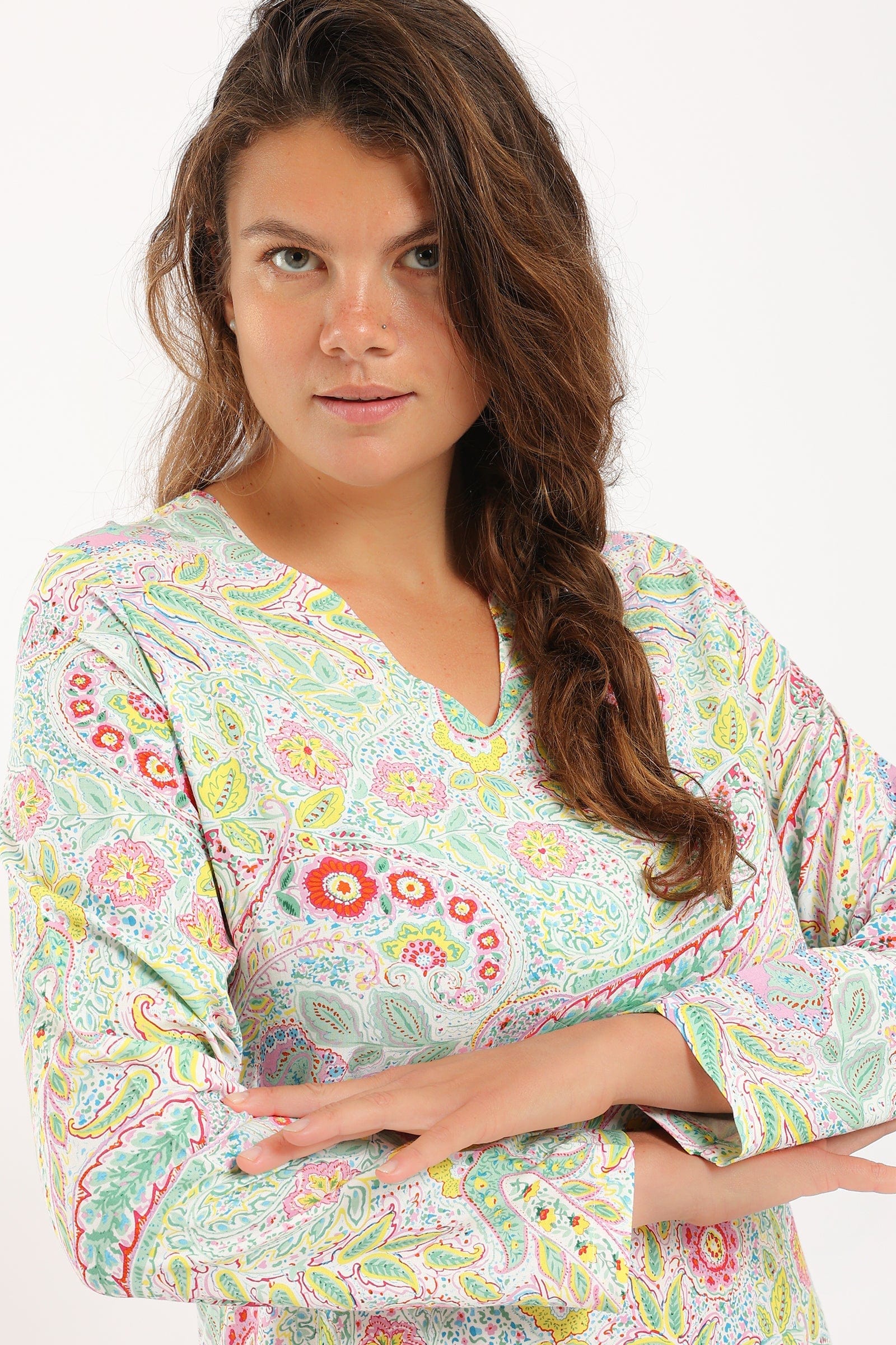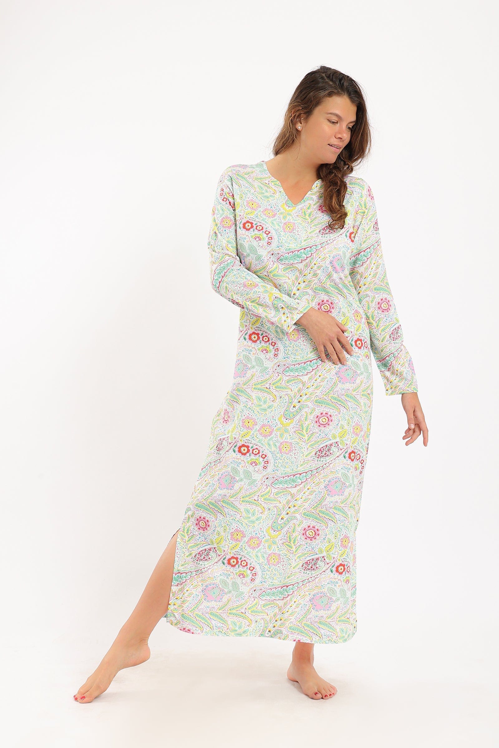 Enjoy comfort and style with the Carina Multicoloured Printed Nightgown. This distinctive design comes with colorful prints that add attractiveness and elegance to your look. Available in a variety of colors for you to choose from to suit your unique taste. It features a soft and comfortable fabric for all-night comfort. Now get Carina's multi-coloured printed nightgown and get ready to relax and shine in every moment. Order it now through Fashion Saudi Arabia and enjoy the most beautiful products. Introducing the Carina Multi-Colored Printed Nightgown, a stunning addition to your sleepwear collection. This nightgown is designed with a vibrant and eye-catching print, featuring a variety of colors that will brighten up your evenings. Made with comfort in mind, it offers a relaxed fit and soft fabric that will keep you cozy all night long. Whether you're lounging or getting ready for bed, this nightgown is the perfect choice. Add a touch of style and elegance to your nighttime routine with the Carina Multi-Colored Printed Nightgown. رقم المنتج: 54290