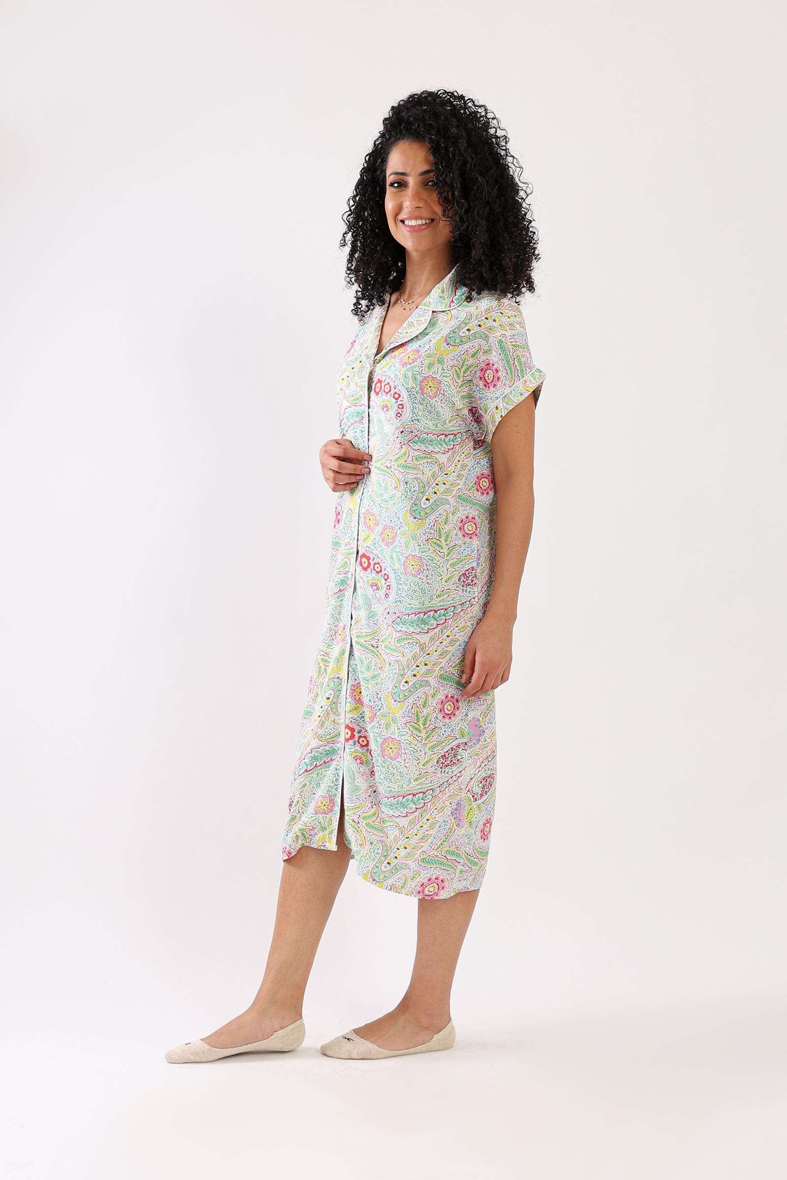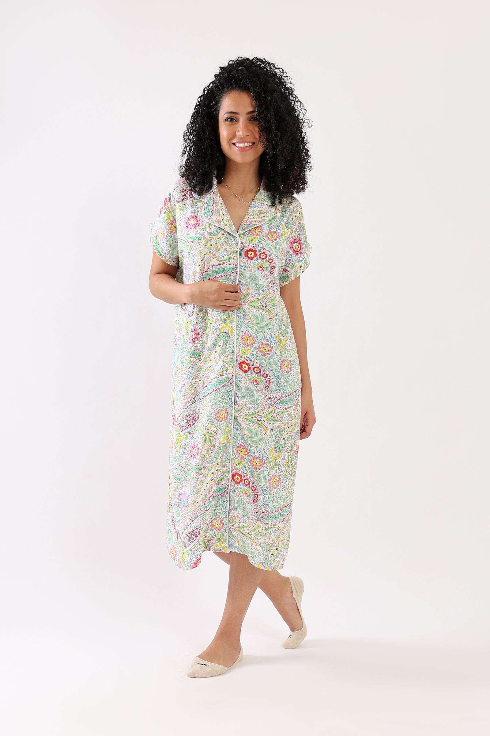 Get ready for comfortable and stylish nights with the Karina Long Button-Front Printed Nightgown. This stunning shirt is available with a beautiful colourful print that will add a touch of vibrancy to your look. It stands out for its long and relaxed cut that provides you with comfort all night long. You can wear it at home or while you sleep for a beautiful yet comfortable look. Now get the Karina Button-Front Printed Long Nightgown and get ready for quiet and stylish nights. Order it now through Fashion Saudi Arabia and enjoy comfort and style at the same time. Introducing the long printed button-front nightgown from Carina. This stylish and comfortable nightwear is perfect for women who want to feel both fashionable and relaxed. With its vibrant colors and trendy design, this nightgown adds a touch of excitement to your bedtime routine. The button-front detail adds a classic touch, while the long length provides extra coverage and warmth. Choose from a variety of colorful prints to suit your personal style. Don't miss out on this must-have addition to your sleepwear collection. ุฑูู ุงูู ูุชุฌ: 54305