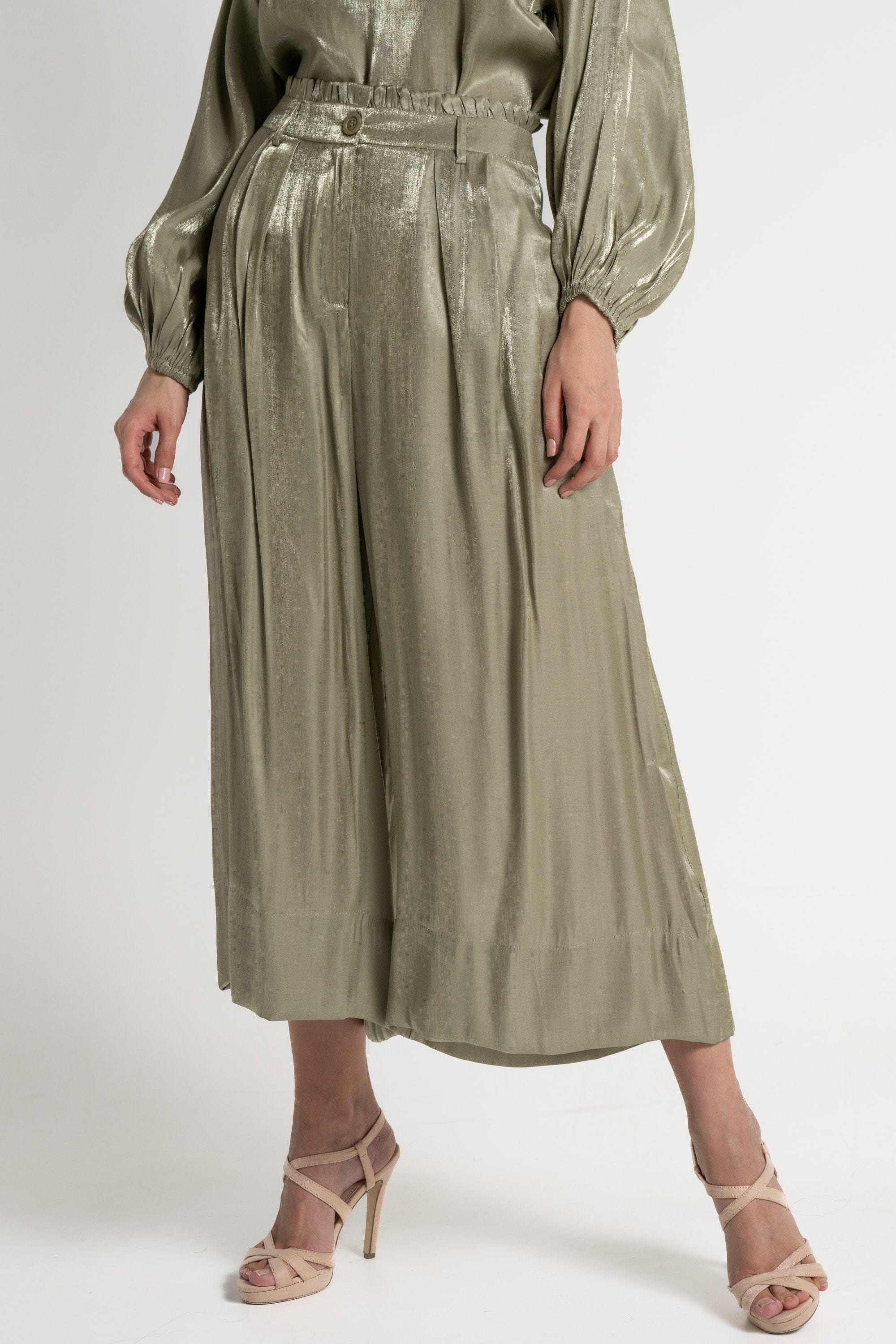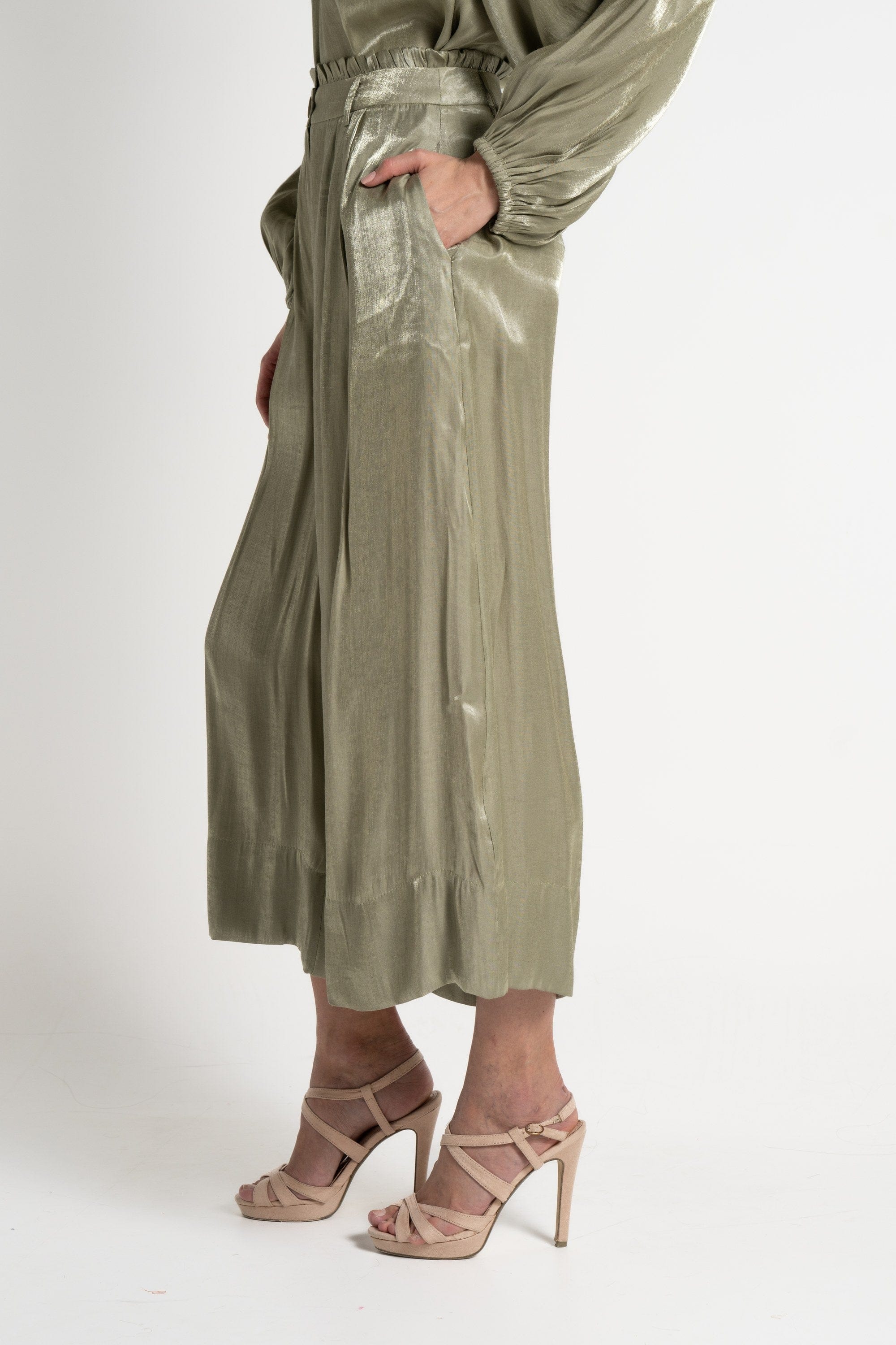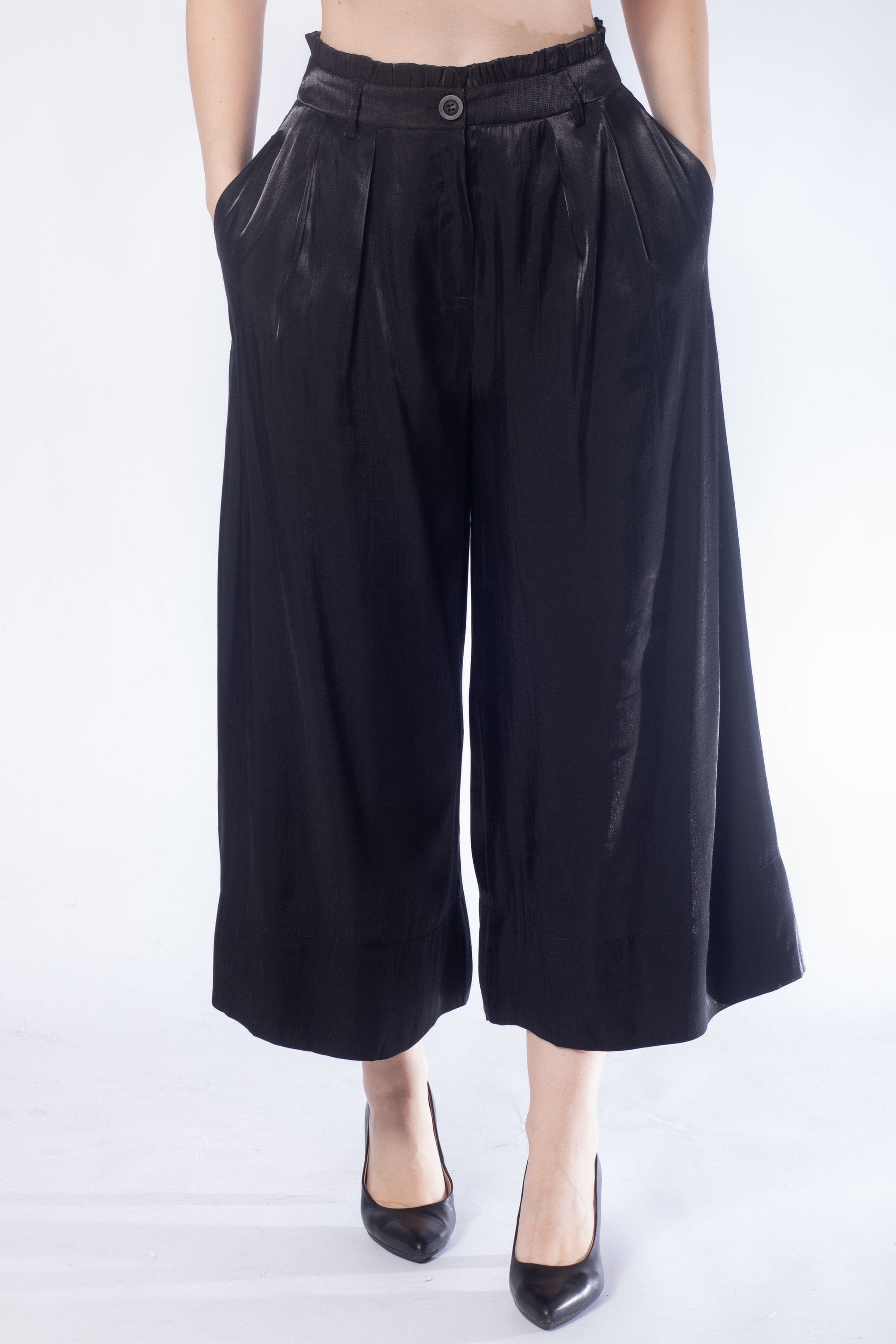 Transform your everyday look with Mica's Shiny High-Waisted 3/4 Trousers. Designed for those who appreciate a touch of elegance, these trousers feature a sleek, shiny finish that catches the light beautifully, making them perfect for both casual outings and stylish events. The high-waisted design flatters your silhouette, while the 3/4 length adds a modern twist. Pair them with a fitted top or a flowing blouse for a chic ensemble. Don't miss out on these must-have trousers—order your pair today through Fashion Saudi and redefine your style! Product Number: mlf0187st24q202
