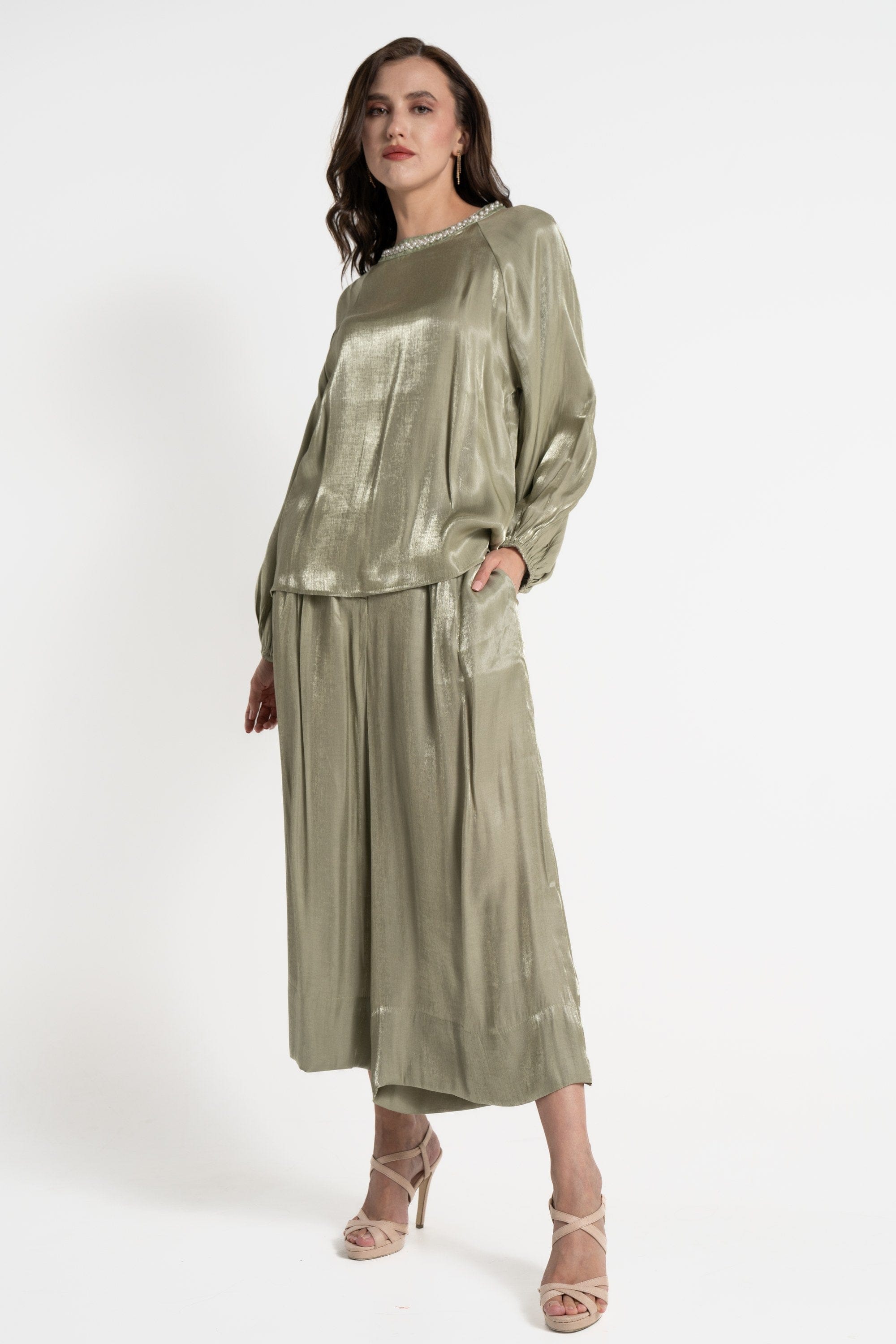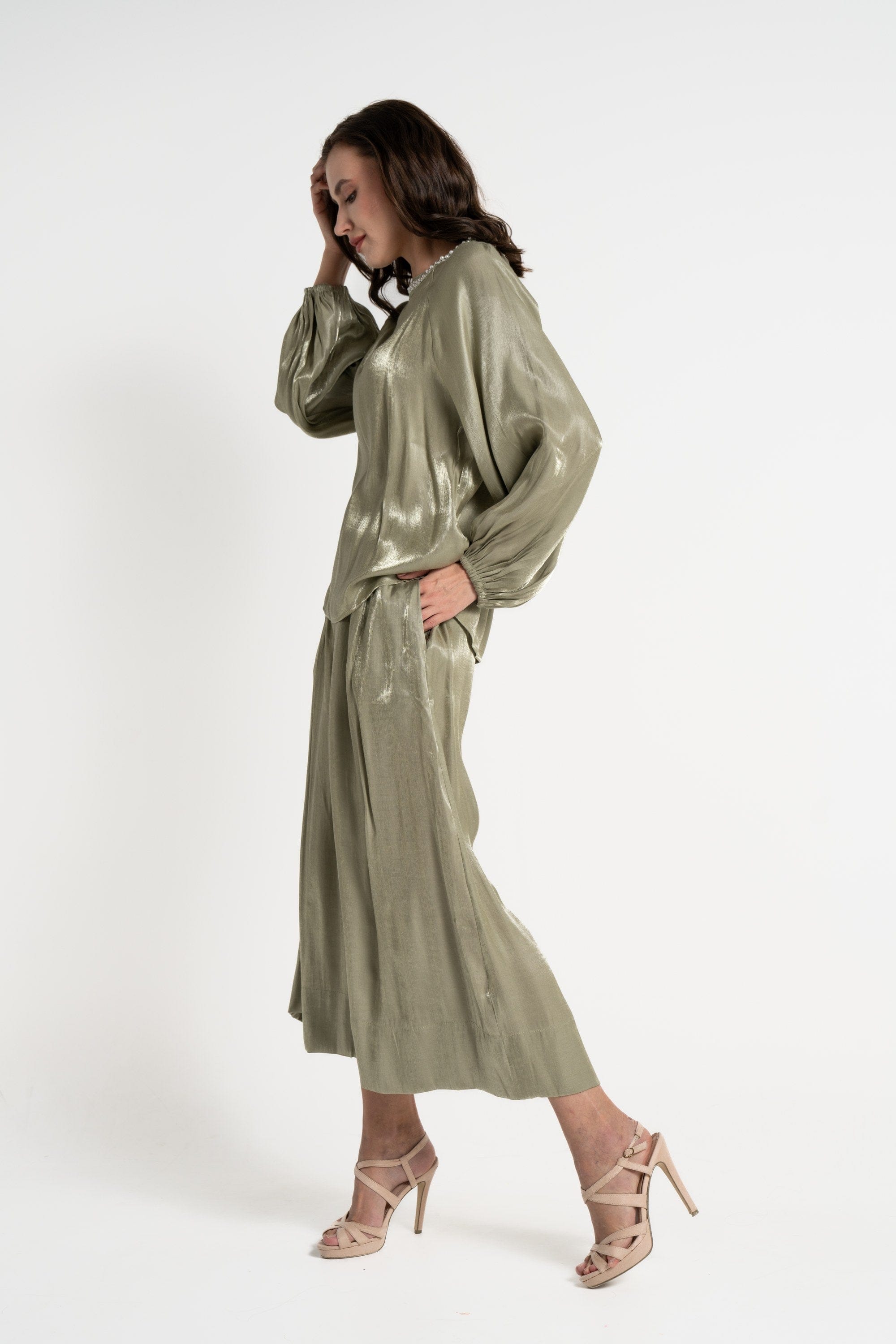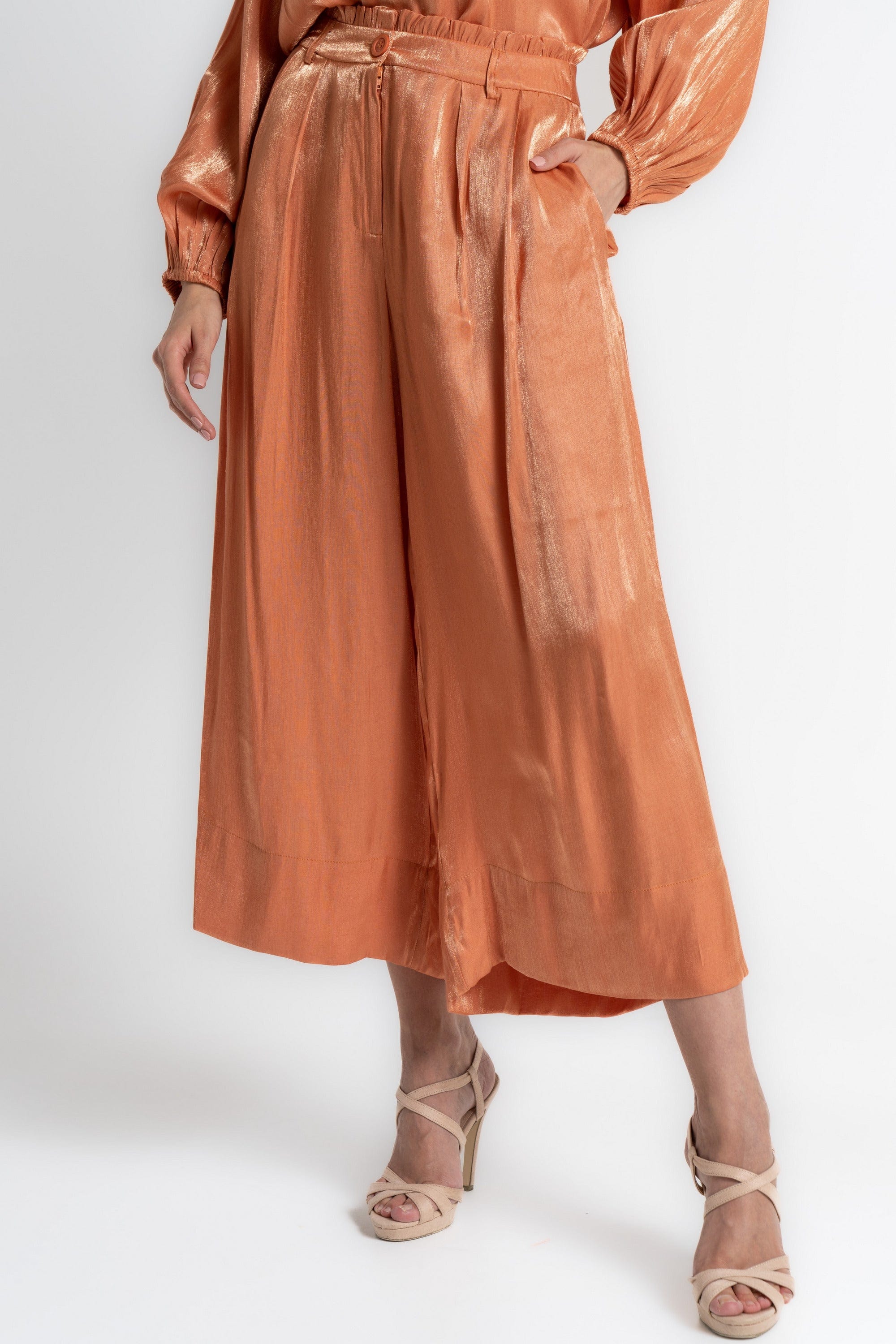 Transform your everyday look with Mica's Shiny High-Waisted 3/4 Trousers. Designed for those who appreciate a touch of elegance, these trousers feature a sleek, shiny finish that catches the light beautifully, making them perfect for both casual outings and stylish events. The high-waisted design flatters your silhouette, while the 3/4 length adds a modern twist. Pair them with a fitted top or a flowing blouse for a chic ensemble. Don't miss out on these must-have trousers—order your pair today through Fashion Saudi and redefine your style! Product Number: mlf0187st24q202
