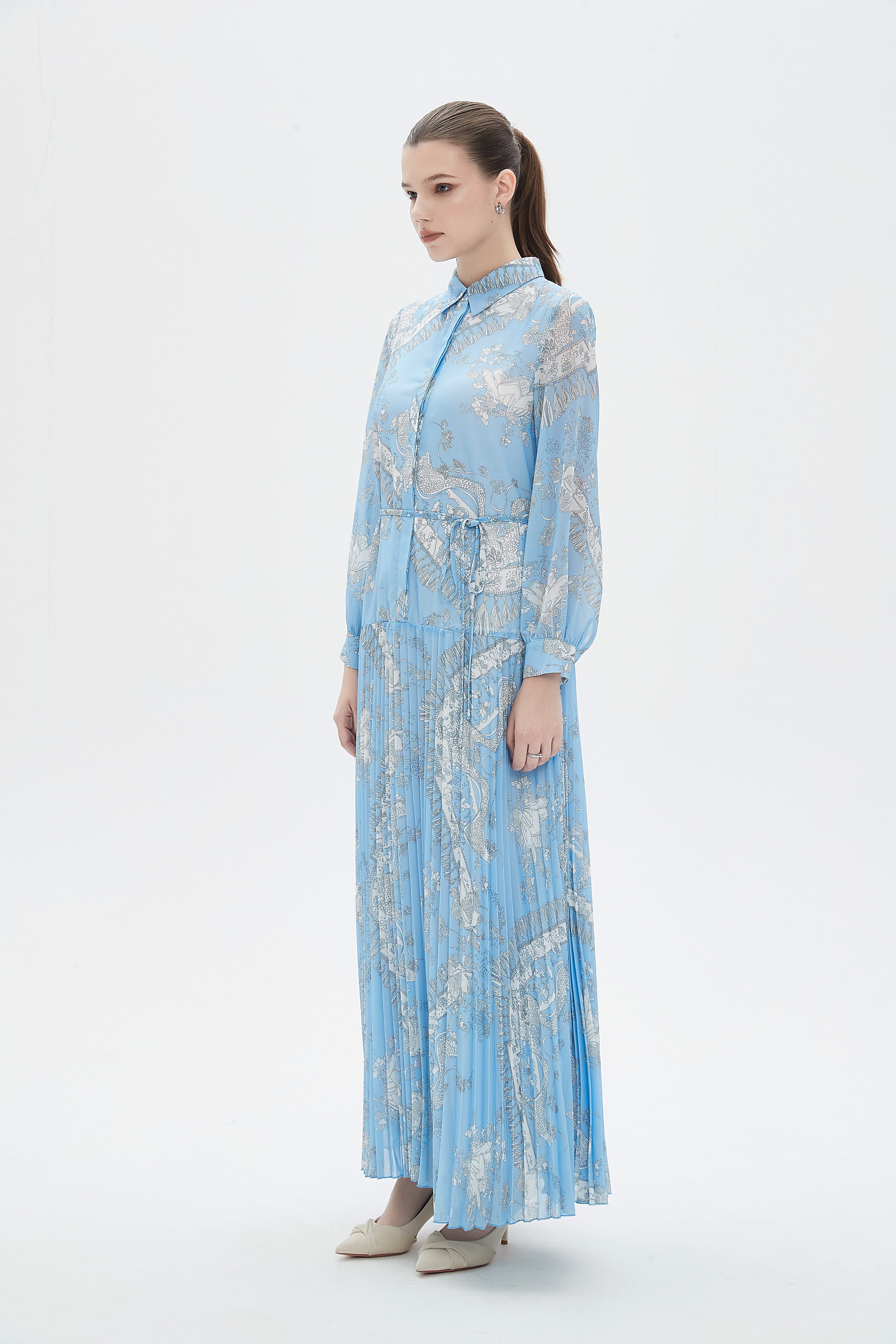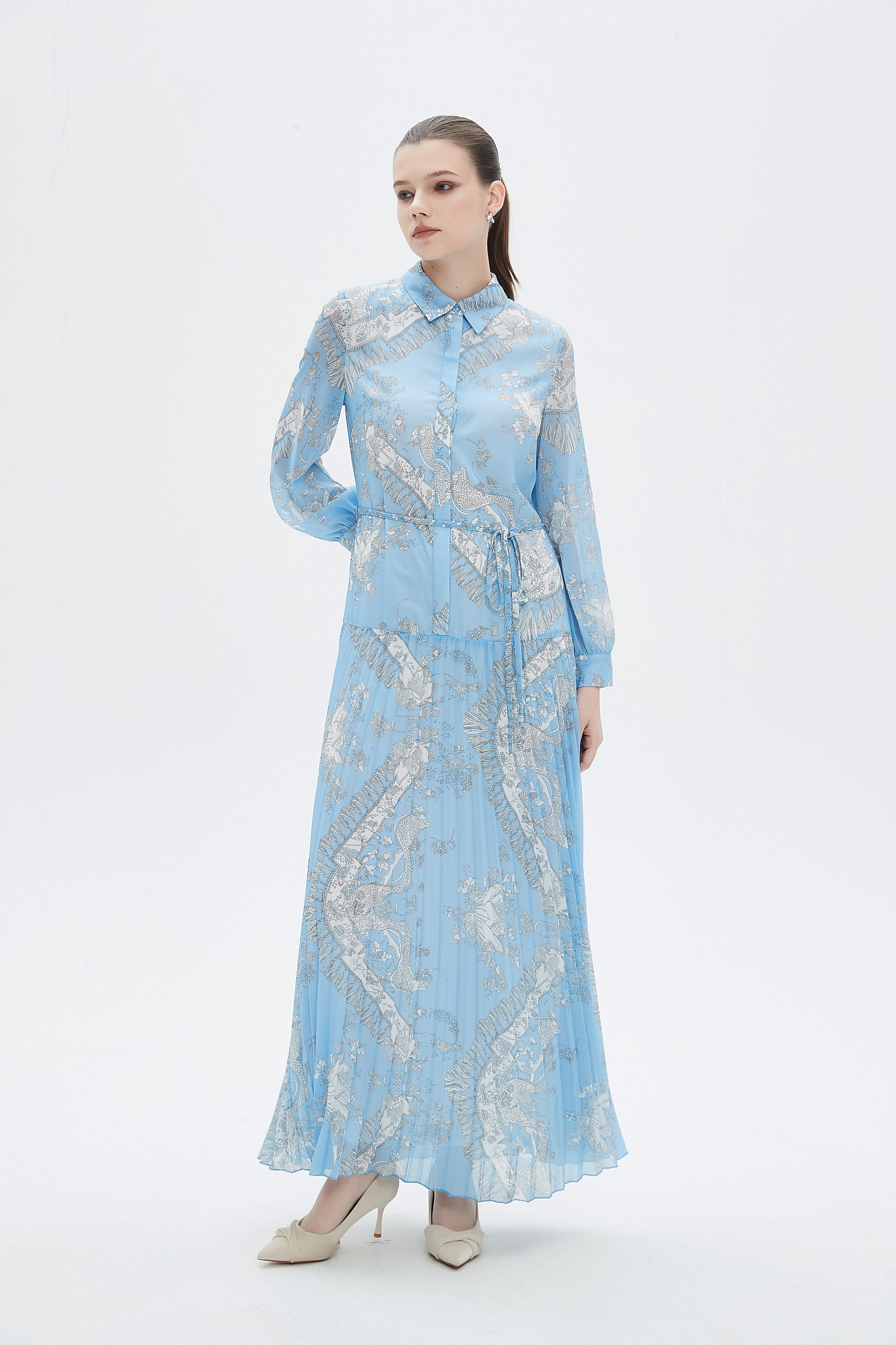 Make a refined statement in the Blue Patterned Maxi Belted Dress from Mica—an elegant, wardrobe-ready piece offered at Fashion SA. Crafted in 100% polyester with a subtle patterned print, this lightweight, thin maxi falls from a flattering A-line silhouette to create graceful movement and flattering drape. The shirt collar and button-front closure add tailored polish while the belted waist defines curves for a regular fit that flatters most body shapes. Long sleeves and unlined construction keep the look breathable across seasons; the wrinkle-resistant polyester ensures low-maintenance wear. Pocketless design preserves a clean column-line, perfect for evening events, weddings or elevated daytime affairs. Dress it up with heels and a clutch or style casually with ankle boots and a tailored coat — shop now at Fashion SA and elevate your event rotation.