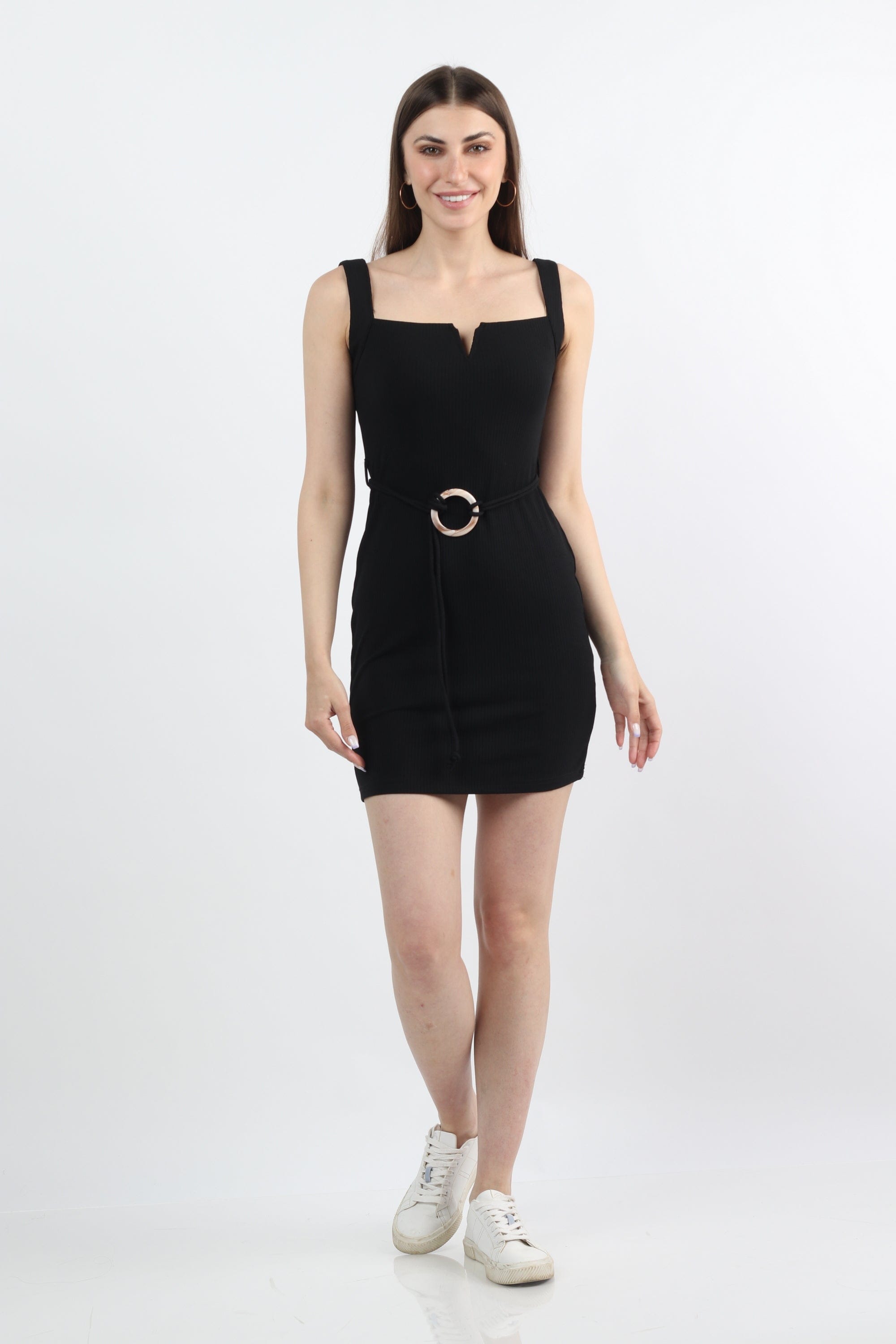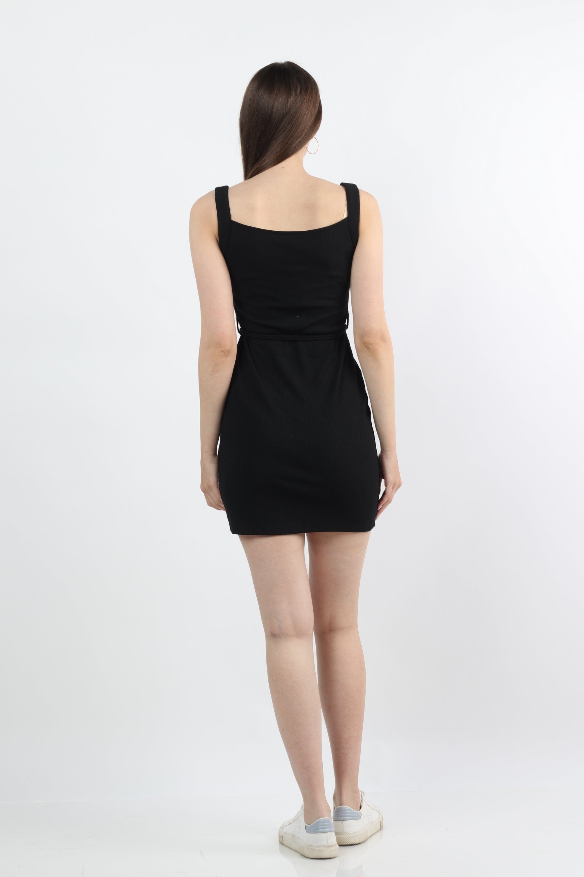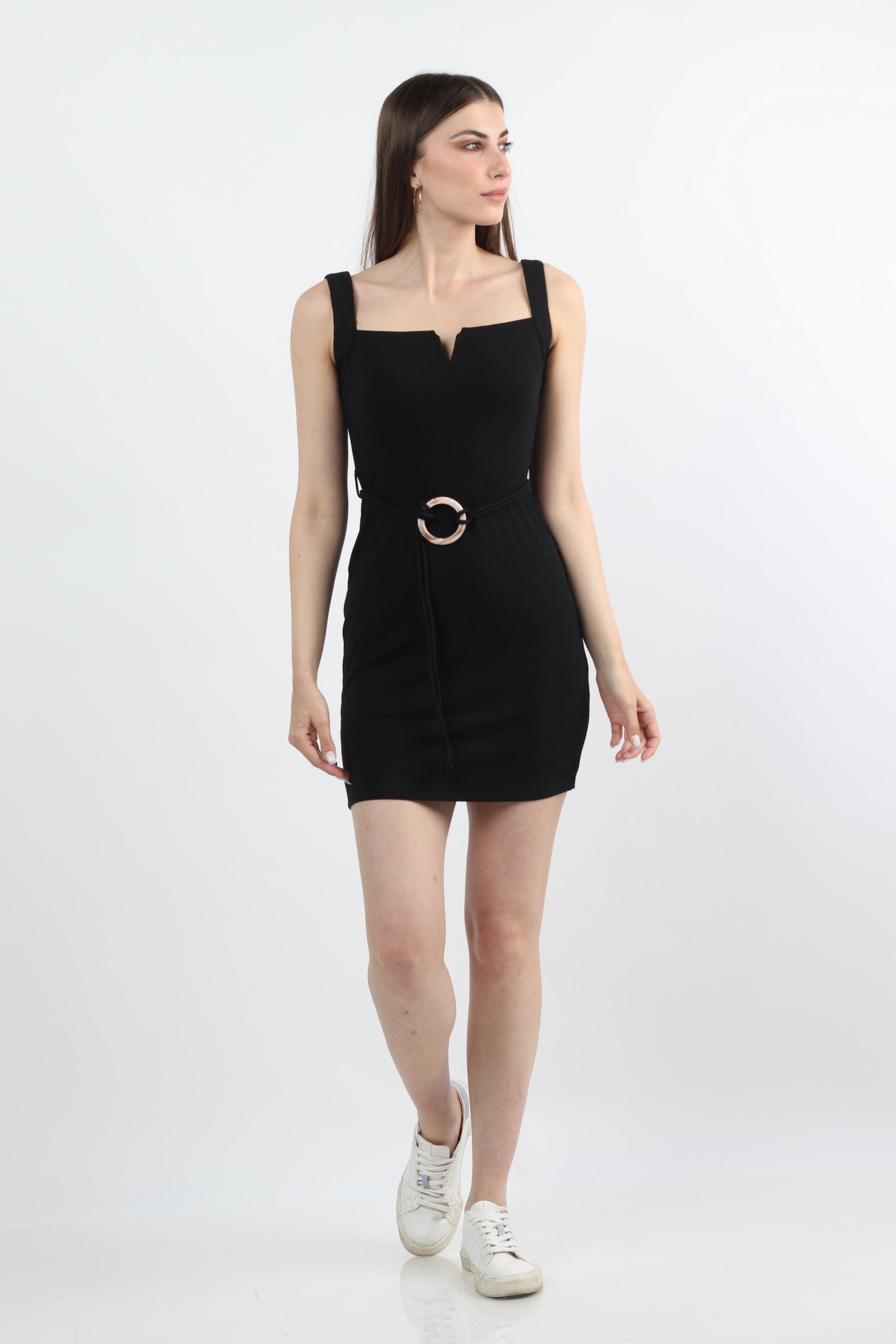 Turn heads in the sleek Black Plain Mini Belted Dress — a modern bodycon essential that celebrates your silhouette with effortless polish. Crafted from a stretch polyester blend for a smooth, wrinkle‑resistant finish, this slim-fit mini features thick straps and a square collar that frame the shoulders while the belted waist sculpts and defines. The plain black, unlined design keeps the look clean and breathable, while medium-weight fabric provides year‑round wearability. Pull-on construction (without closure) ensures an easy fit and the short length lends a playful, contemporary edge. Pocketless and unlined for a streamlined feel, this versatile piece moves from casual days to evening plans with simple swaps. Shop the Black Plain Mini Belted Dress at Fashion SA and make it your go-to for everyday confidence and style.