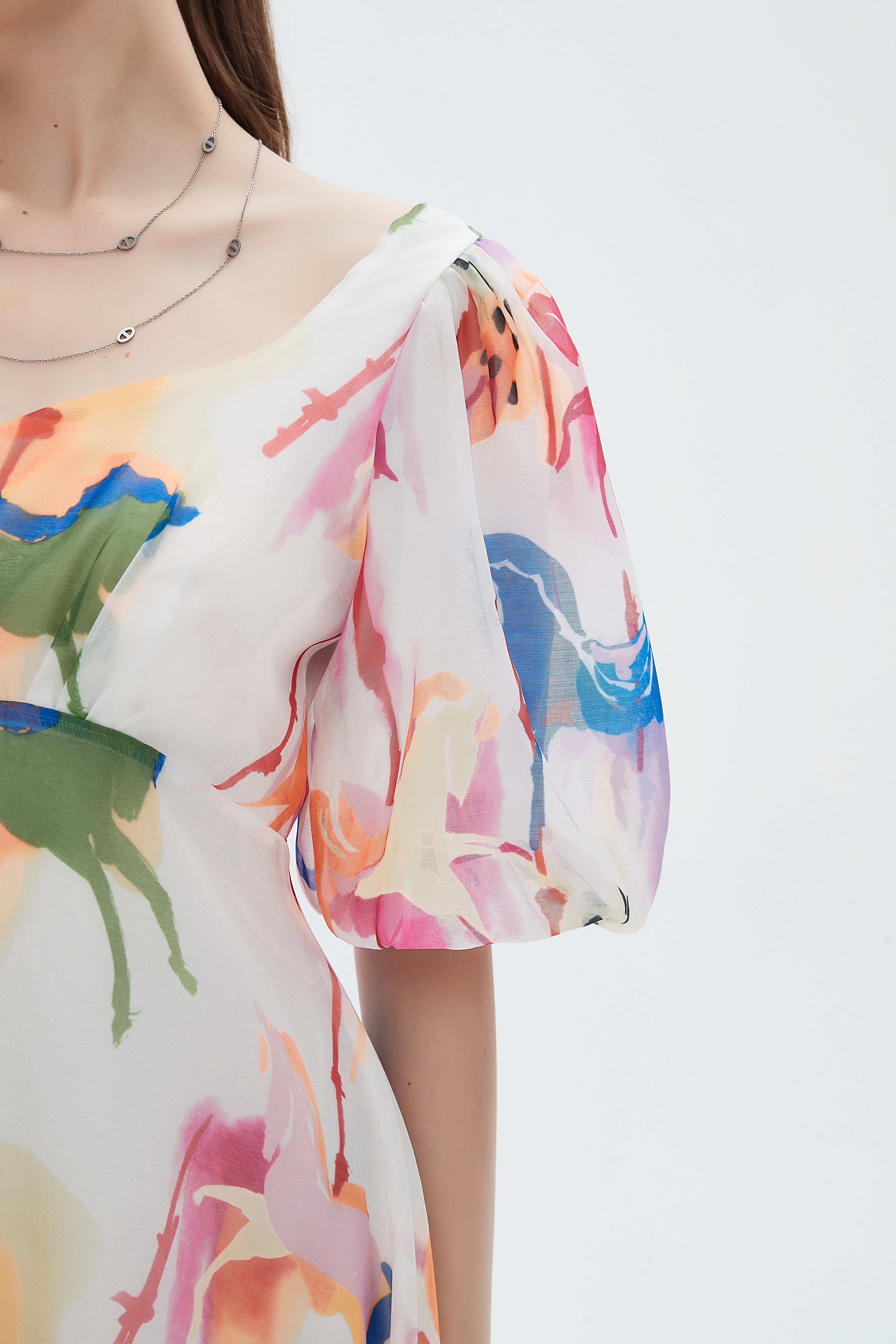 - Styling: Daytime: pair with white sneakers or flat sandals and a denim jacket; Evening: elevate with heeled sandals, a clutch and statement earrings to complement the puff sleeves