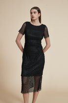 This Black Textured Midi Short-Sleeve Dress is a sleek wardrobe staple that marries minimalist elegance with everyday ease. The straight silhouette and midi length create a clean, column-like profile that flatters a regular fit while the medium-weight textured fabrication adds subtle dimension and structure without bulk. Short sleeves and a classic round neck offer versatile coverage for all-seasons wear, while the unlined, pocketless construction keeps the shape breezy and refined. Ideal for evening plans or daily office-to-weekend transitions, it layers effortlessly under blazers or over lightweight knits. Style it up with heels and statement jewelry for a night out or keep it casual with ankle boots and a denim jacket for daytime looks. Discover this modern essential from Fashion SA — shop the Black Textured Midi Short-Sleeve Dress now to elevate your rotation.