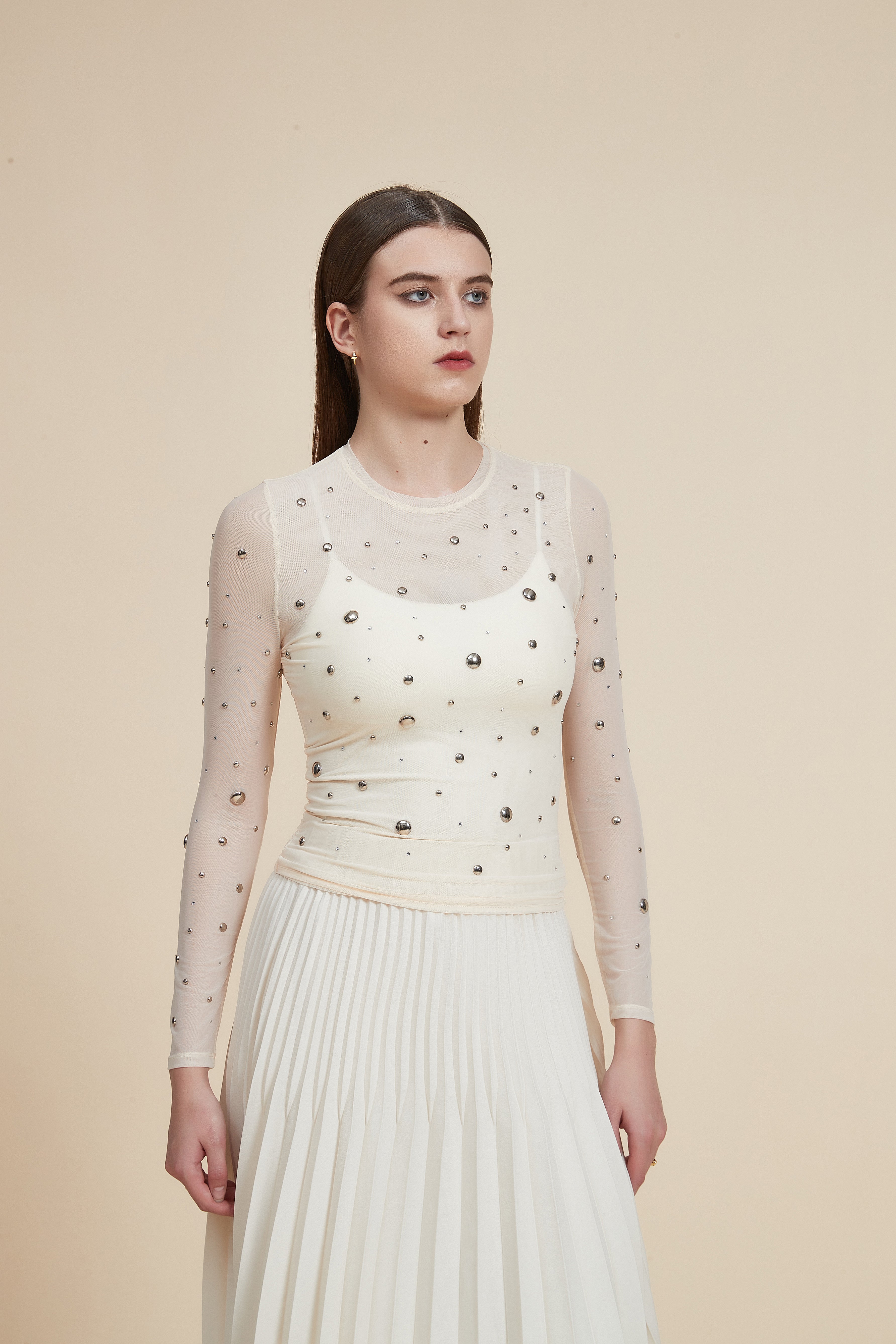 Enjoy elegance and beauty with this metallic-embroidered, long-sleeved, waist-length tulle blouse from Yola. This blouse features a unique and elegant design, with metallic embroidery adding a touch of luxury and distinction. The blouse complements various looks, whether formal or casual, making it an ideal choice for all occasions. With its long sleeves, you will feel comfortable and elegant at every moment. Get this metallic-embroidered, long-sleeved, waist-length tulle blouse from Yola and make your look distinctive and eye-catching! Order now and enjoy the best fashion! Product number: iy395s251jh
