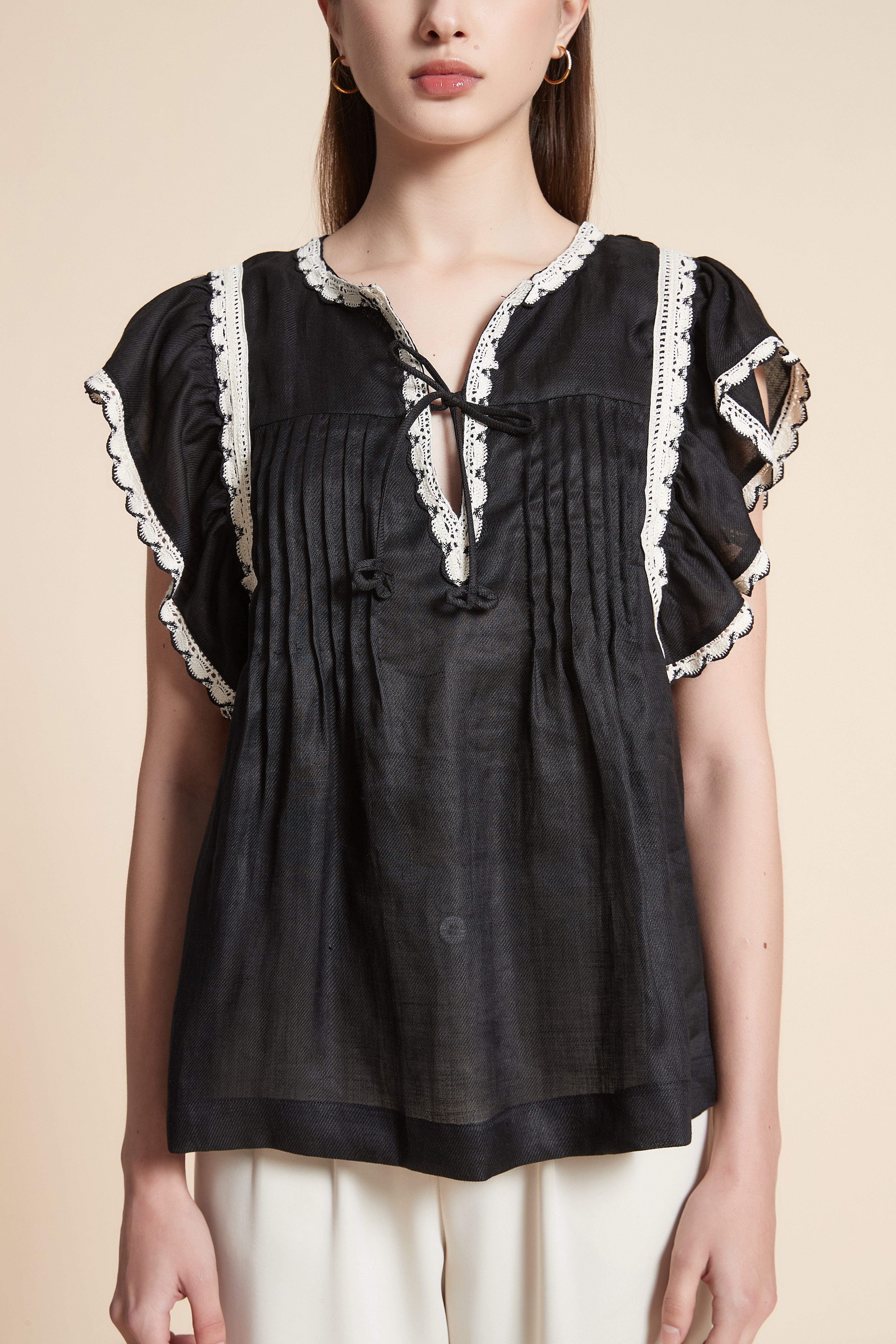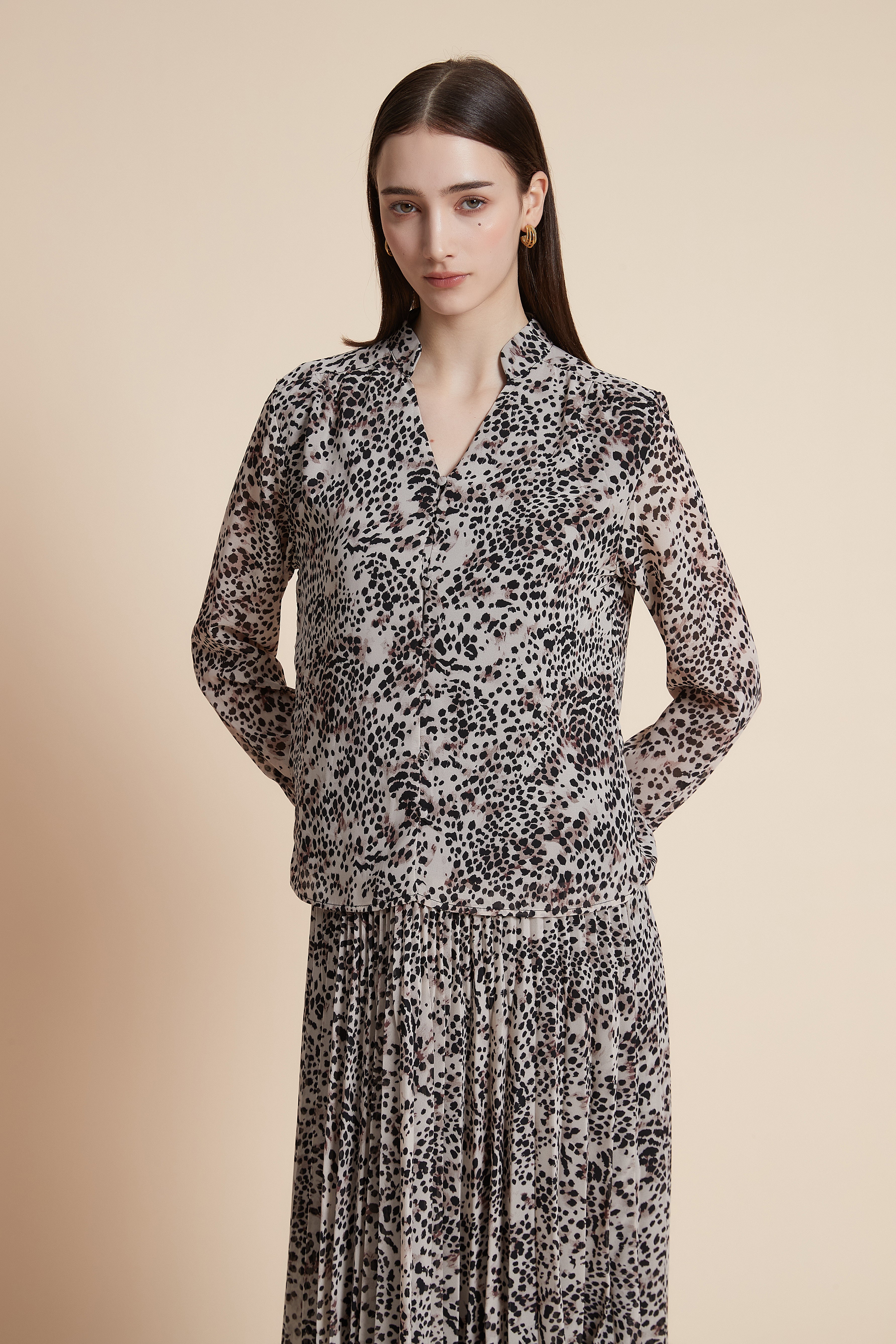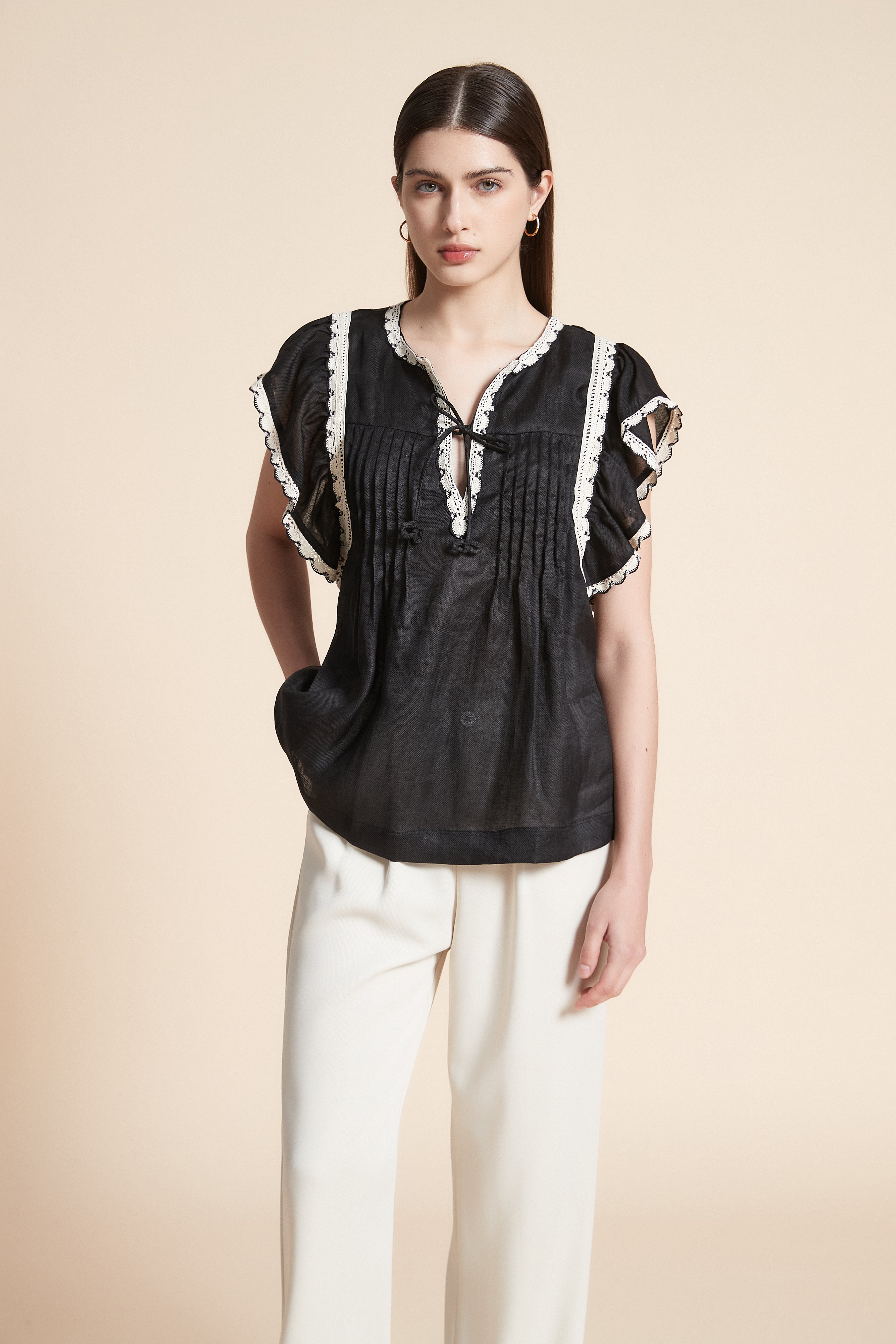 Long-Sleeve Tie-Neck Top