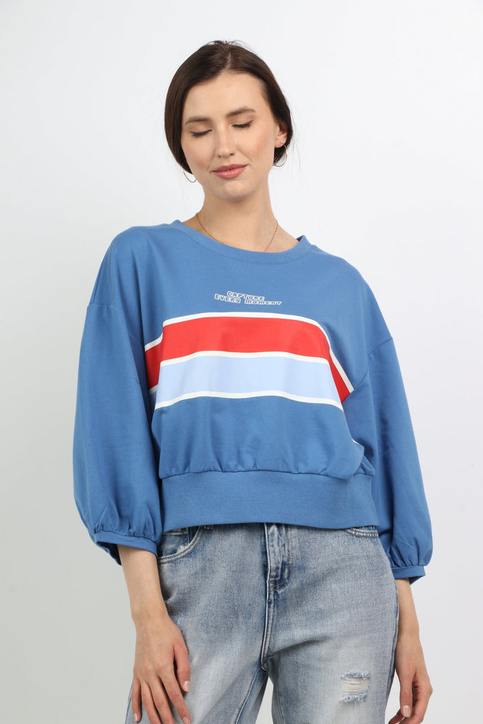 Striped Long Sleeve Blouse with Front Buttons and Collar