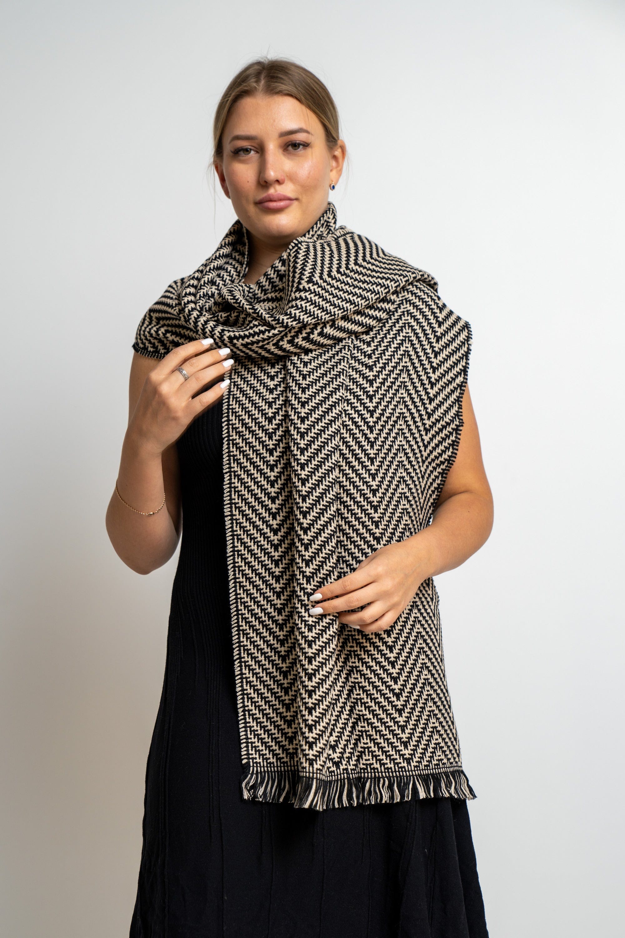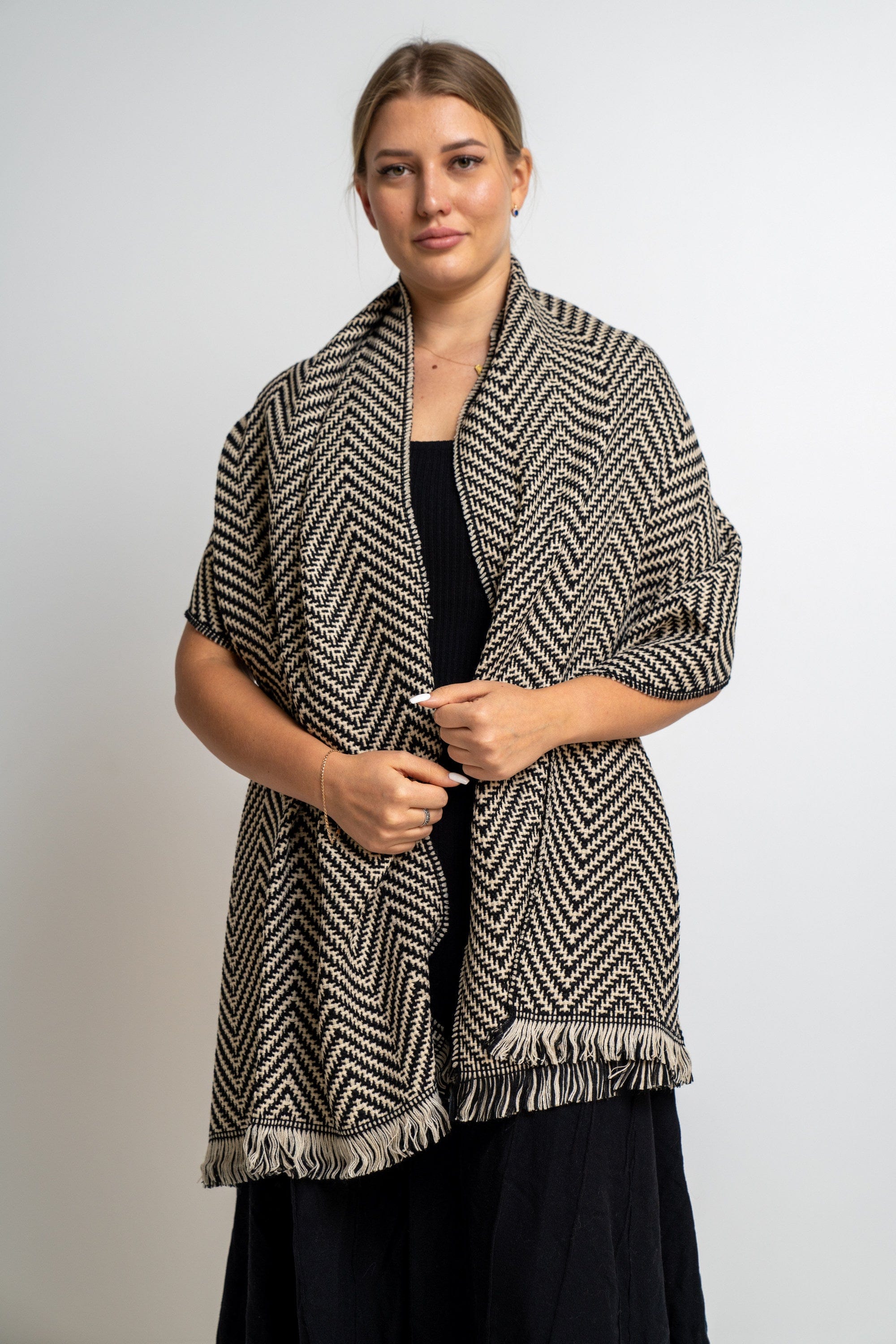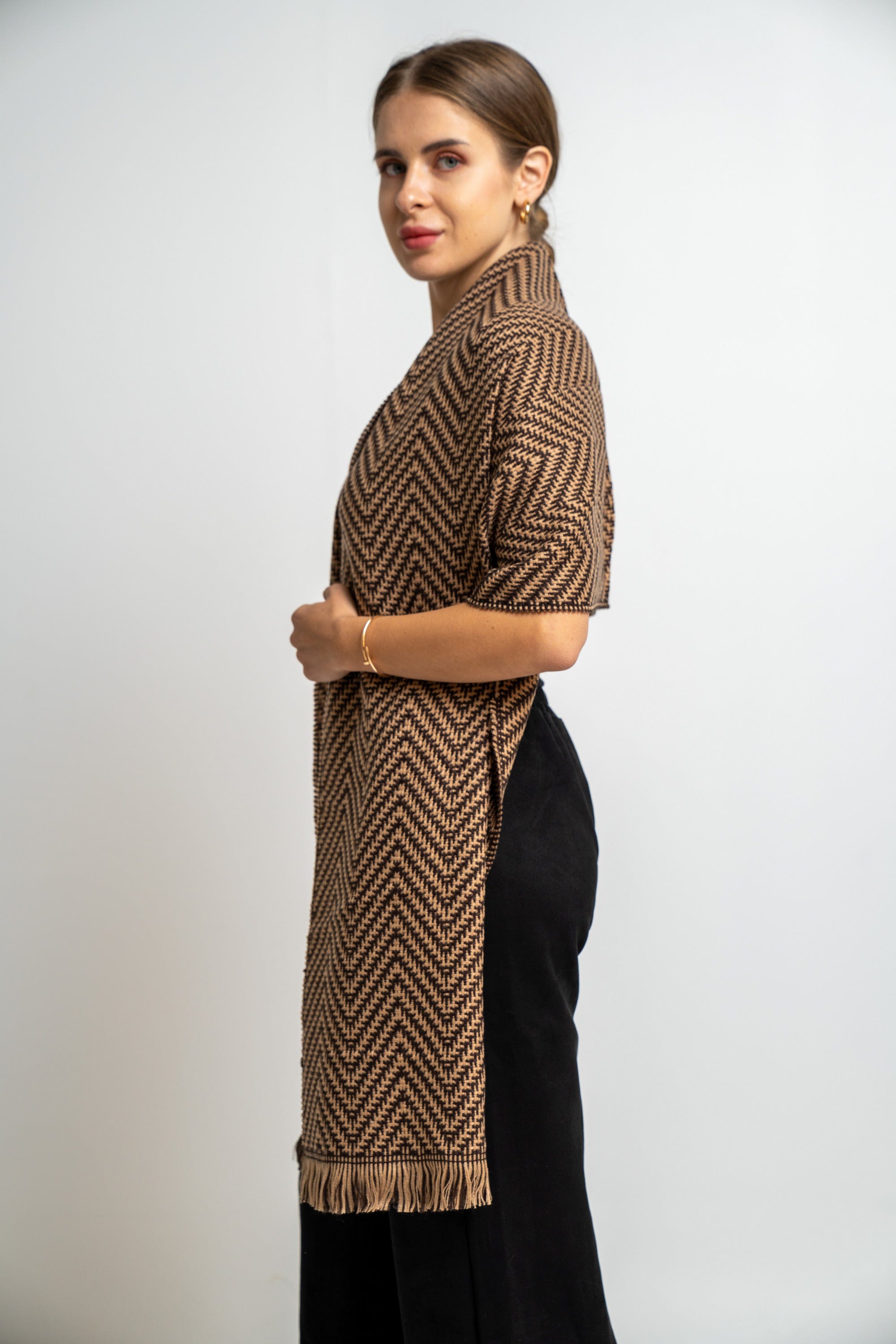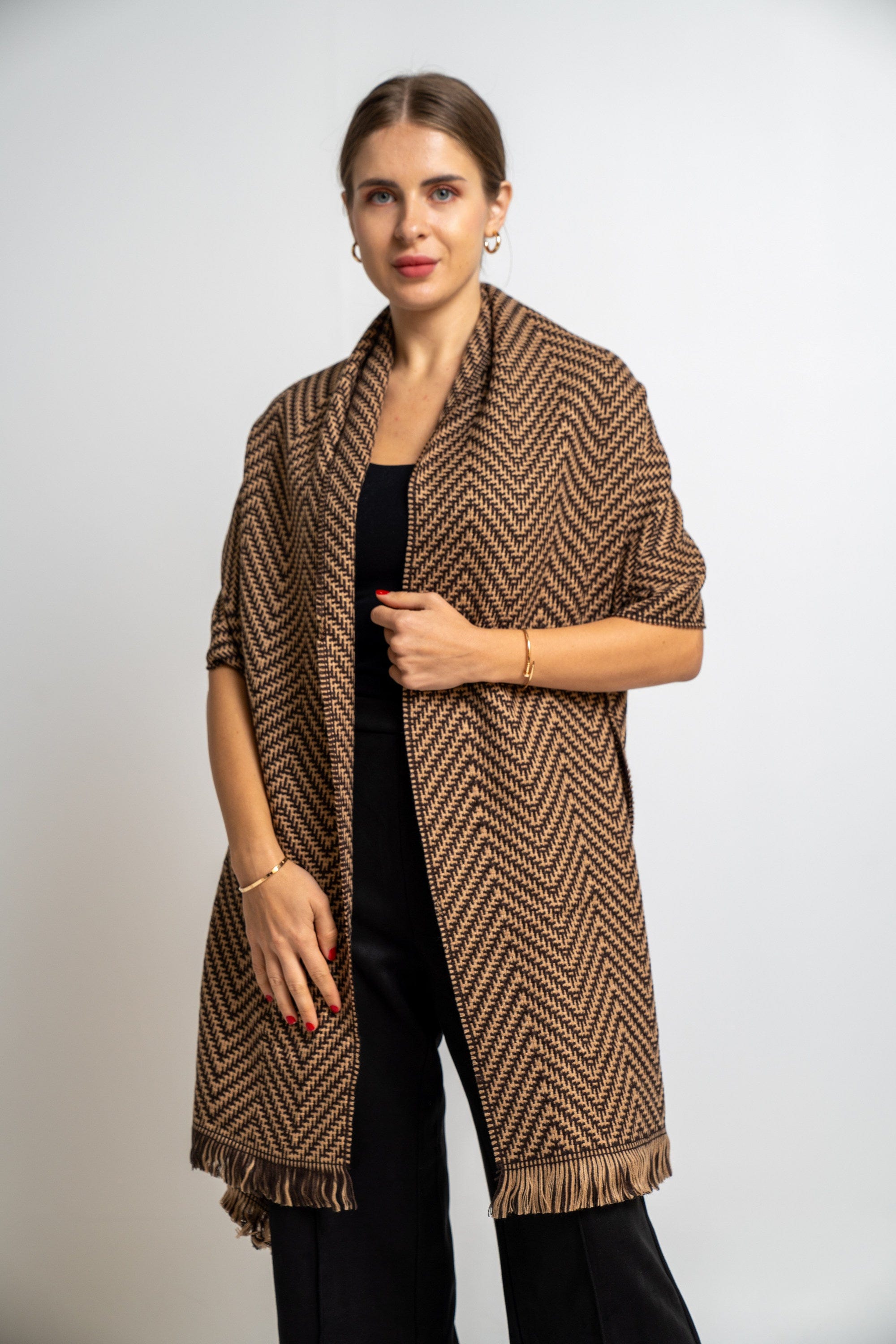 Enjoy the atmosphere of elegance and comfort with the Nakchi's women's knitting scarf, which combines wonderful overlapping colors. This scarf comes in a warm beige color and magic mocha, making it an ideal piece to give an aesthetic touch to any look. Its unique design allows you to coordinate it easily with different clothes, whether it is casual or formal, which makes it your ideal companion on every occasion. Make this scarf part of your closet today and spoil yourself with an unparalleled elegance. Do not miss the opportunity, and now ask the Saudi Fashion to sparkle with a distinctive look!
